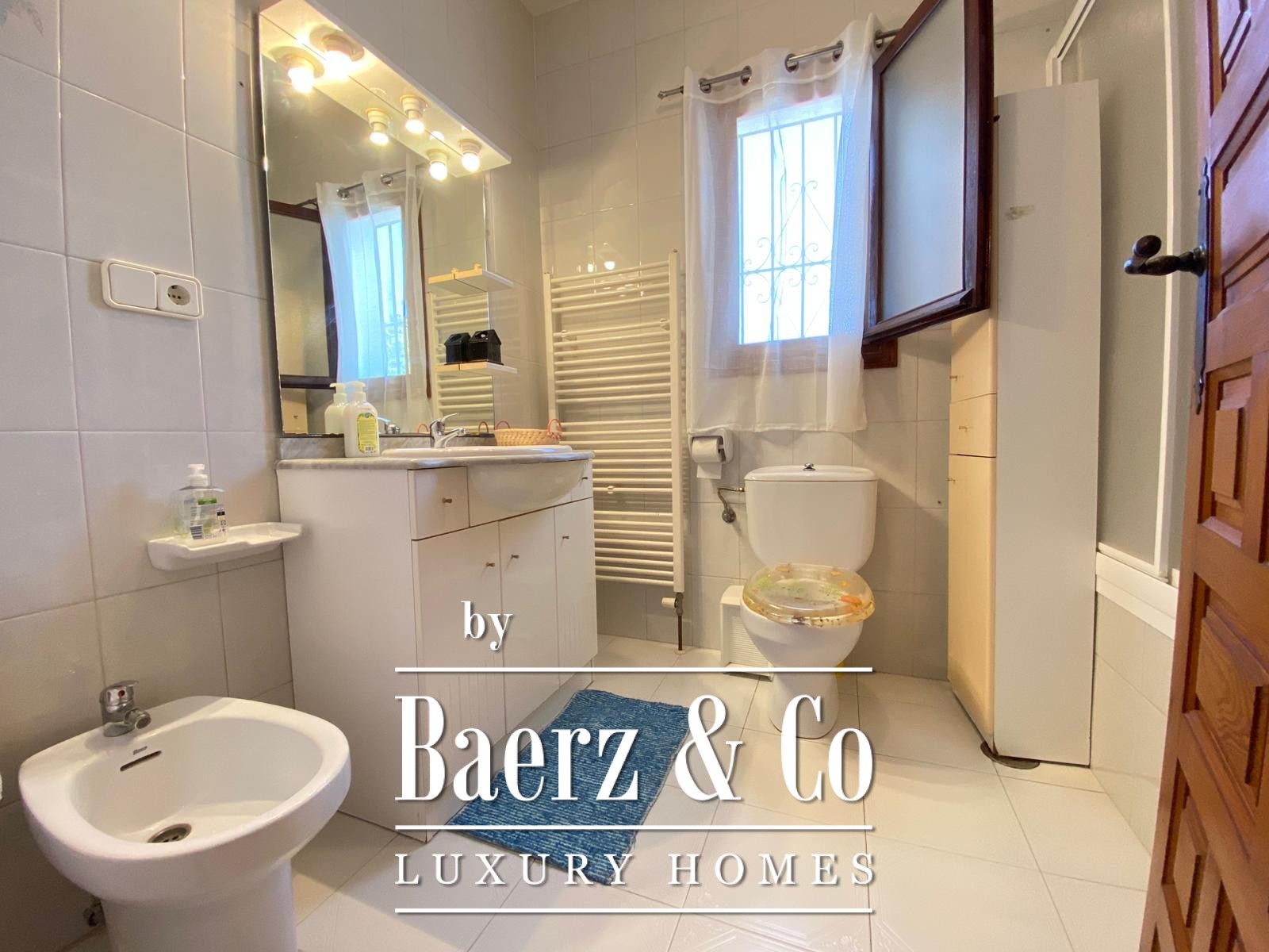 في الخارج، تدعو الشرفات إلى الاستمتاع بالصباحات المريحة ولحظات التجمعات في الهواء الطلق، بينما يضفي المسبح، ومنطقة الشواء، وأشجار الفاكهة الناضجة أجواء ملاذ متواضع. يحتوي نصف الطابق الأرضي، المغمور بالضوء الطبيعي، على مرآب مغلق، ومستودع، ومطبخ ثانٍ، وحمام إضافي، ومنطقة معيشة متعددة الاستخدامات مثالية للعائلة أو الضيوف.