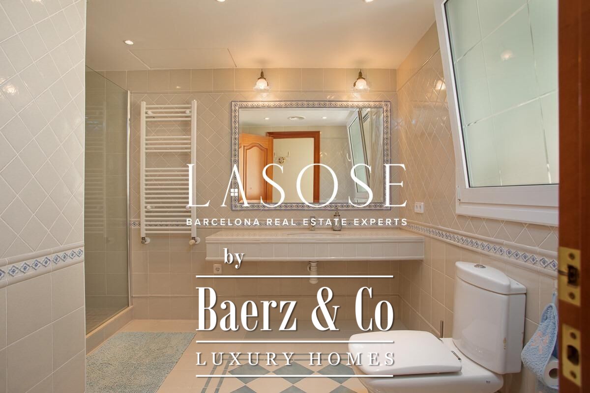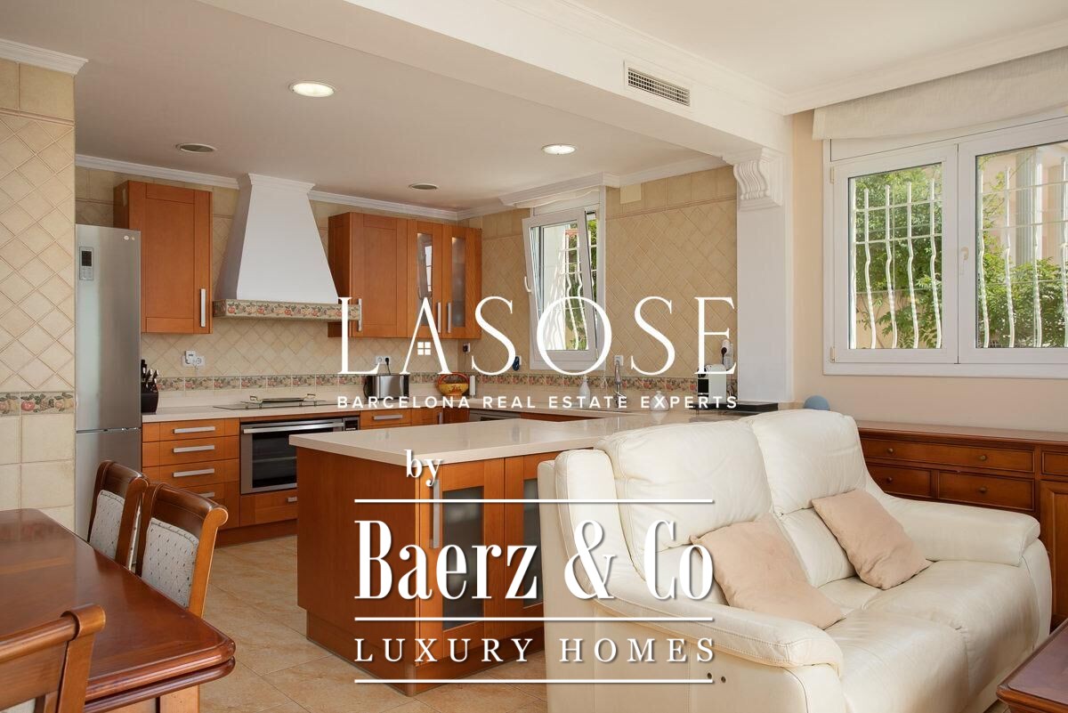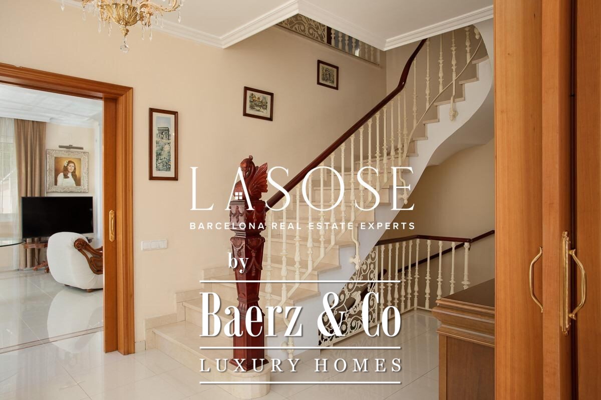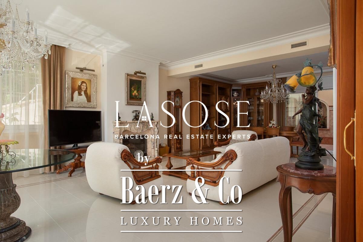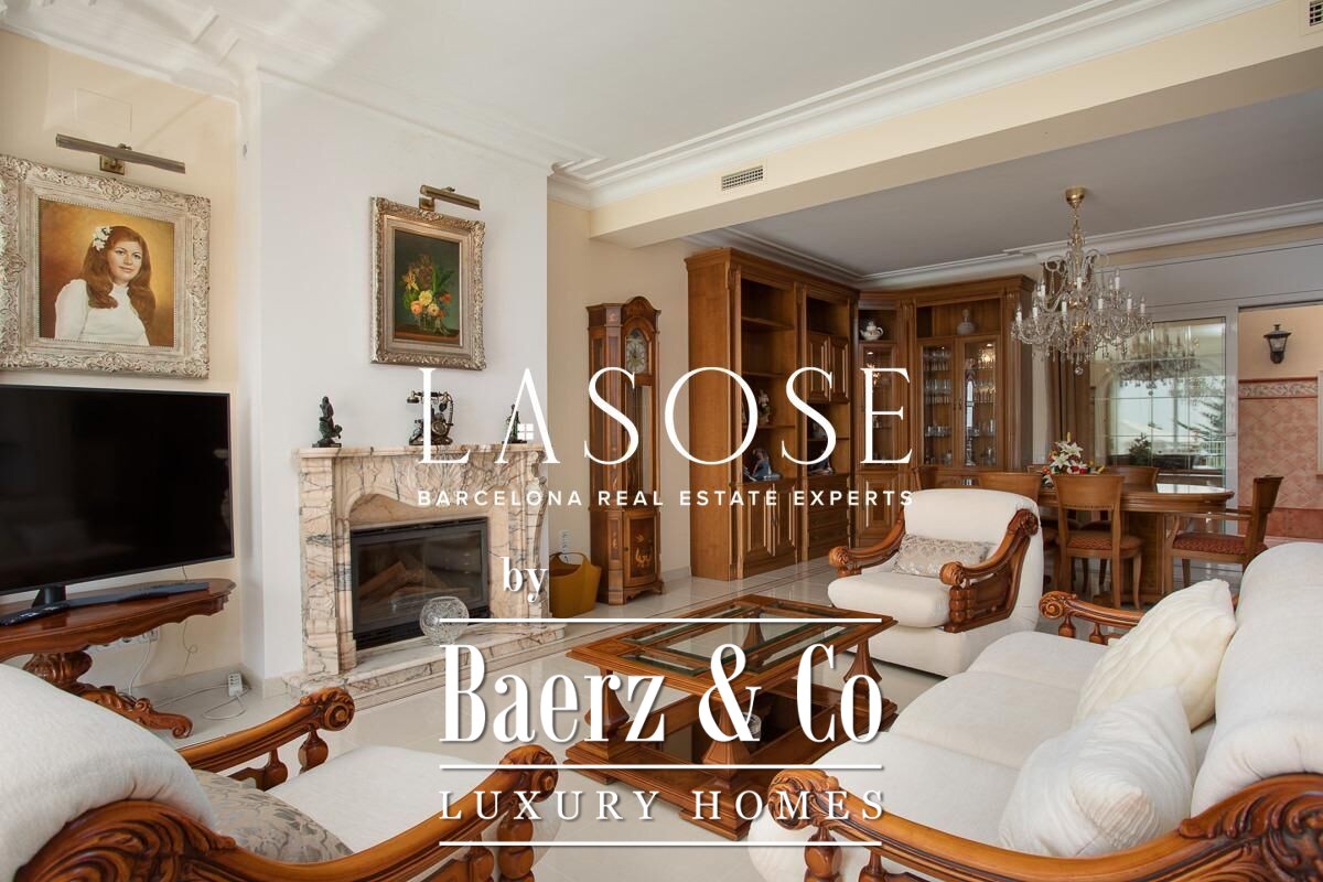 يمتد المنزل على أربعة طوابق متصلة بمصعد، وتتميز هندسته المعمارية بتوازنها وغمرها بالضوء وتصميمها المتكامل للانتقال السلس بين الداخل والخارج. ترتكز المساحات المعيشية على أرضيات من الرخام الأنيق ومدفأة، وتفتح على شرفات فسيحة وحديقة مستوية، حيث تؤطر هذه العناصر مشاهد رائعة تصل إلى أفق برشلونة في الأيام الصافية. تمنح خمس غرف نوم وخمس حمامات مساحات خاصة للراحة، مع مطبخين مجهزين بالكامل يوفران مرونة أكبر. كما تضيف المكتبة الخاصة، والمخزن الكبير، ومساحات التخزين المخصصة كل الخدمات اللازمة دون المساس بالرقي.