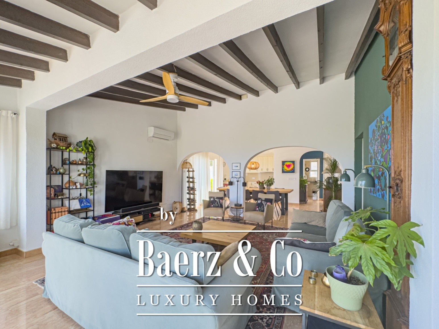 في الخارج، تخلق أشجار النخيل وأشجار الفاكهة أجواء من العزلة والهدوء. يكتمل الشعور بالخصوصية مع المسبح الخاص، وموقف السيارات المخصص، والمساحات الخارجية الأنيقة للحديقة. تضيف المطبخ الخارجي إلى الطابع المتوسطي، ما يجعل العيش في الهواء الطلق غاية في السهولة.