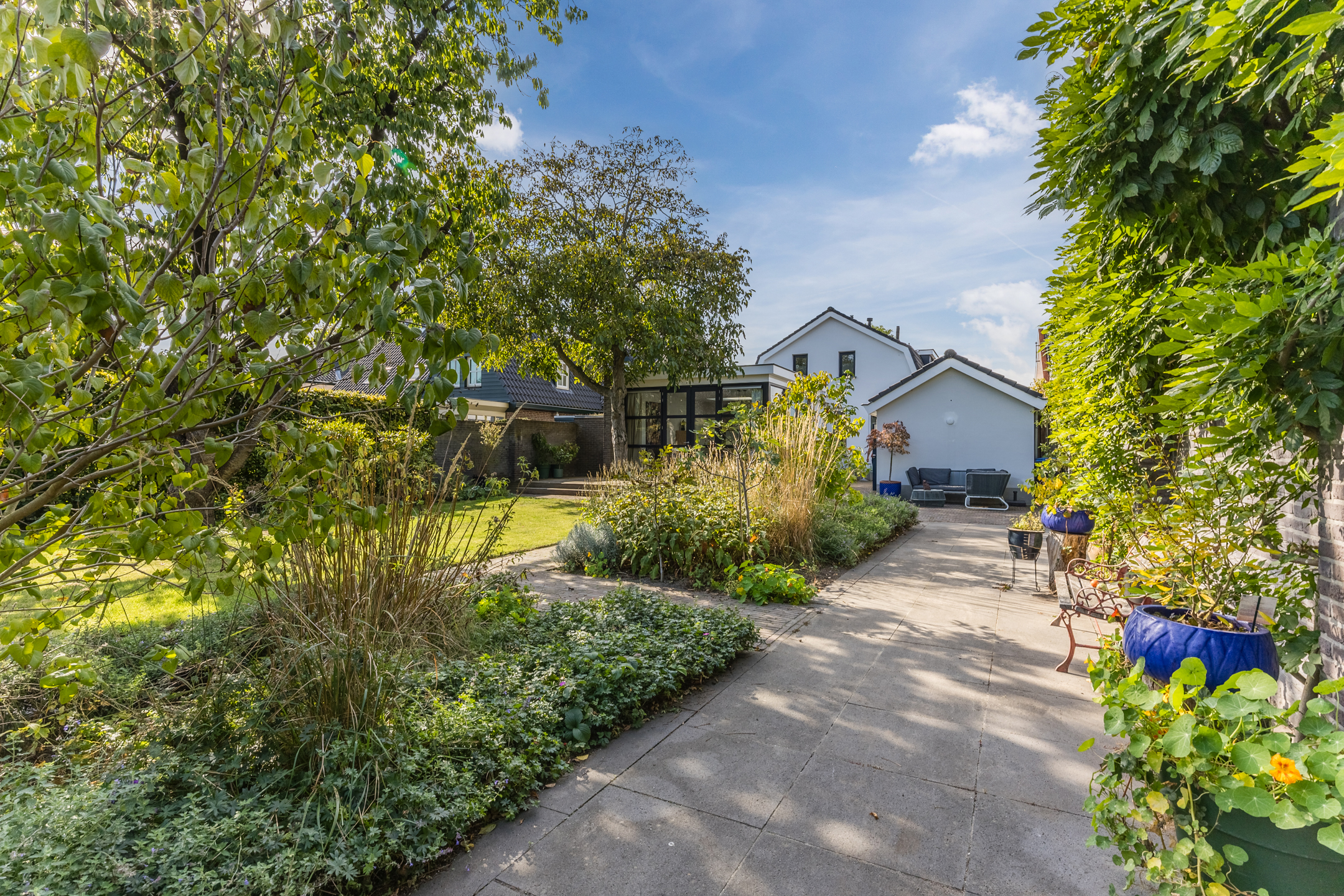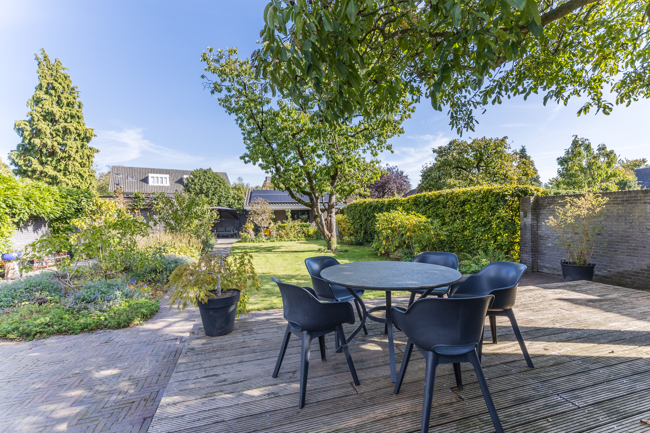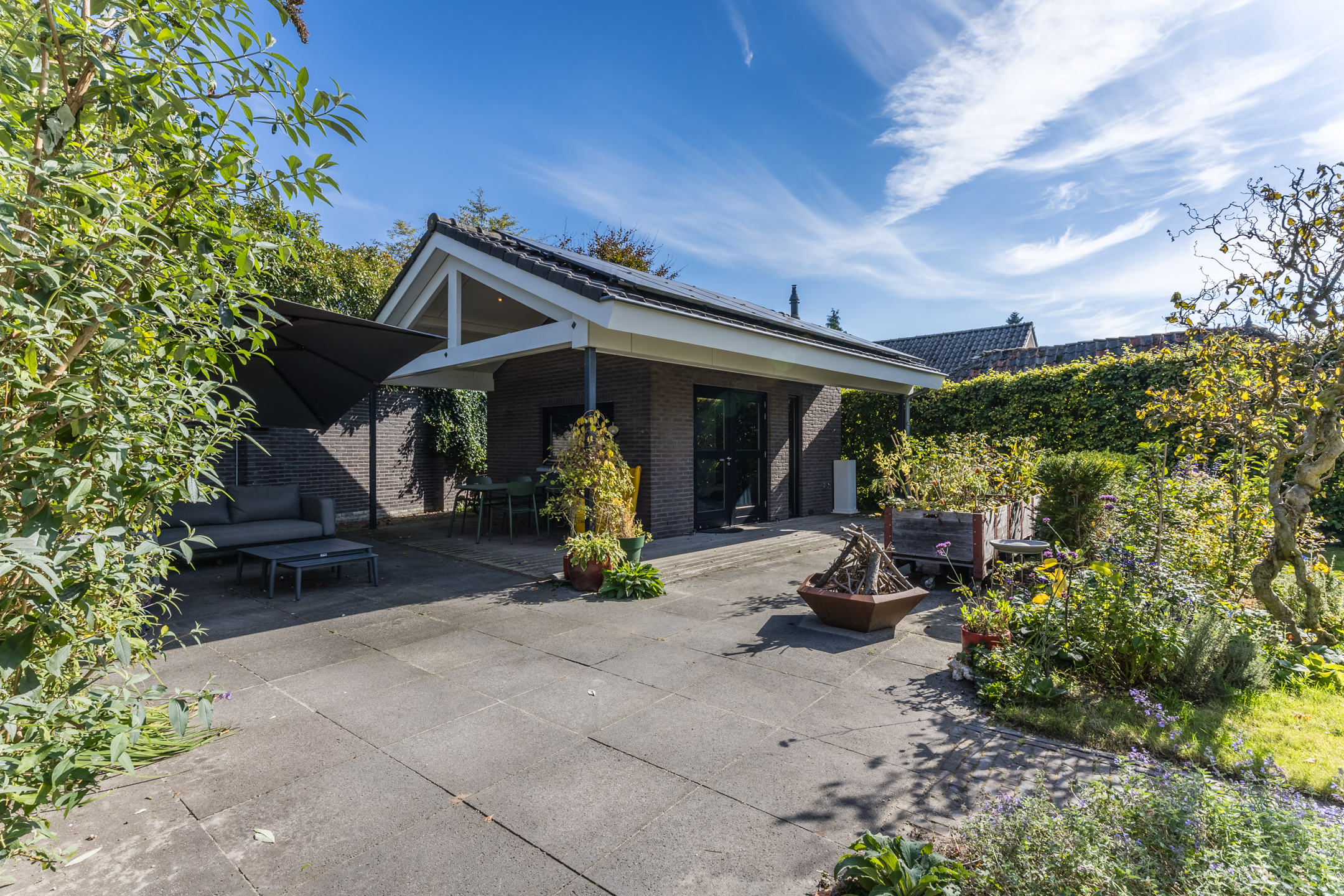خارج المنزل الرئيسي، تم تنسيق الحديقة الخاصة بعناية ويكملها مبنى خارجي معزول مزود بحمام خاص وتدفئة، مثالي كمكتب منزلي، أو جناح للضيوف، أو استوديو. يوفر المرآب ومساحة الوقوف الواسعة راحة عملية إضافية. يقع المنزل بهدوء في حي قديم من أودن، محاطًا بالأشجار ويمنح وصولاً مباشرًا لمرافق المركز. توفر القرب من طريق A50 السريع سهولة الاتصال بمدن أيندهوفن ودين بوش ونايميخن. كما تقع محميات ماسهورست وليفيرلينغسبوس الطبيعية على مقربة، دعوة لعشاق الطبيعة والأنشطة الخارجية.