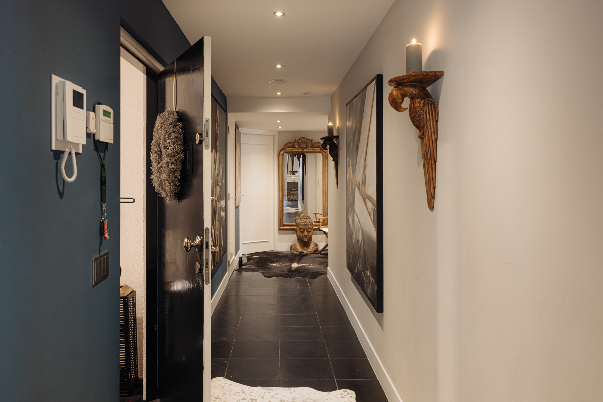Entree, ruime hal met luxe stenen vloer met vloerverwarming en gastentoilet.