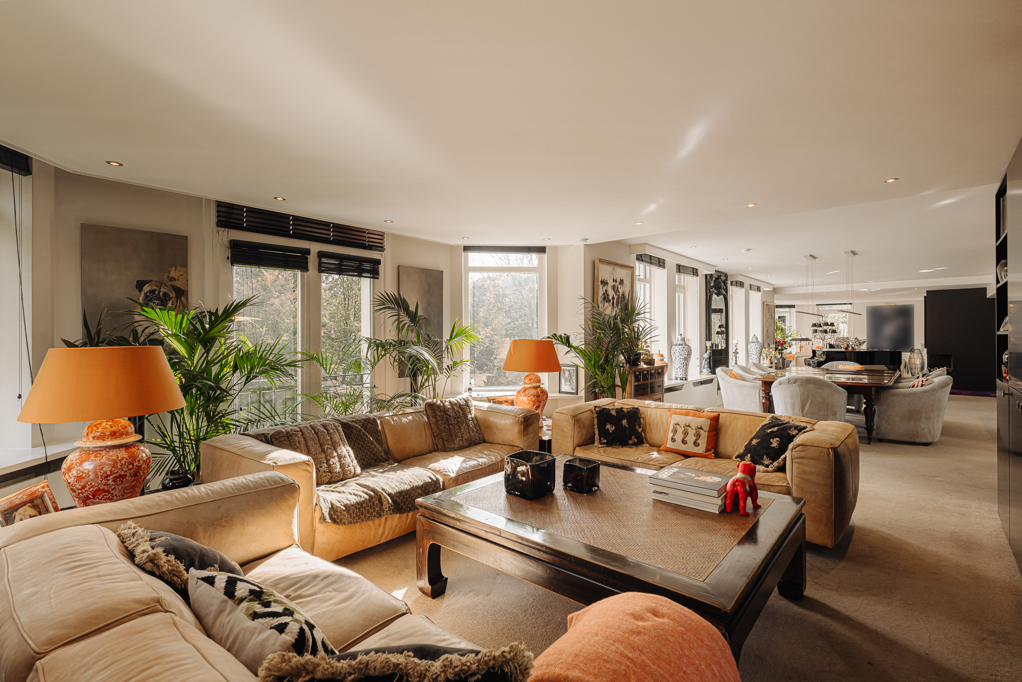 Prachtig gelegen 4-kamer penthouse (ca. 265 m2 woonoppervlak) met grote balkons op de derde verdieping van een kleinschalig appartementencomplex op het Landgoed Rust en Vreugd. Oorspronkelijk waren het twee appartementen, maar in 2009 is het geheel verbouwd en met zorg opnieuw ingedeeld. Hier treft u hoogwaardige materialen en luxe details aan, waaronder een op maat gemaakt interieur en airconditioning. Tevens twee parkeerplaatsen en een berging in de onderbouw.