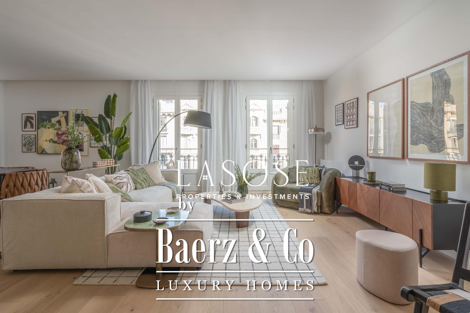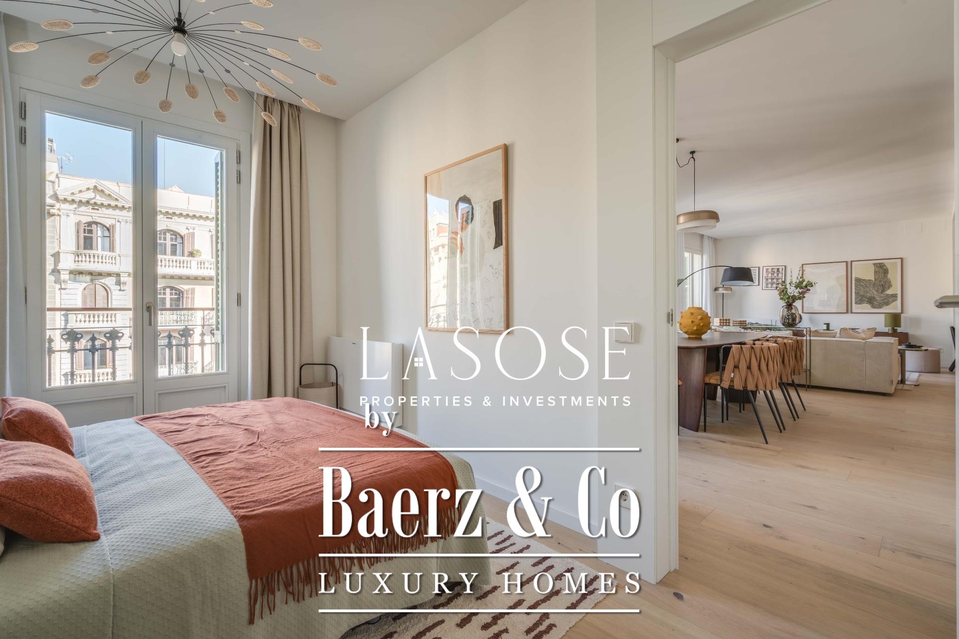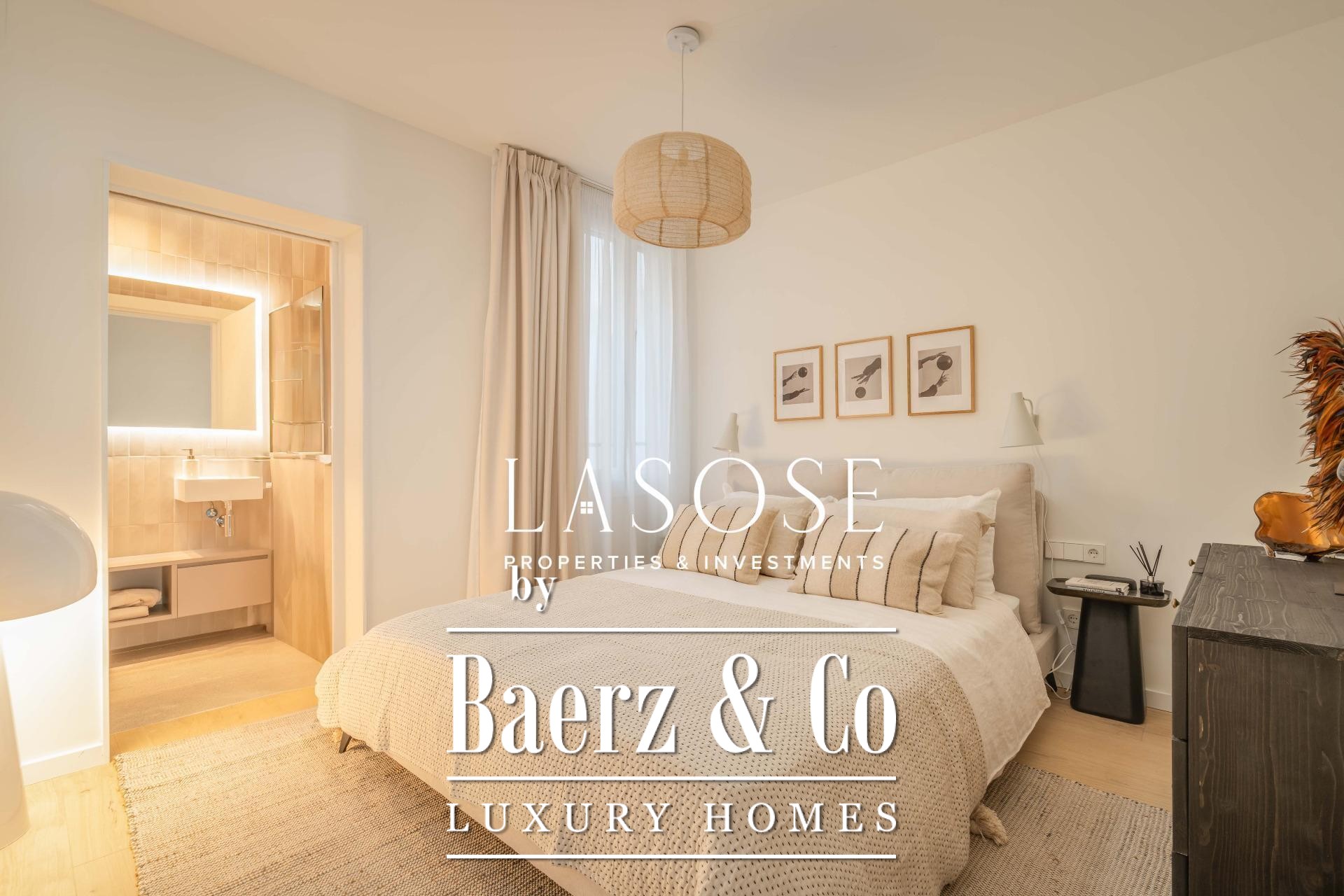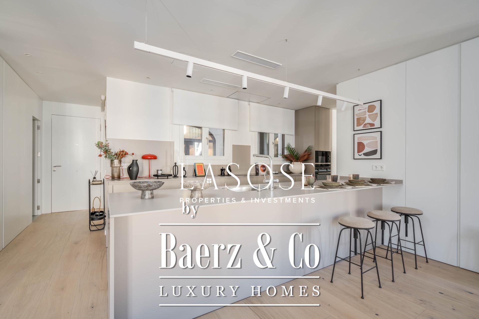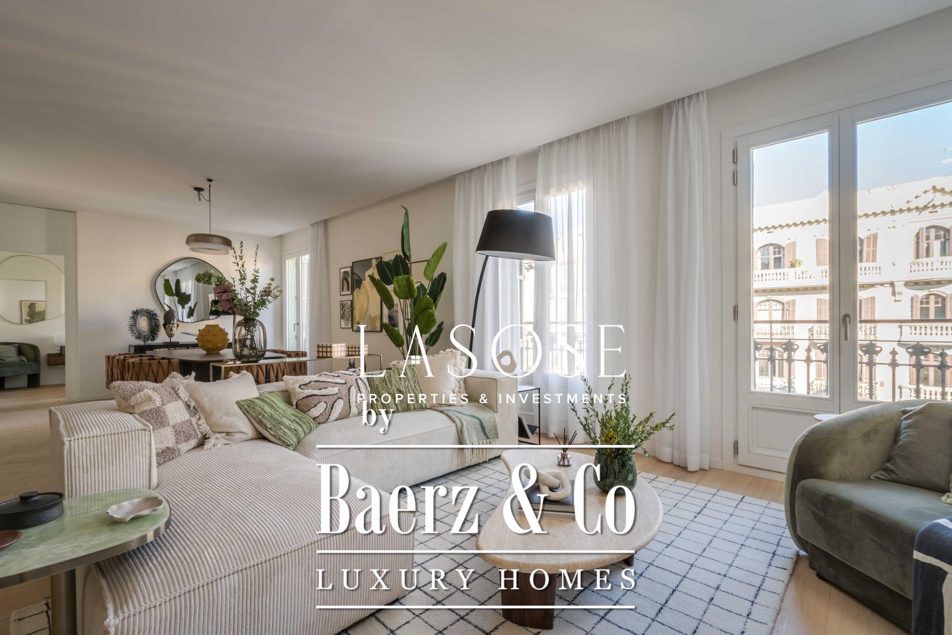 Das Apartment Barcelona Eixample präsentiert eine einzigartige Wohnmöglichkeit im Herzen des renommierten Eixample-Viertels. Diese 96 m² große Wohnung mit zwei Schlafzimmern und einem Badezimmer gehört zu einer exklusiven Kollektion von 19 Residenzen, die raffiniertes Erbe mit zeitgemäßem Wohnen vereinen. Klassische Balkone und eine großzügige Penthouse-Terrasse schaffen ein harmonisches Zusammenspiel aus Licht, urbanem Rhythmus und Privatsphäre.