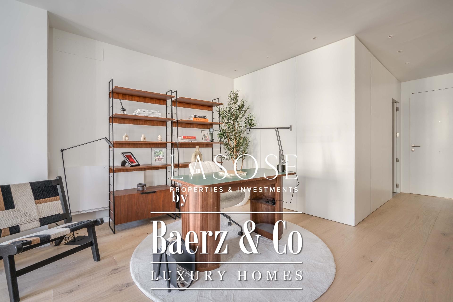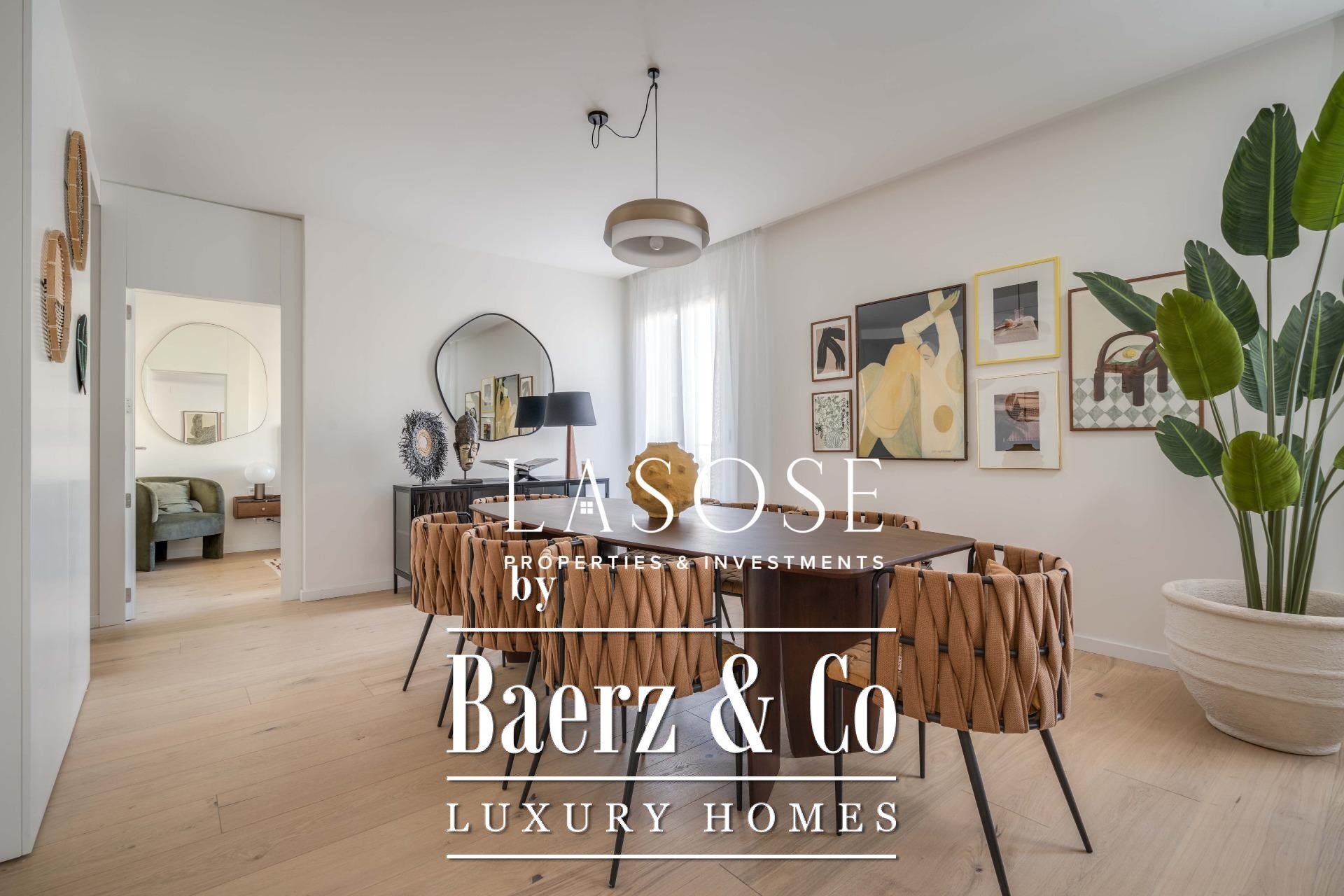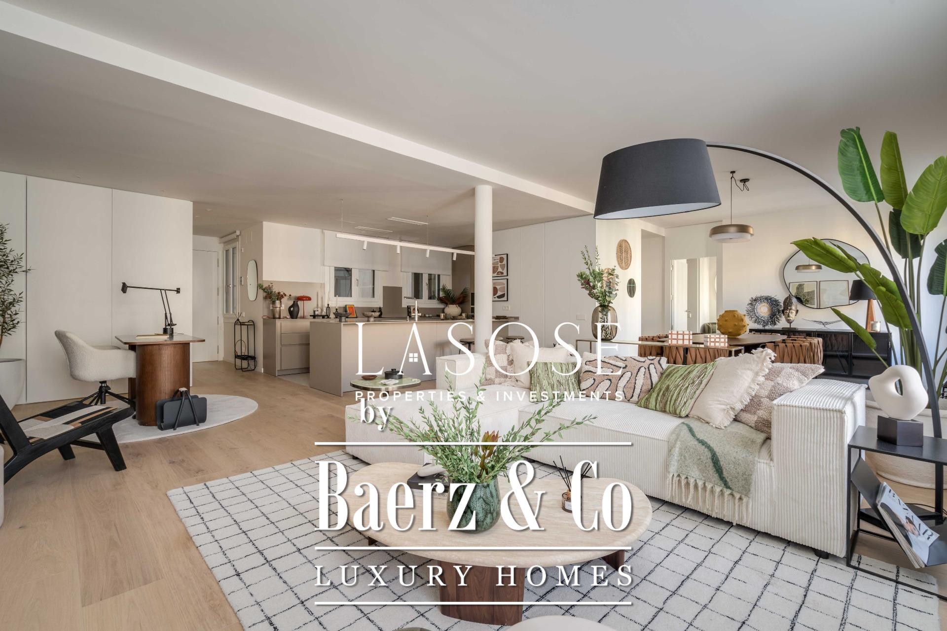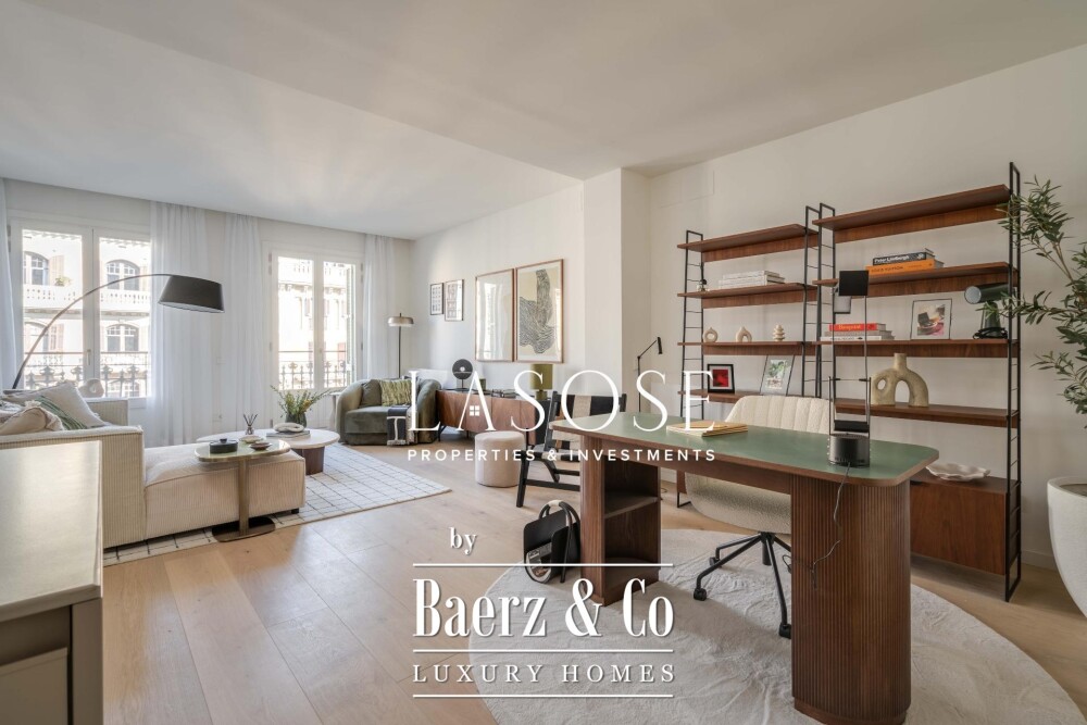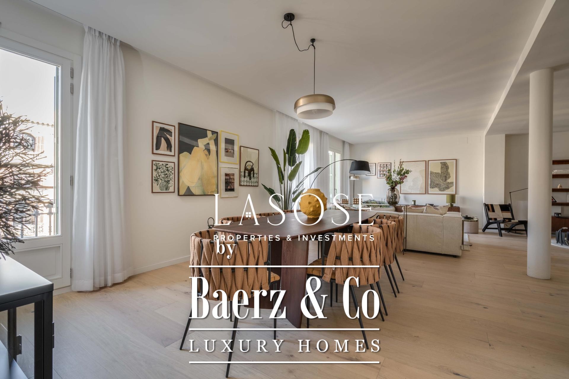 Das Apartment Barcelona Eixample präsentiert eine einzigartige Wohnmöglichkeit im Herzen des renommierten Eixample-Viertels. Diese 96 m² große Wohnung mit zwei Schlafzimmern und einem Badezimmer gehört zu einer exklusiven Kollektion von 19 Residenzen, die raffiniertes Erbe mit zeitgemäßem Wohnen vereinen. Klassische Balkone und eine großzügige Penthouse-Terrasse schaffen ein harmonisches Zusammenspiel aus Licht, urbanem Rhythmus und Privatsphäre.