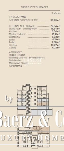 Die von Estudio Vilablanch ausgewählten Ausstattungen setzen einen zurückhaltend eleganten Akzent, indem moderne Geräte und Technologie mit einem markanten Design verschmelzen. Die Wohnräume überzeugen durch durchdachte Funktionalität, ausgestattet mit Einbauschränken, hochwertigen Elektrogeräten sowie einem separaten Waschraum. Ergänzt wird dies durch Annehmlichkeiten wie Heizung, Video-Gegensprechanlage und Aufzug.