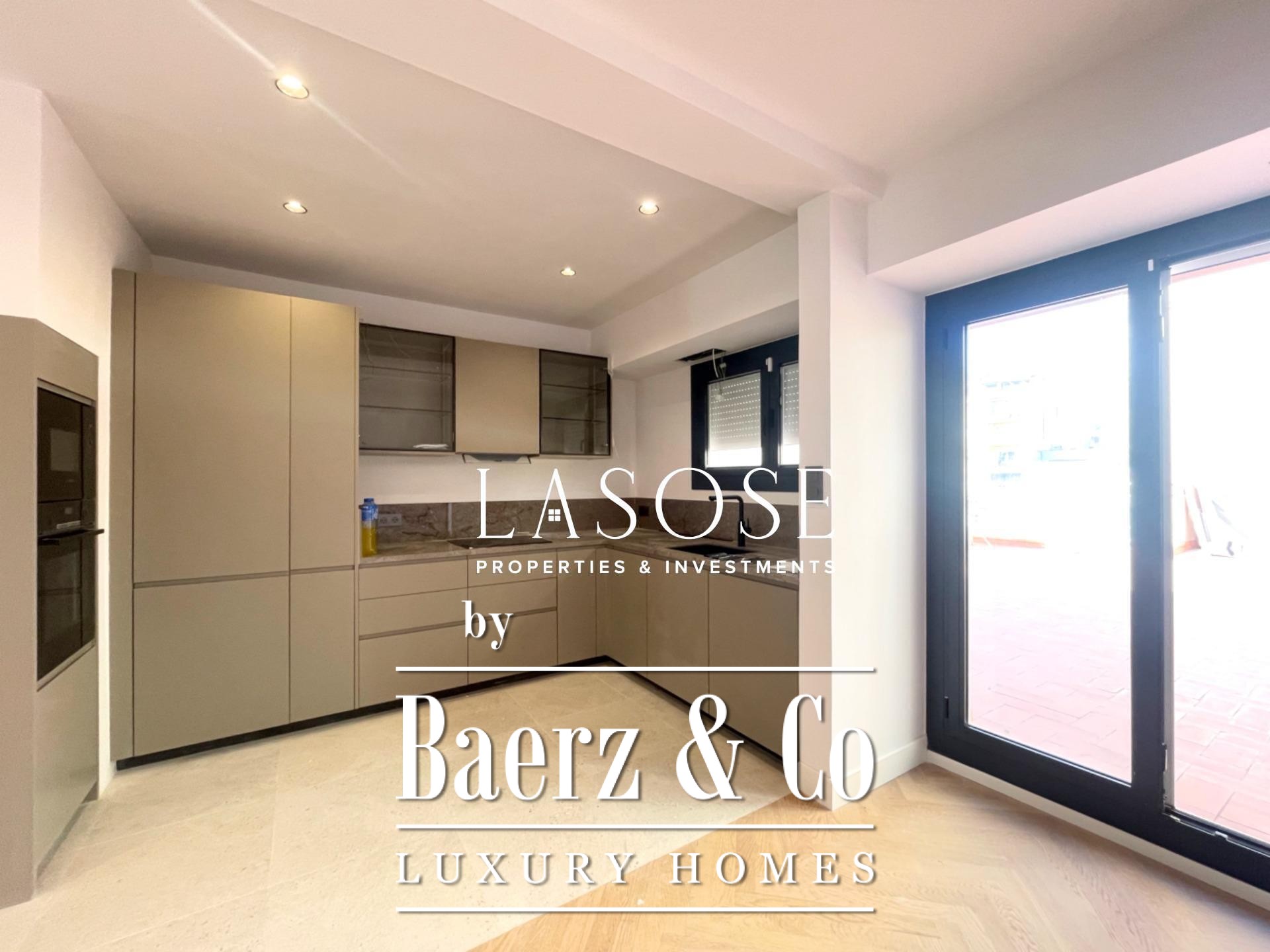 Ein Aufzug bedient das Gebäude. Ausstattungsmerkmale wie Klimaanlage, Video-Gegensprechanlage und eine beleuchtete Pergola unterstreichen den funktionalen Komfort. Die Bewohner genießen eine harmonische Balance aus urbaner Energie und ruhigem Rückzugsort, wobei jedes Detail sorgfältig ausgewählt wurde, um den Alltag an dieser besonderen Adresse zu bereichern.