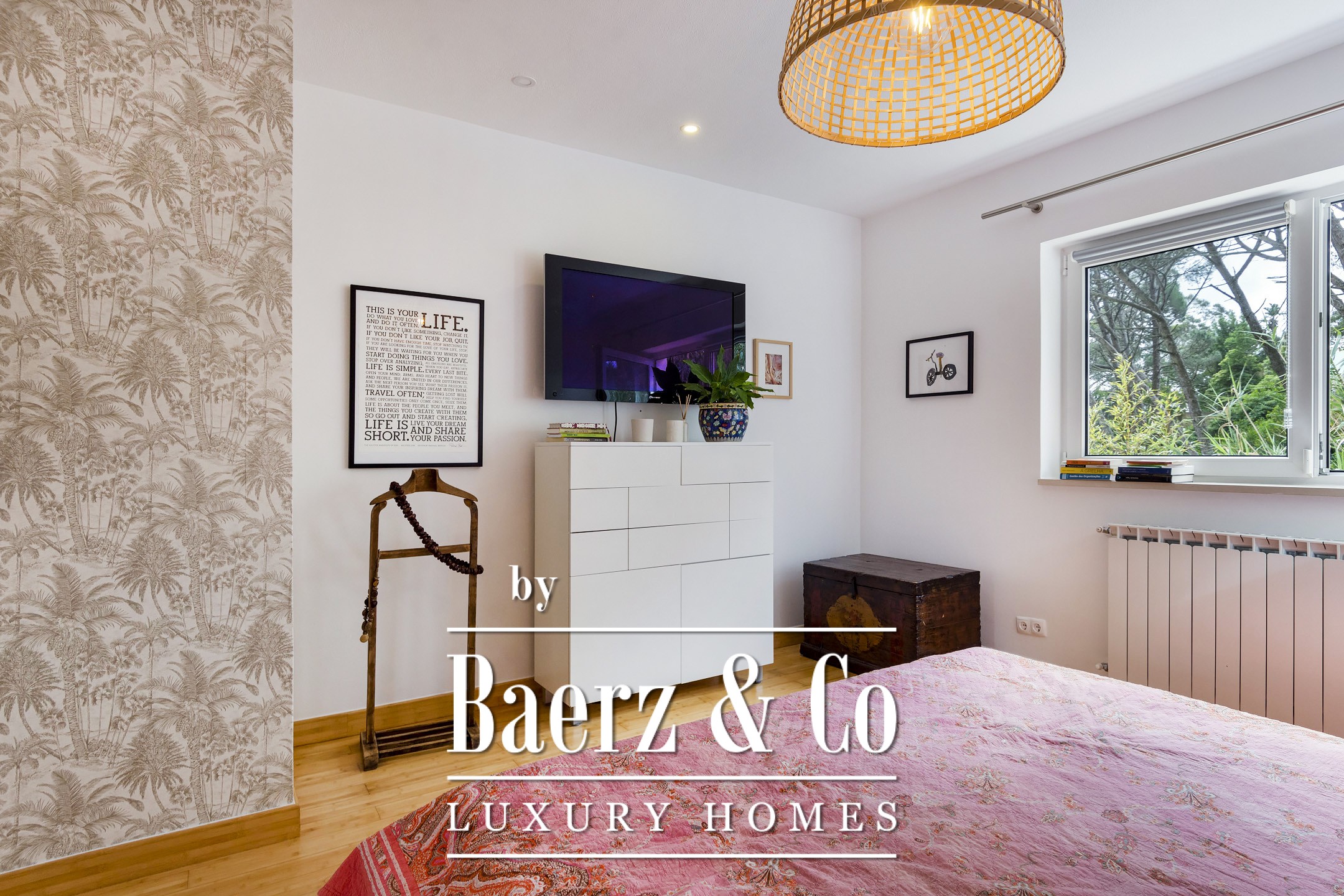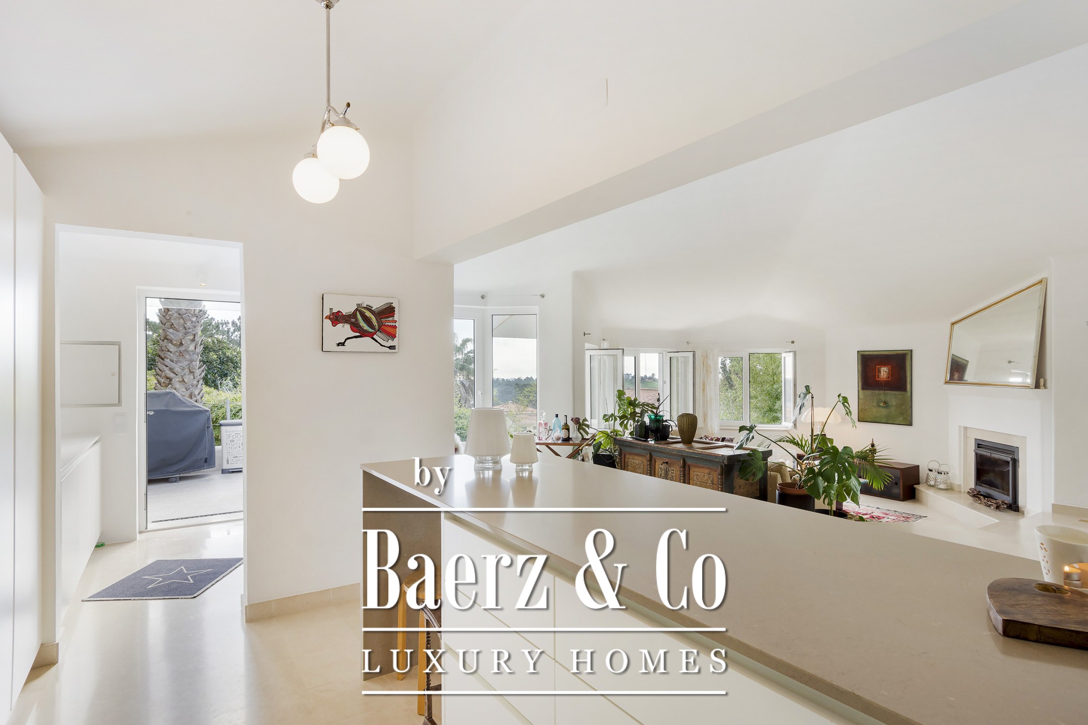 Die Sea View Villa Cascais bietet ein anspruchsvolles Wohnambiente auf 305 m² elegant gestalteter Fläche und liegt auf einem großzügigen Grundstück von 1.206 m² in Malveira da Serra. Dieses Fünf-Schlafzimmer-Anwesen beeindruckt mit split-Level-Architektur und durchdachtem Design, ausgestattet mit Bambusböden, modernisierten Bädern und einer offenen Küche mit Geräten von Kuppersbush sowie hochwertigen Oberflächen. Überall durchflutet natürliches Licht die Räume und unterstreicht Klarheit und Raffinesse der verwendeten Materialien und der Raumgestaltung.