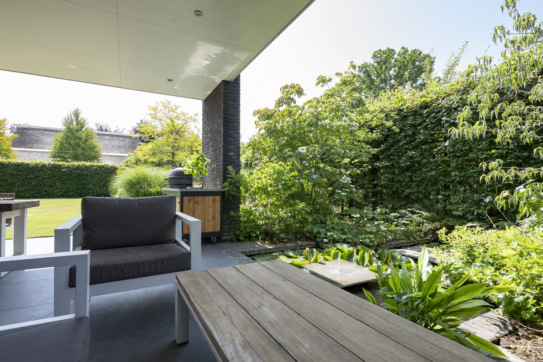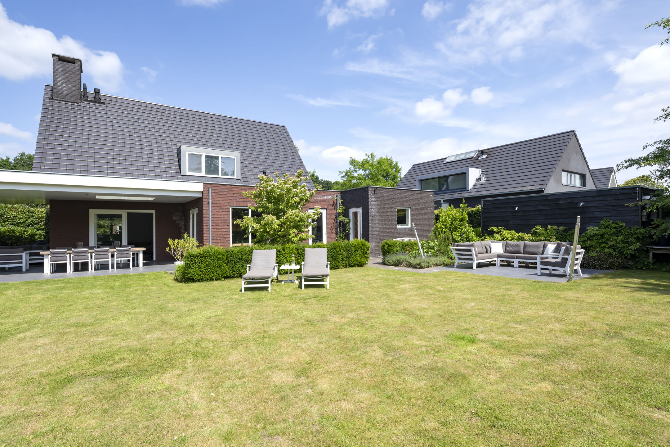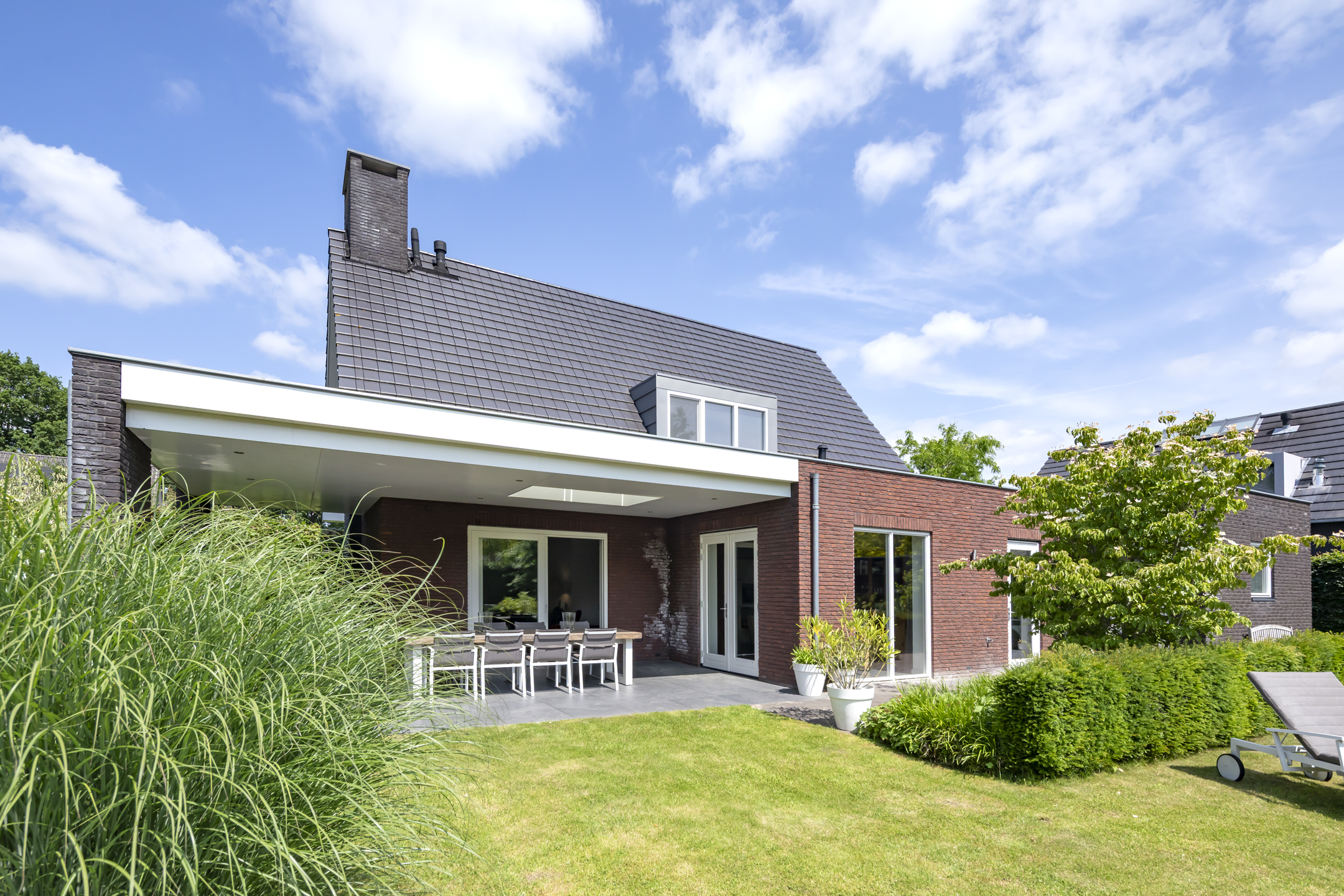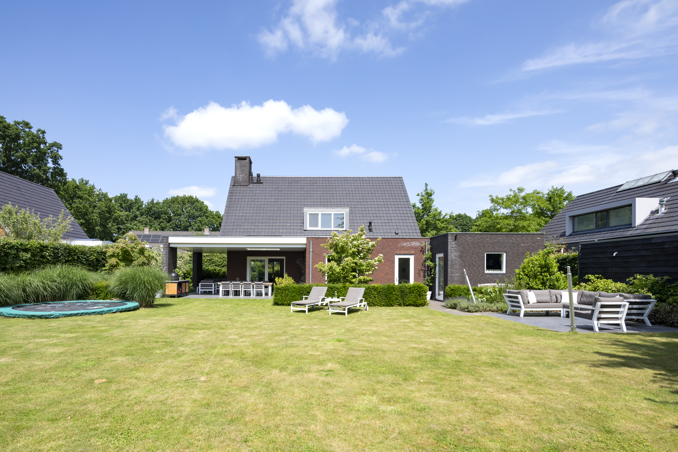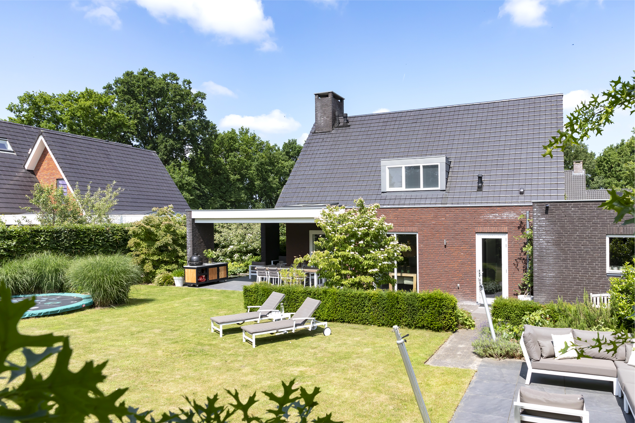 Dieses Einfamilienhaus in Haaren vereint seltene Privatsphäre mit großzügigem Wohnen auf einem weitläufigen Grundstück von 918 m² am Rand des Dorfes. Mit einer Wohnfläche von 184 m² bietet das Haus vier Schlafzimmer auf einer Ebene und eignet sich ideal für ein harmonisches Familienleben. Das durchdachte Design wird deutlich im Übergang vom sonnigen Wohnzimmer – eingerahmt von großen Fenstern und einem zentralen Kamin – in die moderne offene Küche mit Hochglanz-Fronten, einer Arbeitsplatte aus Verbundmaterial, Quooker und zwei Backöfen. Ein großer Hauswirtschaftsraum verbindet Garage und Garten, was den Alltag besonders komfortabel gestaltet.