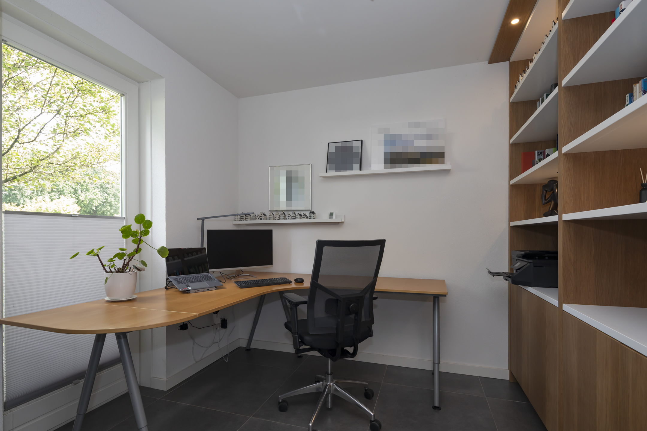 Im Außenbereich wechseln sich eine großzügige Sonnenterrasse, ein überdachter Bereich mit Oberlicht und eine abgeschirmte Sauna ab. Gewachsene Hecken bürgen für Privatsphäre, zudem lädt der Garten zum Spielen und Entspannen ein. Die isolierte Garage mit 3,85 m x 6,30 m erhöht die Nutzungsvielfalt, während auf der Einfahrt vier bis sechs Fahrzeuge Platz finden. Achtzehn Solarpanels, vollständige Dämmung und eine Energieeffizienzklasse A+ garantieren dauerhafte Wirtschaftlichkeit.