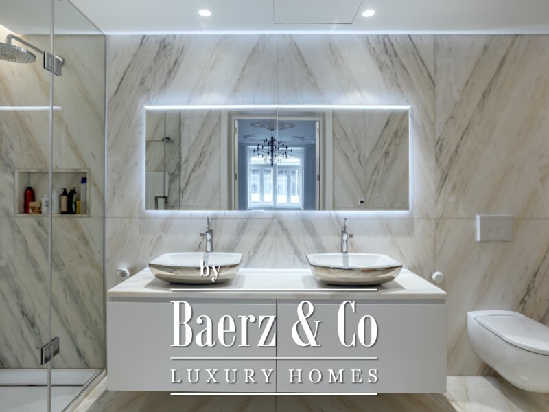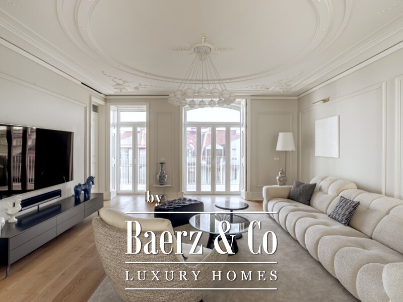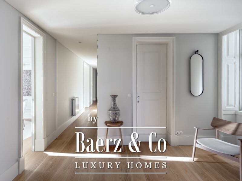Hohe, dekorative Decken mit 2,8 Metern vermitteln ein Gefühl von Großzügigkeit, während viel natürliches Licht die großzügigen Räume durchflutet, die mit größter Sorgfalt gestaltet wurden. Estremoz-Marmordetails und Einbauschränke stehen für dauerhafte Materialien und ein durchdachtes Design. Die Raumaufteilung präsentiert sich elegant: Ein Eingangsbereich führt zu Wohn- und Esszimmer, Küche mit Miele-Geräten, Gästebad, vielseitig nutzbares Schlafzimmer oder Büro und vier Suiten, davon zwei mit begehbarem Kleiderschrank. Fußbodenheizung in den Bädern, Klimaanlage in allen Räumen und Zentralheizung sorgen das ganze Jahr über für Komfort.