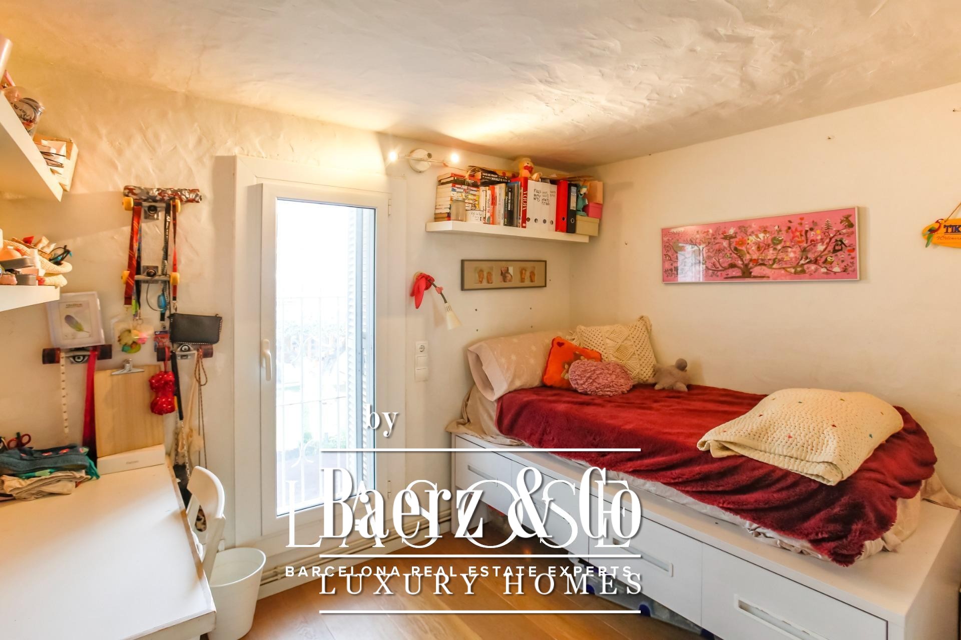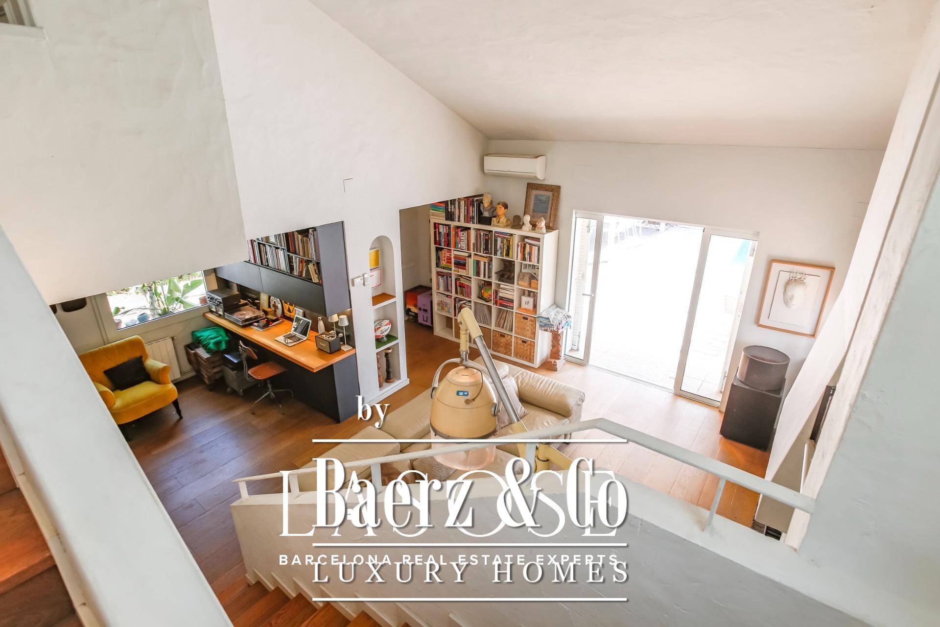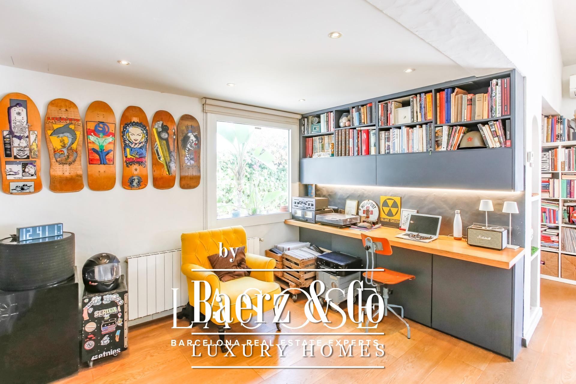 Im Inneren entfaltet sich ein harmonischer Wohnrhythmus. Der elegante Wohnbereich mit Kamin öffnet sich zum Garten, während die voll ausgestattete Küche mit zentraler Arbeitsfläche an eine private Terrasse und den Parkplatz anschließt. Im Erdgeschoss ergänzt eine Gästesuite oder ein Homeoffice das flexible Wohnkonzept, während das Obergeschoss drei helle Doppelschlafzimmer mit Gartenblick und doppelt hoher Decke bietet. Überall unterstreichen hochwertige Ausstattungen und neutrale Farbtöne die natürliche Noblesse der Architektur.