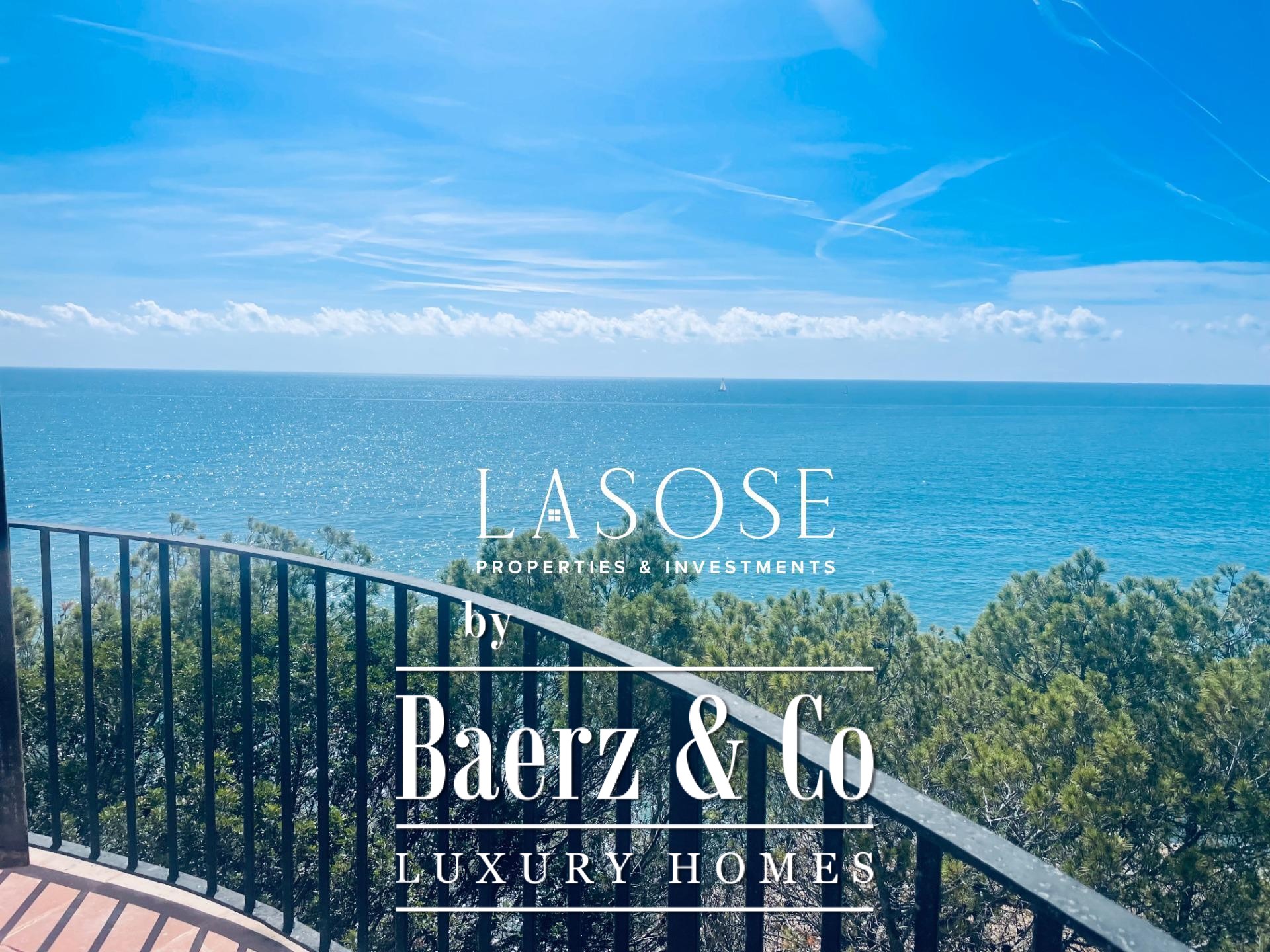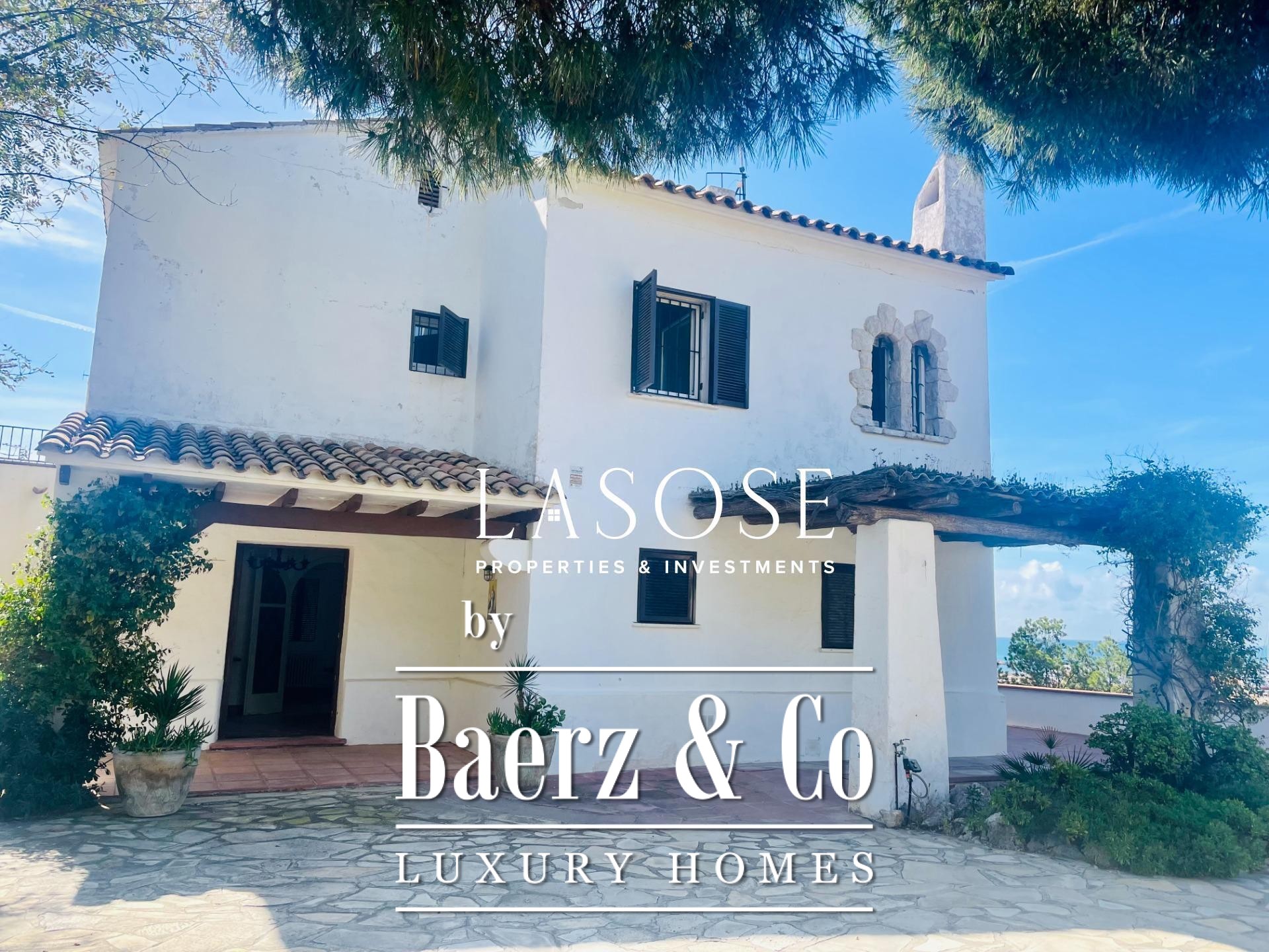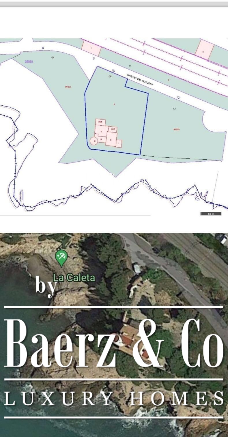 Das Anwesen umfasst 274 m² Wohnfläche auf drei Ebenen, geprägt von unverwechselbarem mediterranem Stil und gekrönt von einem originalen Wachturm. Die Hauptebene eröffnet sich mit einer repräsentativen Diele, die in drei lichtdurchflutete Empfangsräume übergeht, von denen jeder Meerblick bietet und Zugang zur großzügigen Terrasse mit Blick auf das Wasser gewährt. Die Küche integriert einen Büroraum sowie einen Zugang zum Keller, während ein Bad mit Dusche das Erdgeschoss komplettiert.