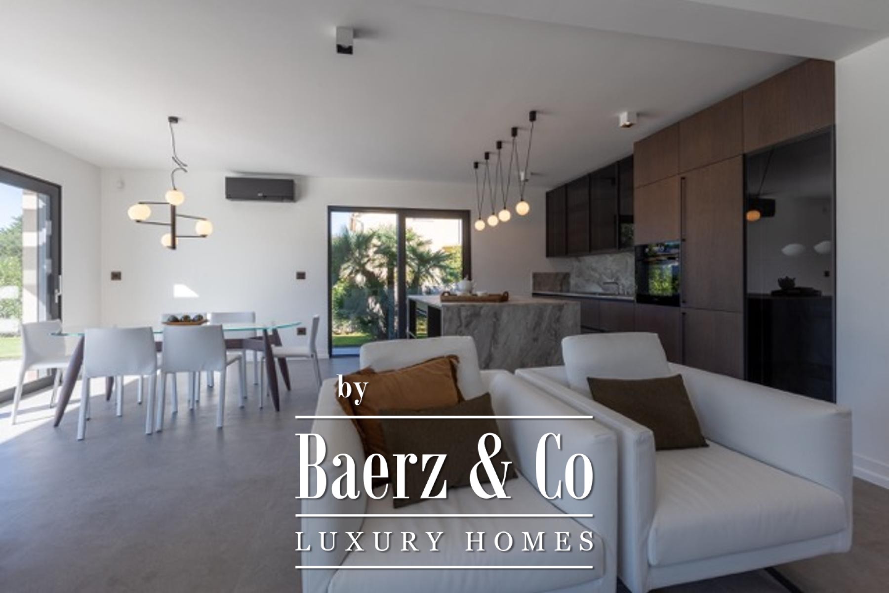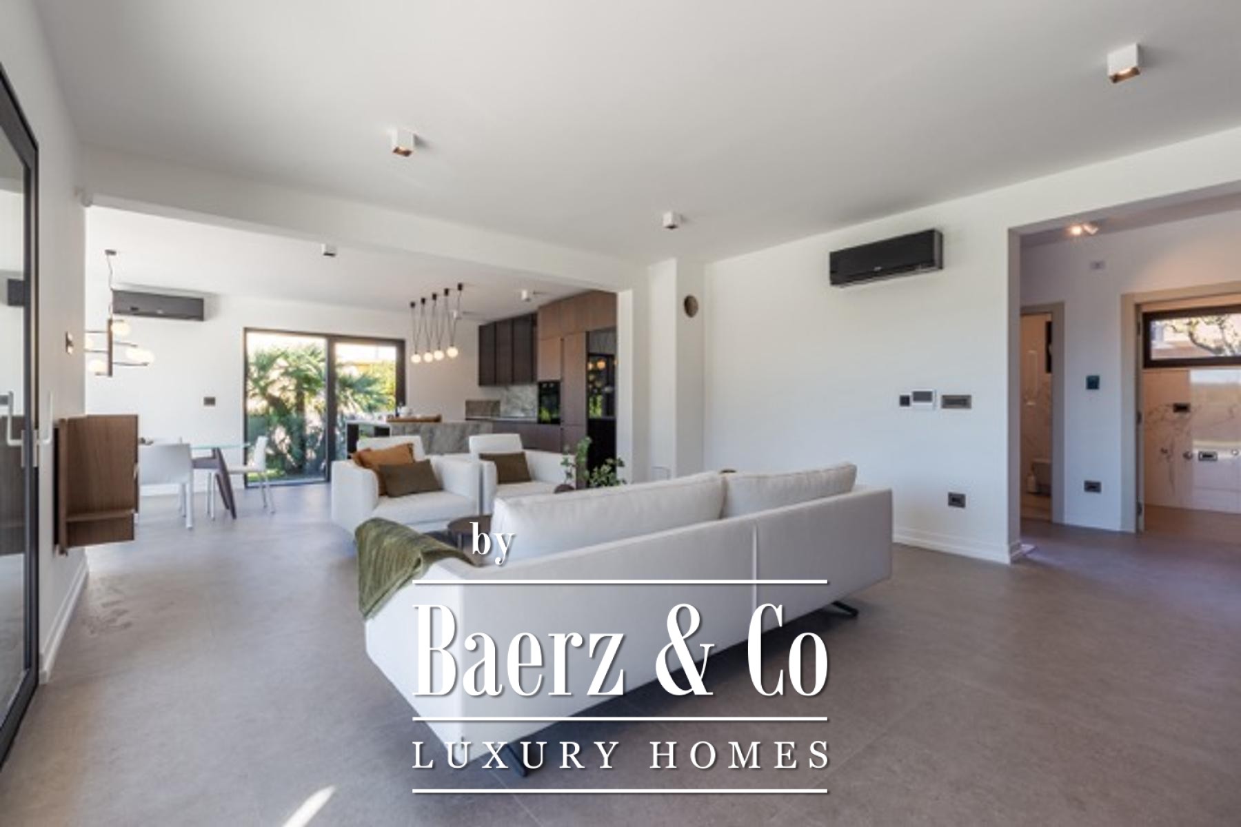 Die technische Ausgestaltung der Villa unterstreicht den Anspruch an Komfort und Effizienz: Fußbodenheizung mittels Wärmepumpe, Klimaanlage, dreifach verglaste Aluminiumfenster mit elektrischen Rollläden und Insektenschutzgittern, ein separates Videoüberwachungssystem, sowie eine 13,5 kW starke Solaranlage auf dem Dach für energetische Autarkie. Die Sommerküche im Außenbereich und ausgewählte Designer-Elemente schaffen einladende Rahmenbedingungen für geselliges Beisammensein, während ein Technikraum mit Wasseraufbereitungssystem zusätzlichen Komfort bietet.