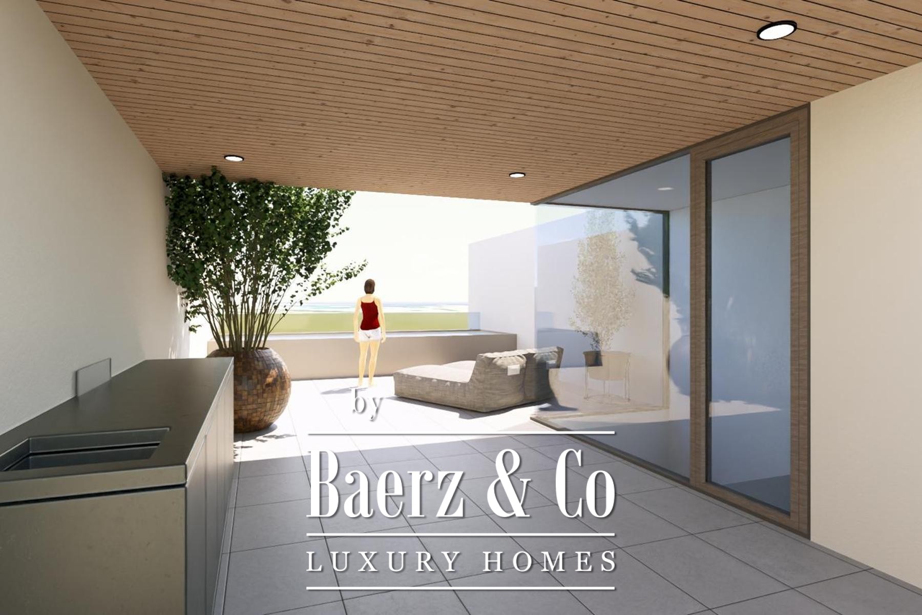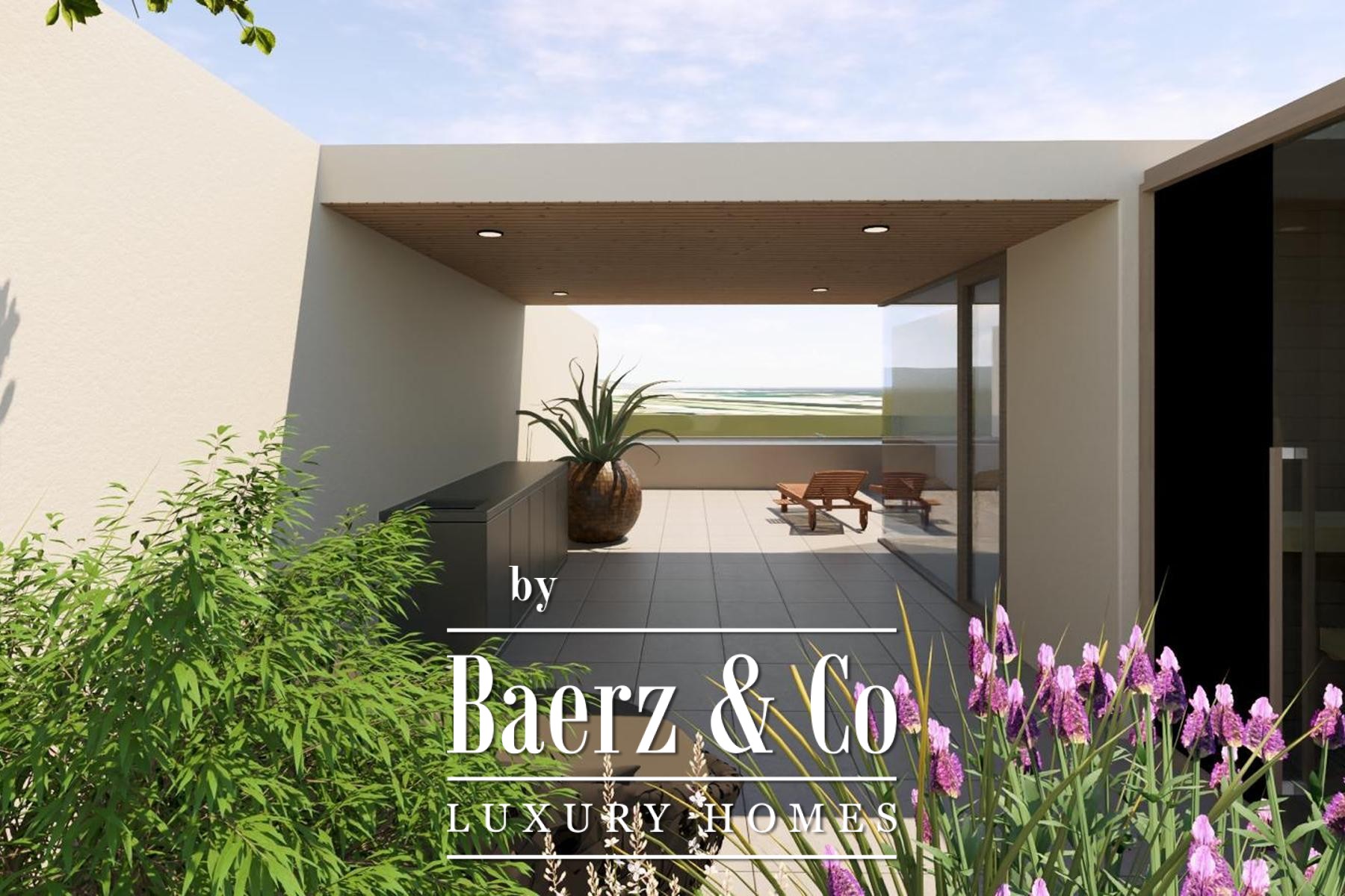 Der Rhythmus der Wohnung entfaltet sich über eine Eingangshalle, die in einen lichtdurchfluteten Wohnbereich, einen Essplatz und eine Küche führt, die allesamt durch hochwertiges, im Chevron-Muster verlegtes Eichenparkett verbunden sind. Rahmenlose Glaswände ermöglichen fließende Übergänge zwischen Innen- und Außenbereichen und öffnen sich zu Terrassen sowie einem privaten Pool auf der oberen Ebene. Der Grundriss platziert das Hauptschlafzimmer zusammen mit zwei zusätzlichen Kinderzimmern, ergänzt durch drei Bäder, die ein reibungsloses tägliches Leben ermöglichen.