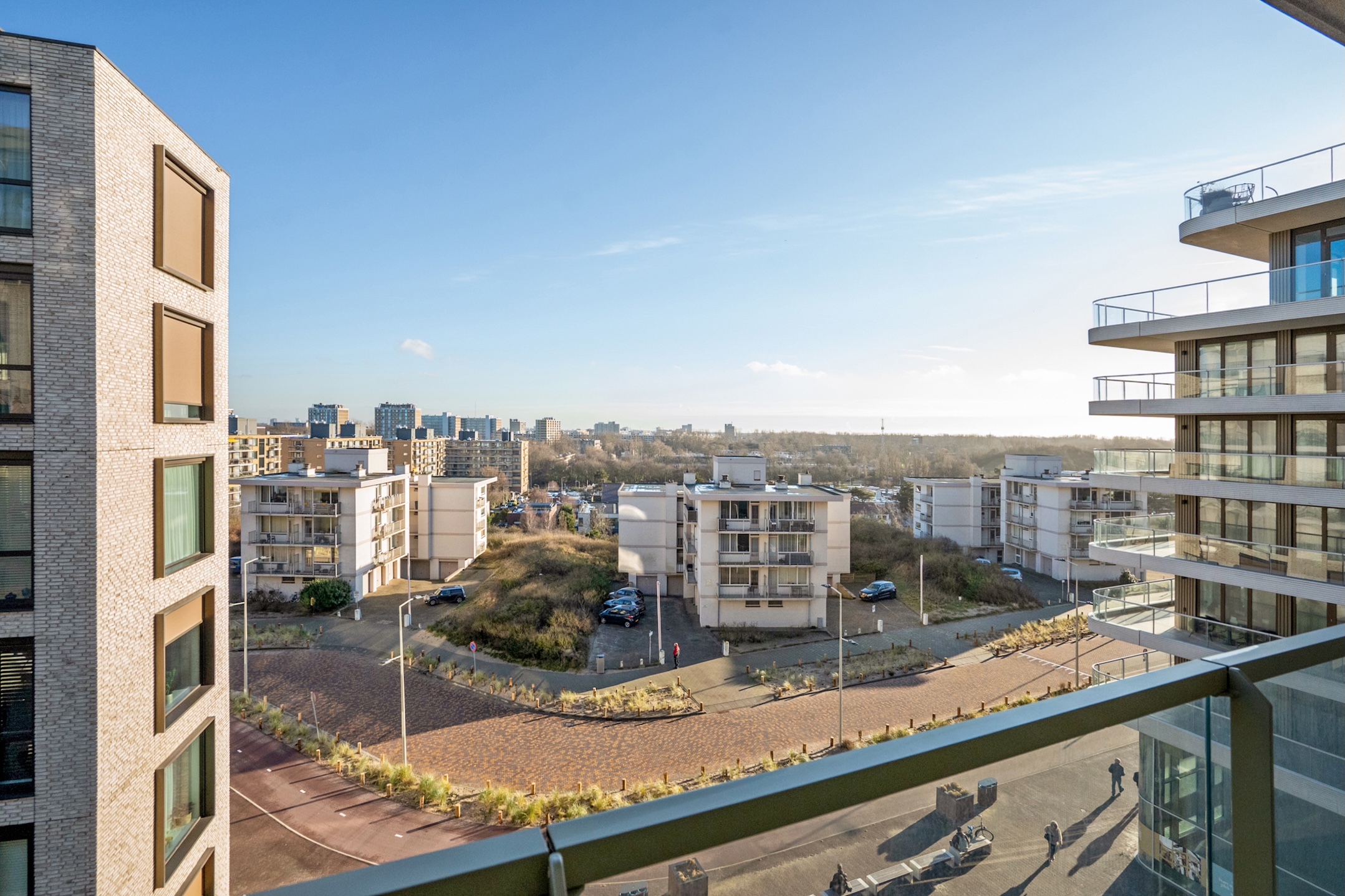 Balcony facing east, south, and a bit to the southwest