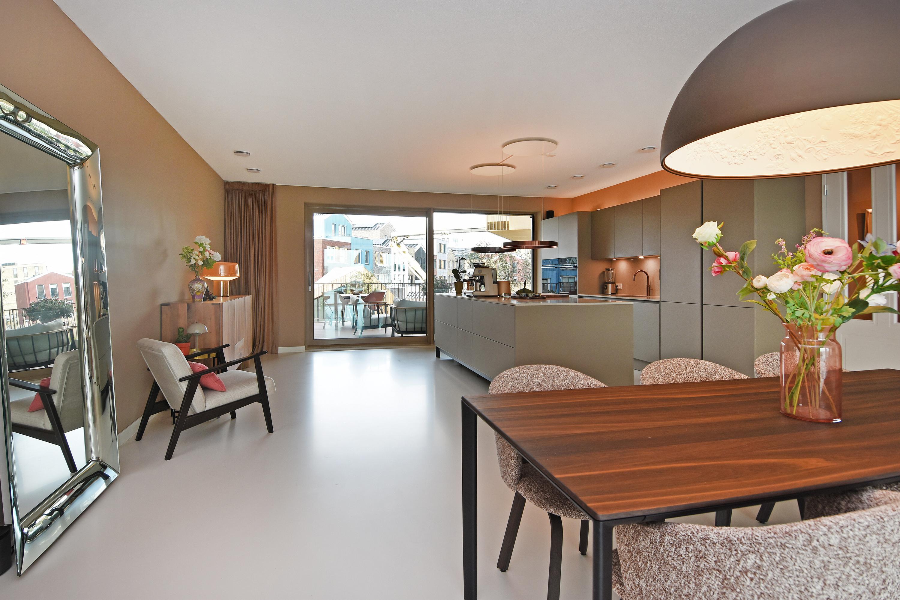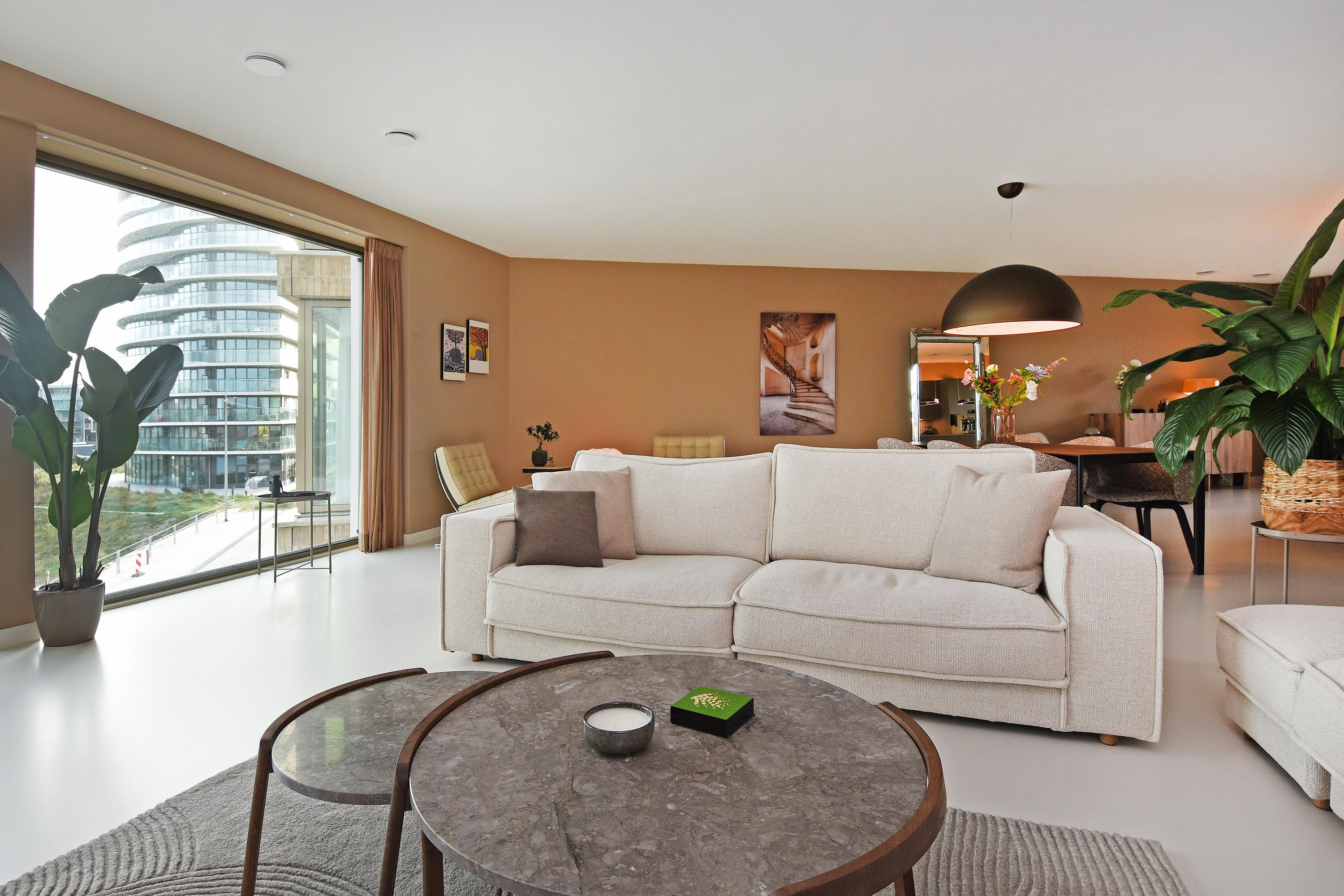Apartment Den Haag with sea views offers a rare fusion of modern architecture and understated luxury. Situated in Scheveningen, this high-end apartment spans 135 m² and features expansive floor-to-ceiling windows that frame the panorama of the harbour and the North Sea. The living area flows seamlessly into a designer kitchen with a cooking island and integrated luxury appliances. Sliding doors invite the outdoors in, connecting the main living space to a private 29 m² balcony overlooking a landscaped courtyard, perfect for quiet afternoons or evening gatherings.