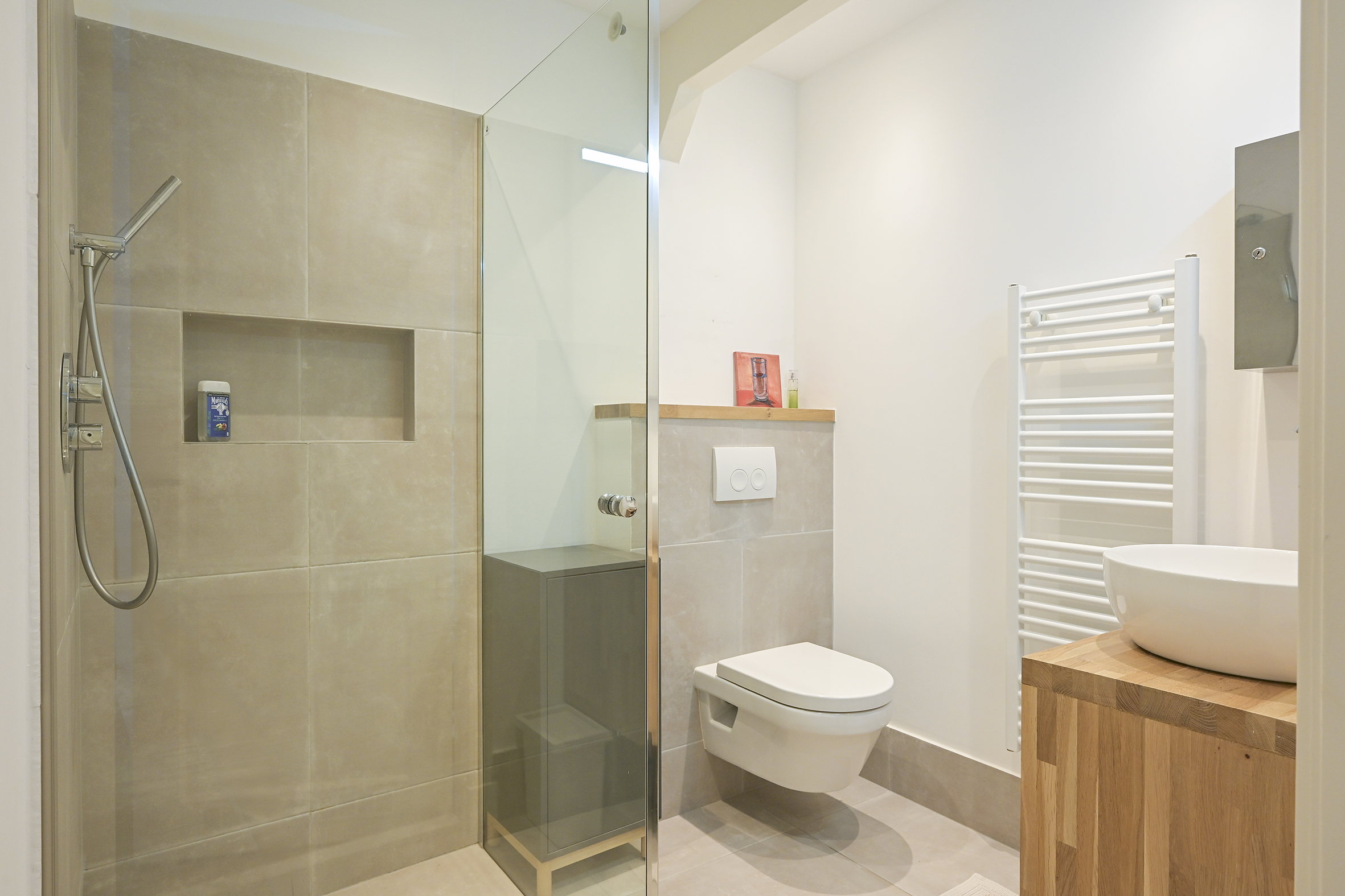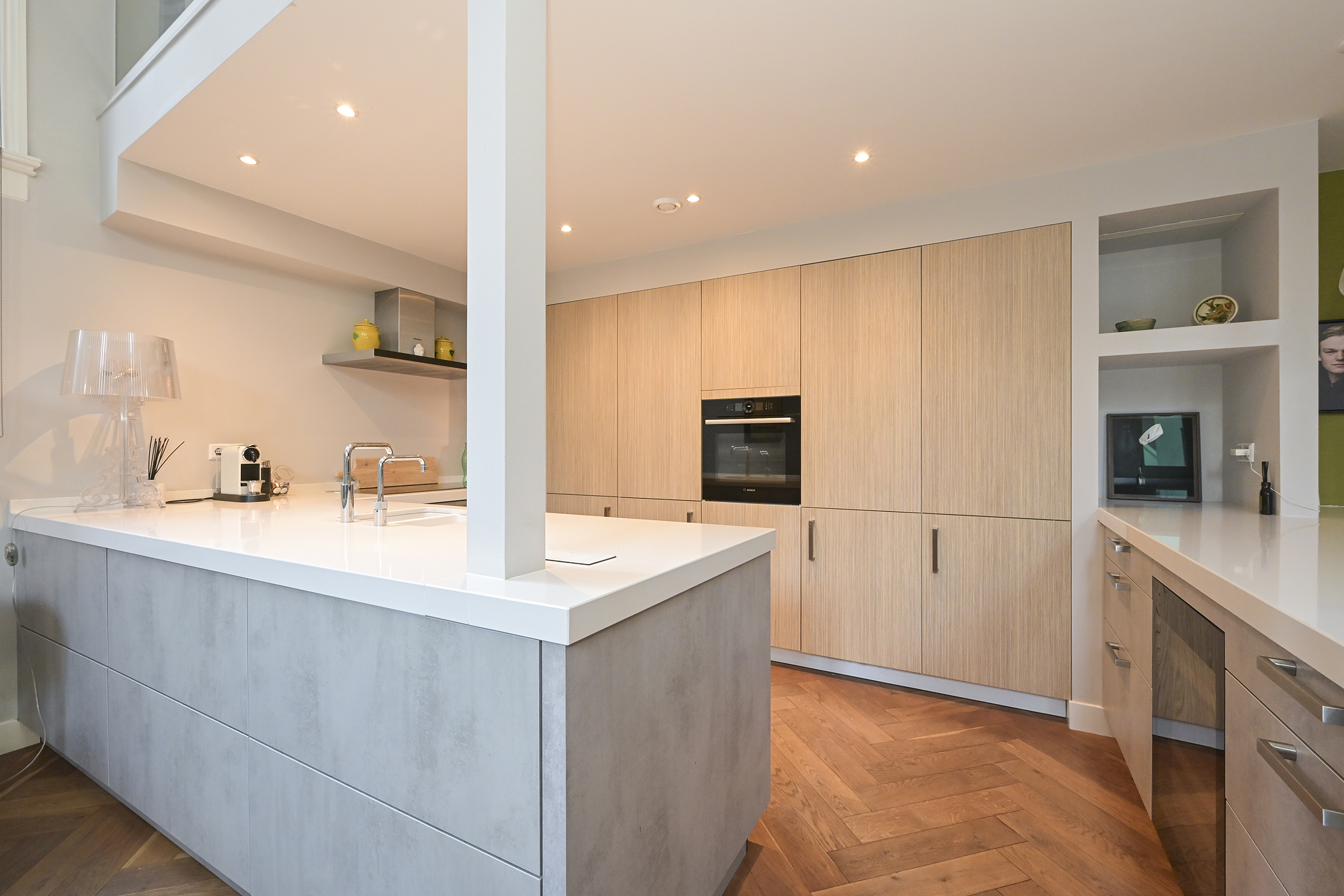 This unique home has been designed with great style and originality and is in excellent condition. With its three south-facing terraces spread across three floors, you have the perfect choice of where to enjoy a cup of coffee or a glass of wine. In the summer months, enjoy a BBQ with friends on your own terrace in front of the house. In the evenings and on weekends, the imposing entrance gate is closed, ensuring total privacy.