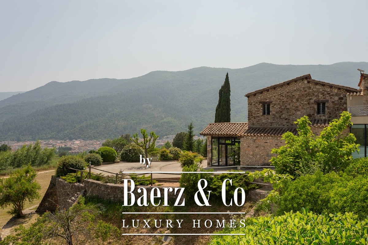Masia for sale Amer presents a rare opportunity to own an authentic piece of Catalan history. Dating to 1720, this remarkable 645 m² masia has been meticulously restored across a 20,245 m² private estate, elevated above the Amer Valley with uninterrupted views of La Selva and the surrounding mountains. Stone, light, and space define the ambience, while a curated hospitality concept is already established, offering both lifestyle and business continuity. The main residence provides five elegant bedrooms and six bathrooms, refined living spaces, and a professional kitchen. Contemporary comfort coexists with heritage, underscored by air conditioning, heating, and high-speed Wi-Fi throughout. A wellness suite with jacuzzi and dedicated relaxation areas adds a layer of retreat, complemented by terraces and a large illuminated swimming pool tied seamlessly to the manicured gardens.