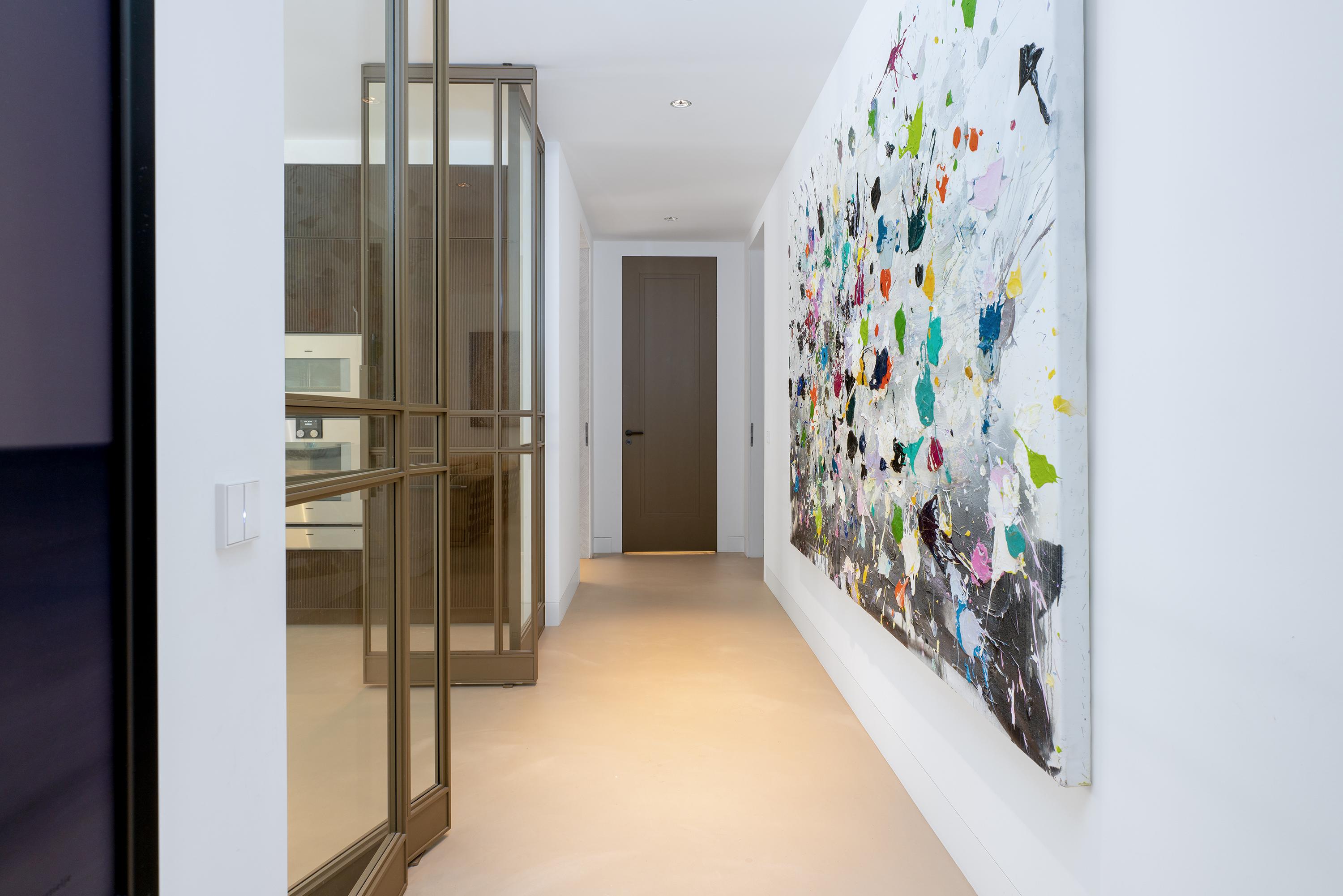 The apartment’s entrance is spacious and has a wonderful marble floor and built-in cupboards. Steel pivot doors open into a hall that gives access to all the rooms on this floor, including a separate toilet room.