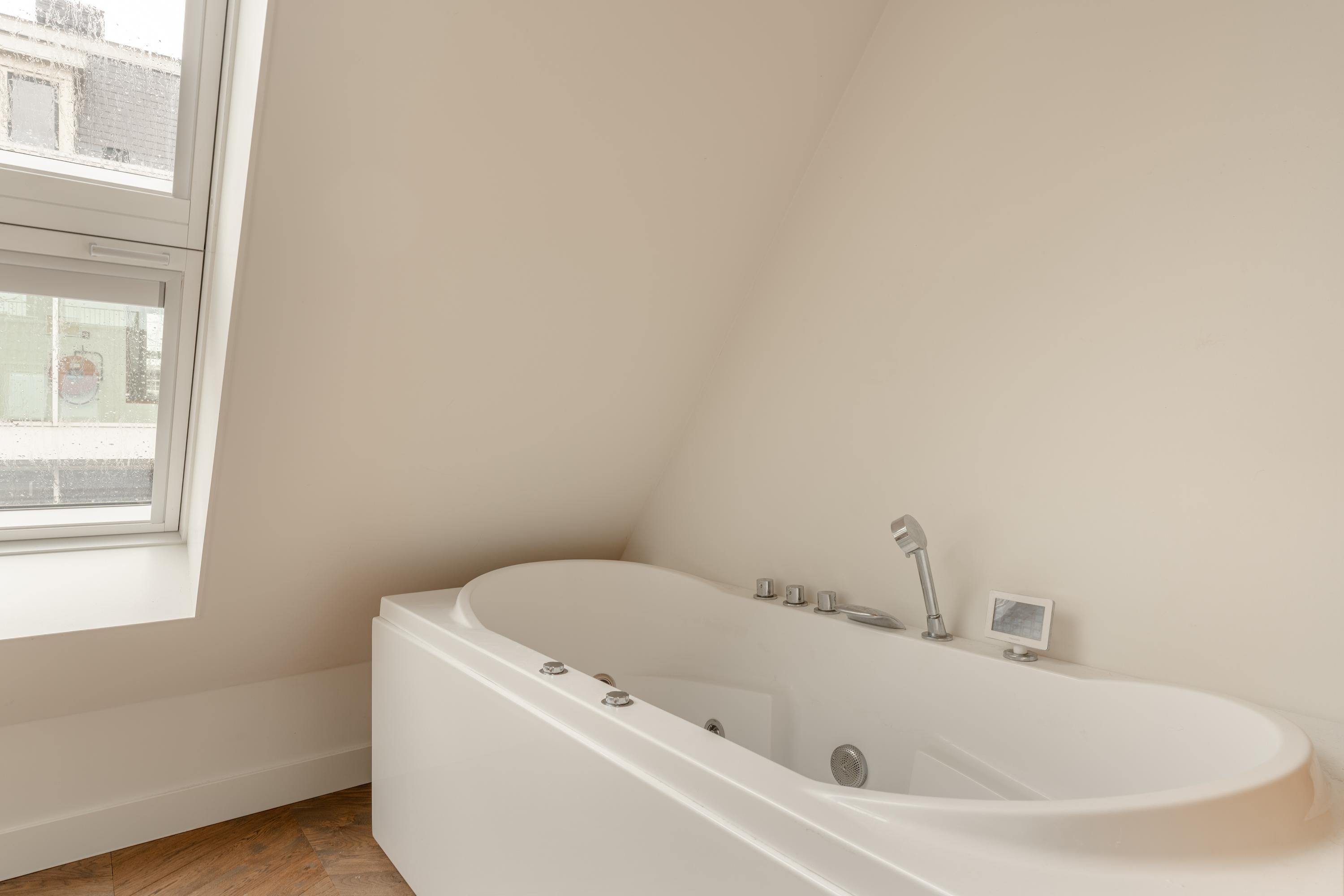 In the heart of the highly sought-after Jordaan area, this bright duplex apartment of approximately 108 m² is located within the modern new-build complex “Elandshof”, completed in 2017. The apartment is spread over two floors and features, among other things, two bedrooms, two bathrooms, a spacious living floor with an open kitchen and a roof terrace with views over the rooftops of the Jordaan. Thanks to the high ceilings, skylights and large windows, the apartment benefits from excellent natural light and a wonderful sense of space.