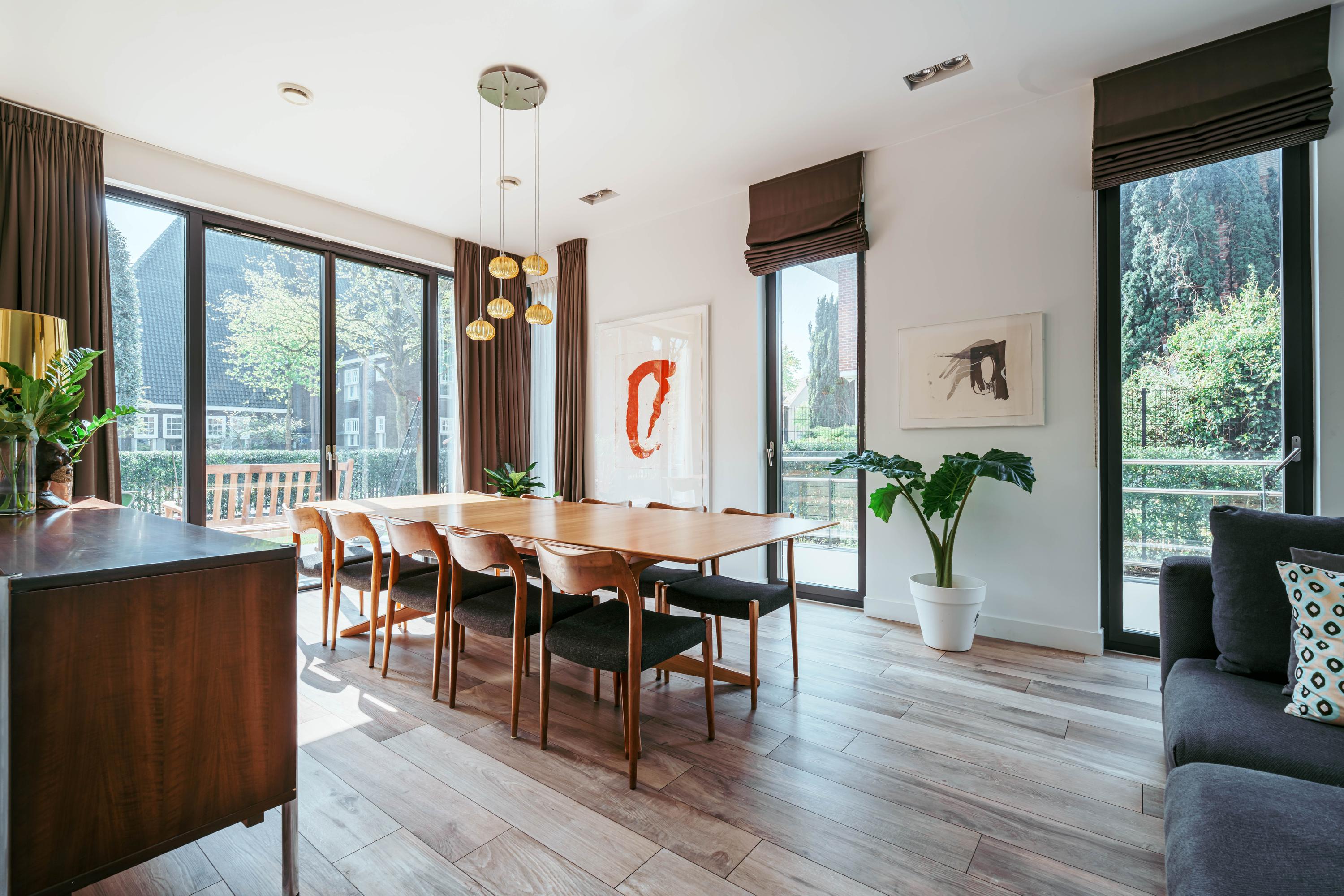 This unique villa located in Amsterdam-Zuid offers a living area of approximately 397 m², spread across three full residential floors, with multiple outdoor spaces including a private jetty, garden, balcony, and a spacious rooftop terrace.