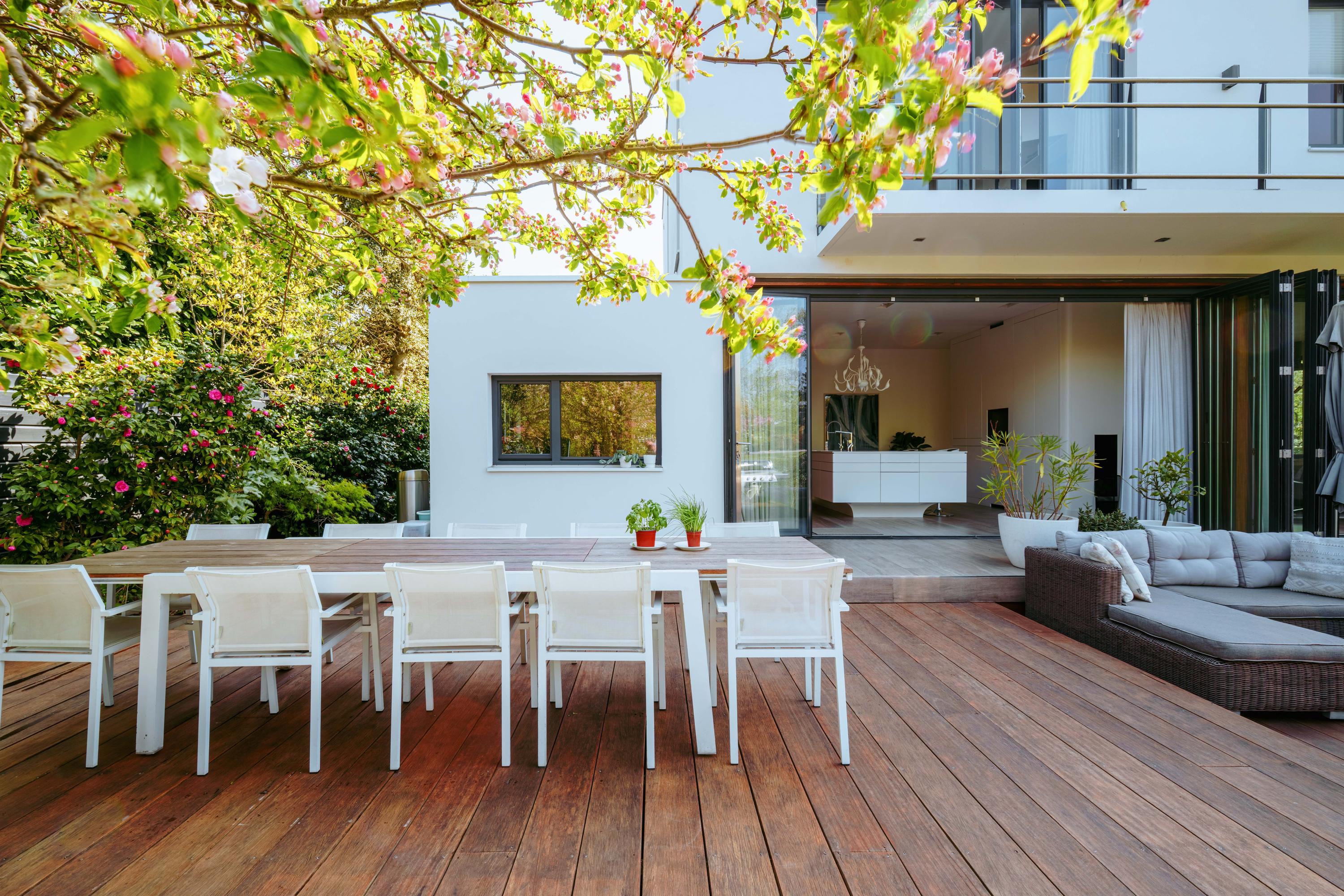 - Spacious and sunny garden surrounding the entire property of approx. 441 m², with direct access to a private jetty