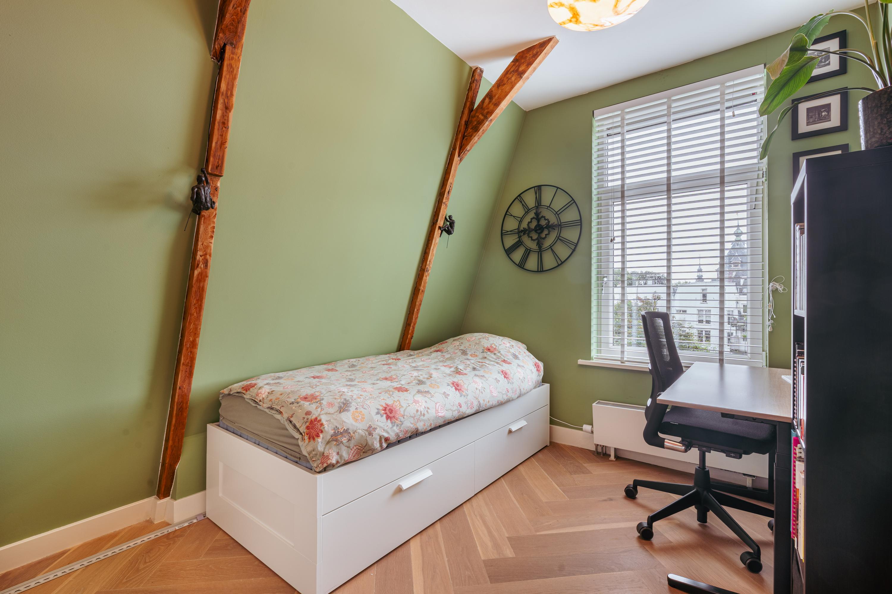 The third floor is the heart of the home and features an exceptionally bright living space with unobstructed views of Artis and the surrounding greenery. A truly unique experience: you can regularly hear the sounds of sea lions, monkeys, and even wolves in the evening, adding a remarkable atmosphere to city living.