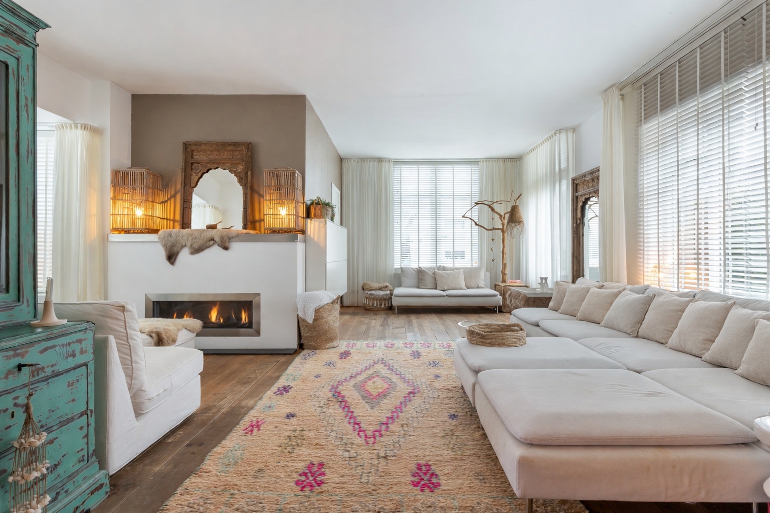 From the front of the property the full extent of the living space is hardly visible. Once inside, the space unfolds impressively, offering several living and sleeping areas, two bathrooms, two garages, two verandas and a sunny, fully private garden with swimming pool. The current finish is contemporary and inspired by a warm South-European Ibiza style. In 2026 the exterior was finished in a warm tone and fitted with characteristic louvre shutters. Combined with the sunny terraces and the pool, this creates a relaxed and almost Mediterranean atmosphere.