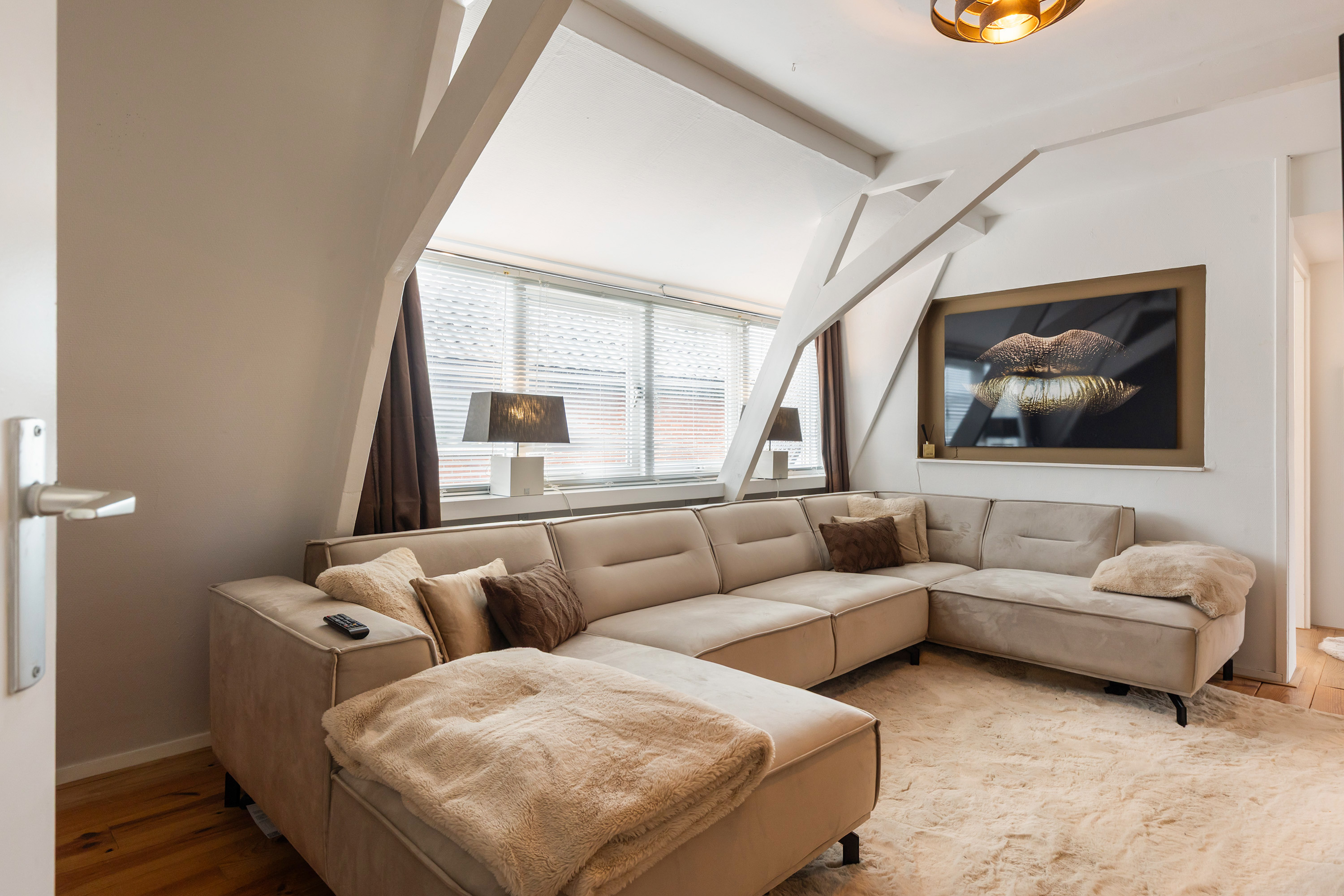Throughout this level the original beams, sloping ceilings, wide dormer windows and wooden floors have been preserved, giving the spaces a warm and authentic character.