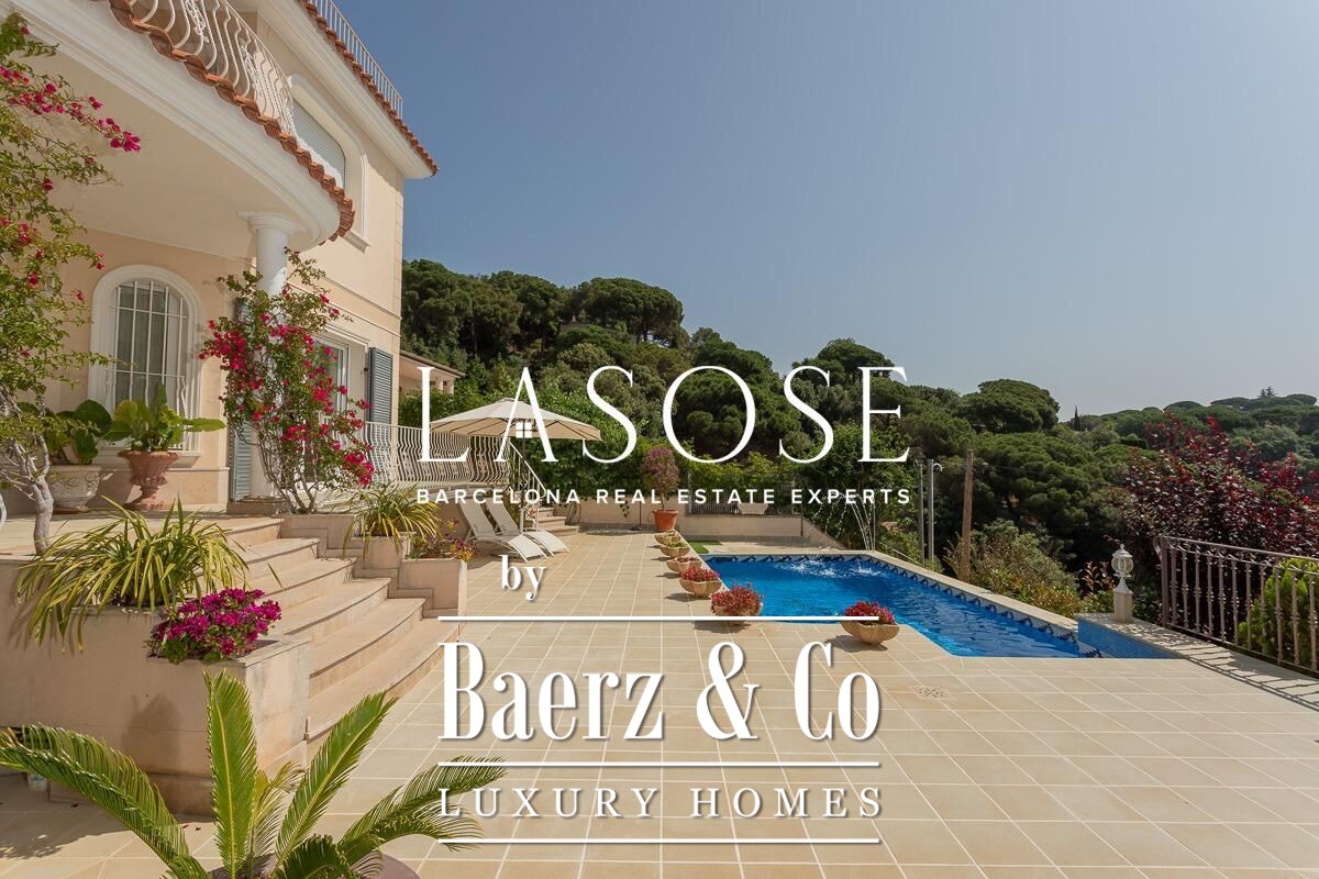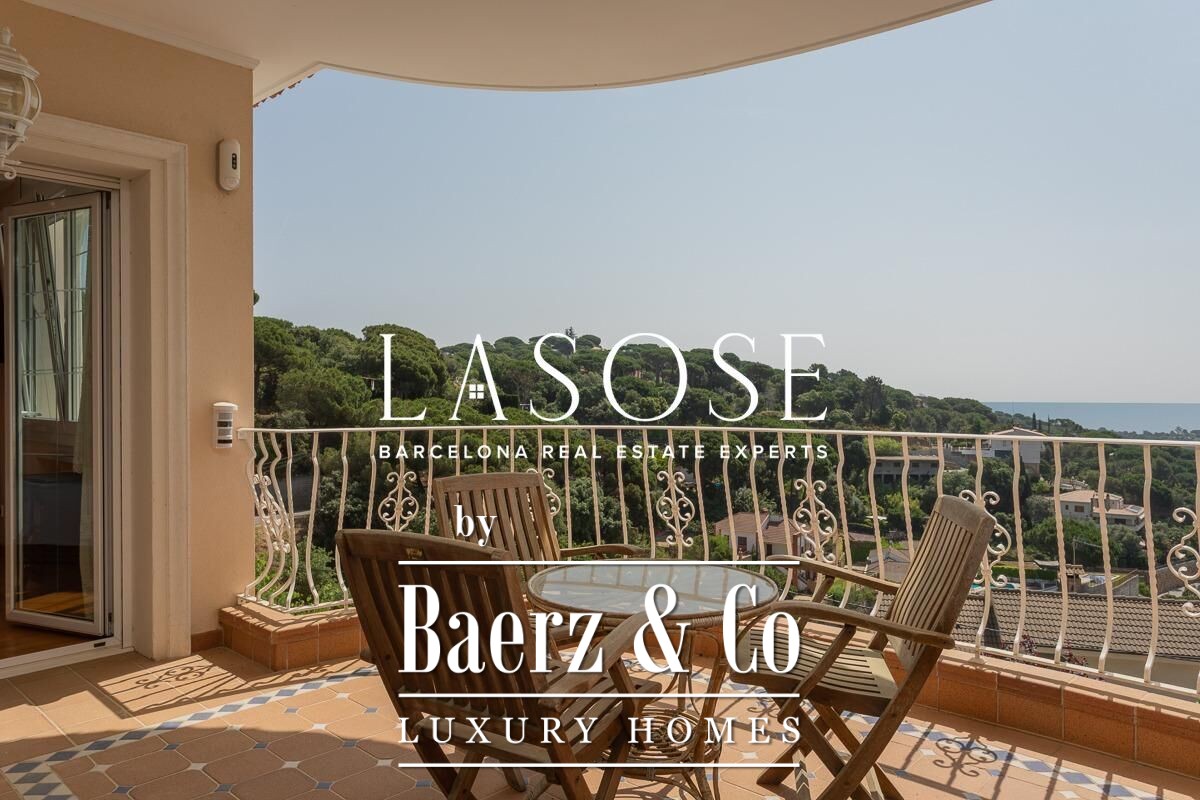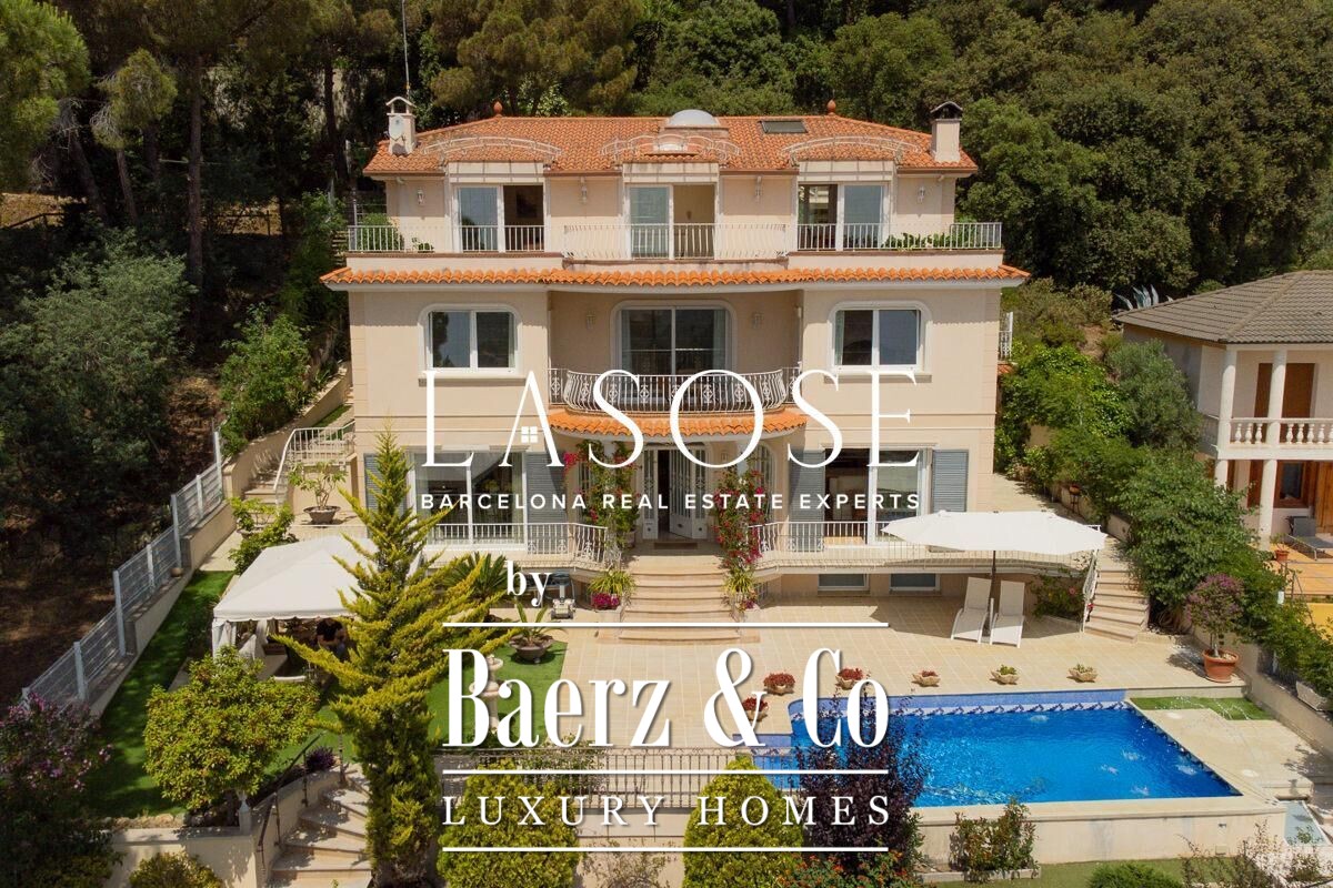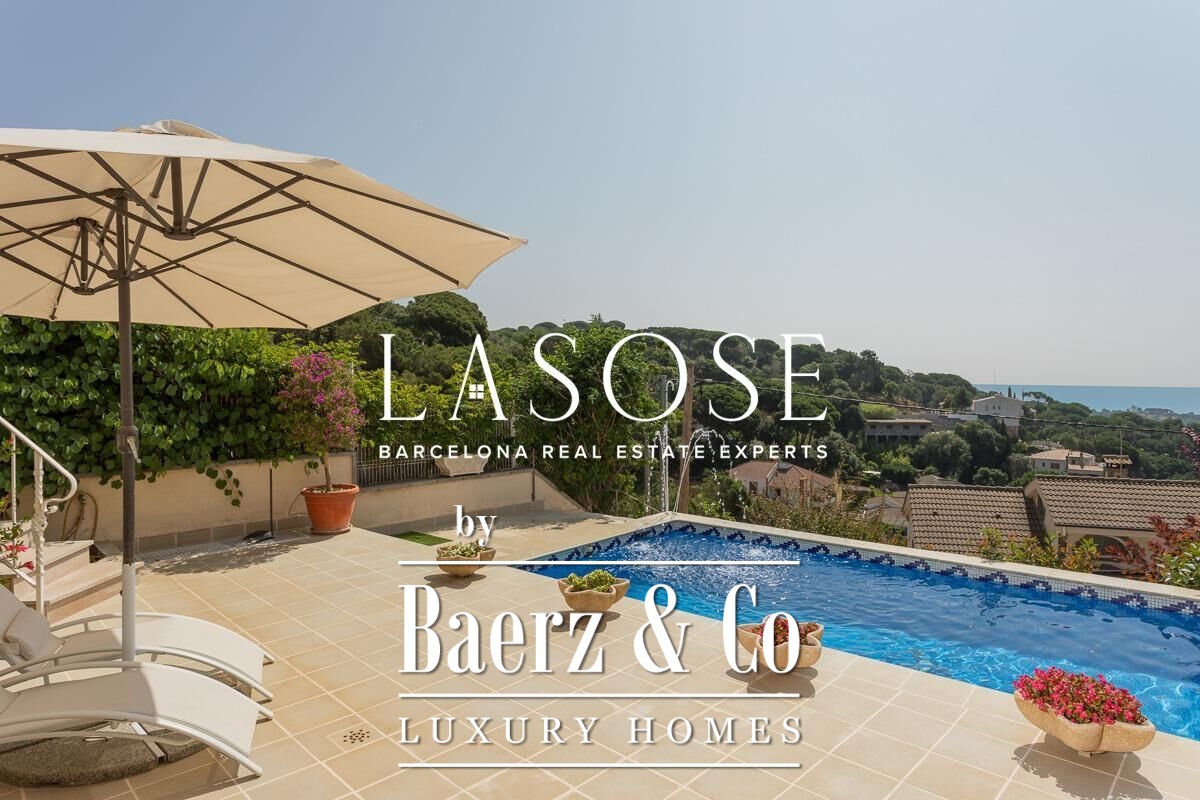 The home’s amenities are considered and complete: air conditioning, ducted heating and radiators, aluminum electric blinds, and a five-car garage. Outdoor spaces include a pool with pergola, barbecue, and garden, all oriented to maximize sea views and natural light. Located minutes from the beaches and vibrant marina of Arenys de Mar, with Barcelona accessible in forty minutes, this villa places quality of life and discretion at the forefront.