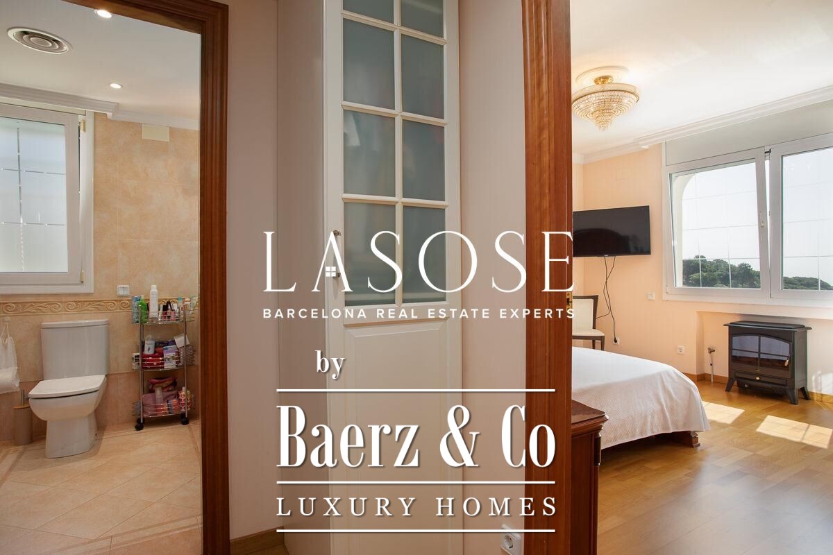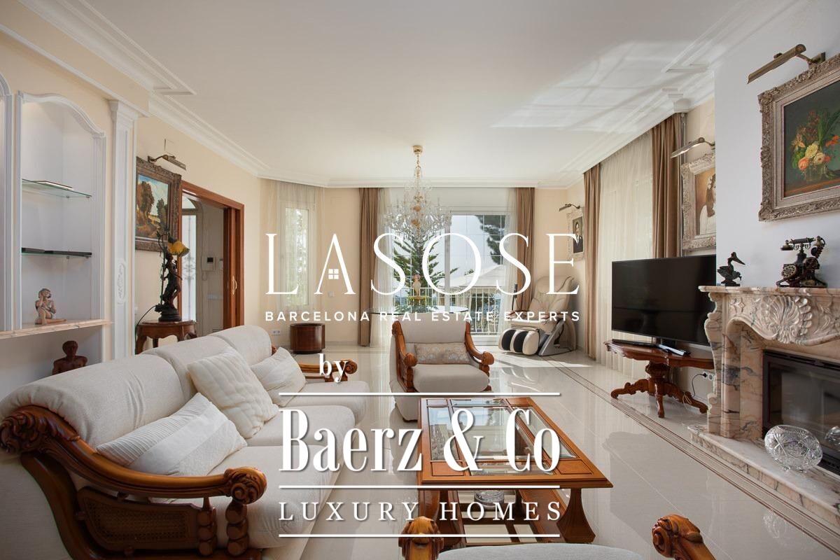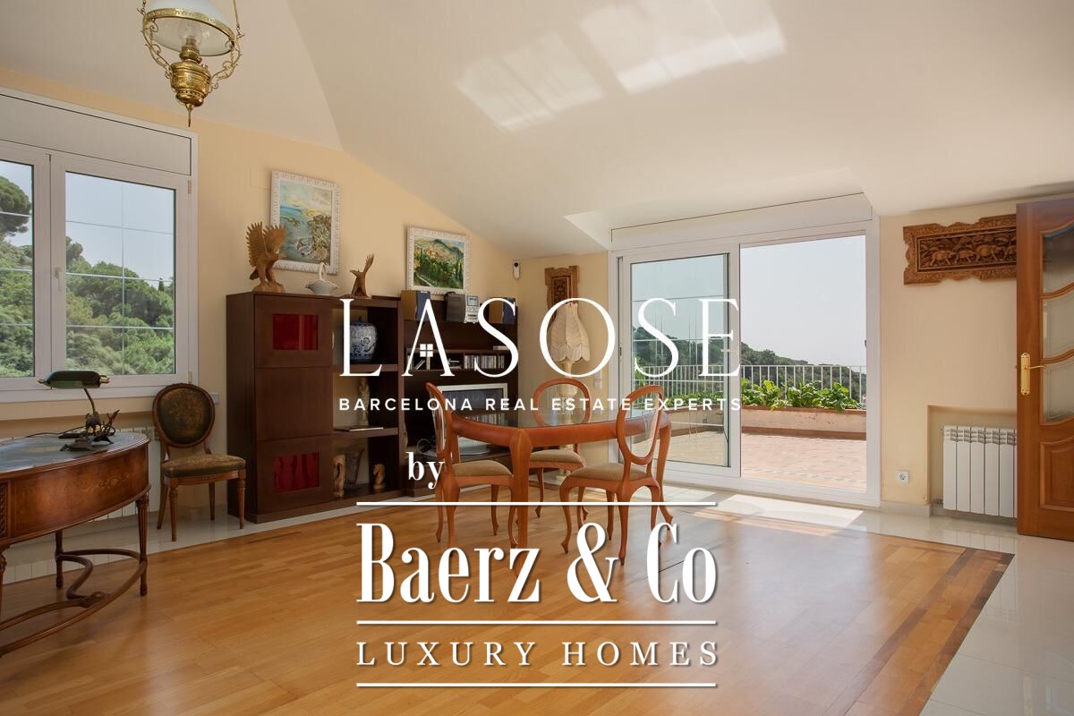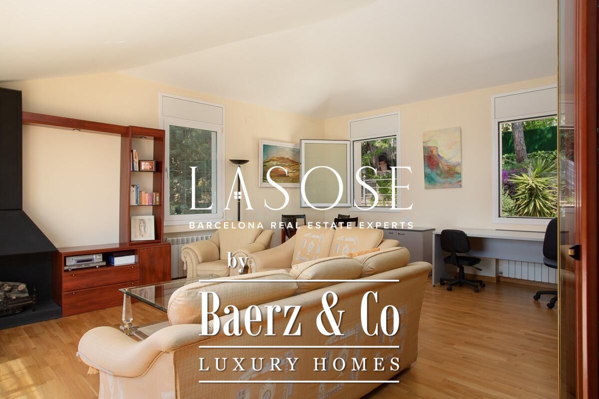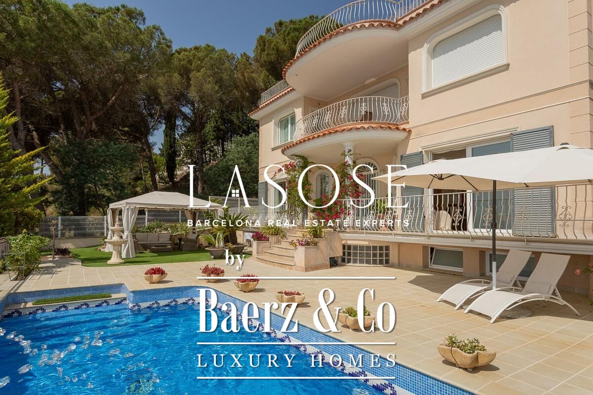 Spread across four elevator-connected levels, the villa’s architecture is measured, light-filled, and designed for effortless indoor-outdoor flow. The living areas are anchored by elegant marble floors and a fireplace, opening to generous terraces and a level garden, all framing exceptional views that reach the Barcelona skyline on clear days. Five bedrooms and five bathrooms allow for private retreat, while two fully equipped kitchens enhance flexibility. The private library, large pantry, and dedicated storage spaces add utility without sacrificing poise.
