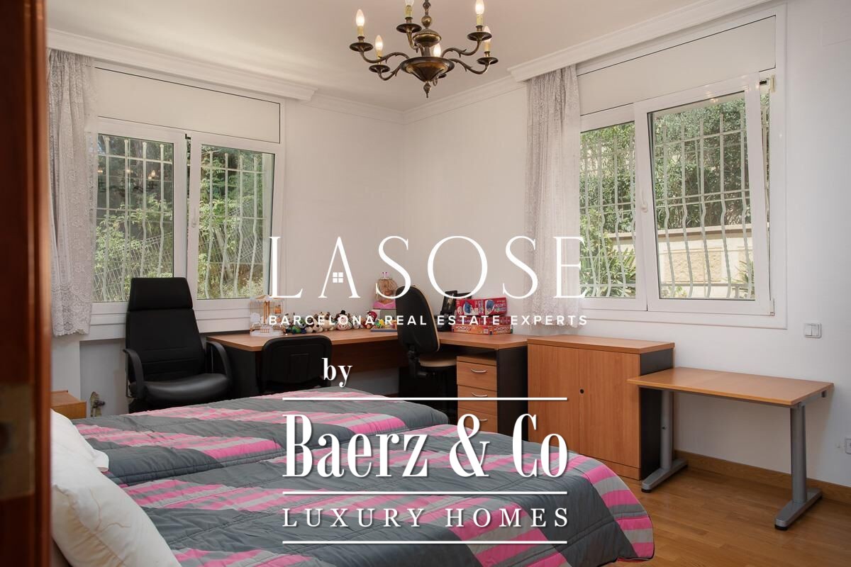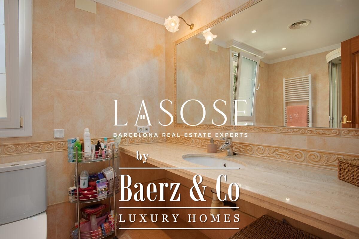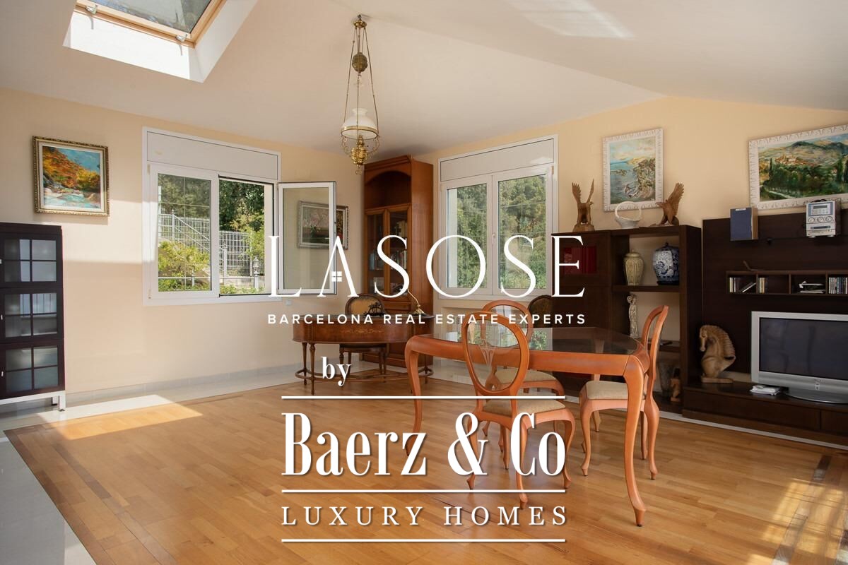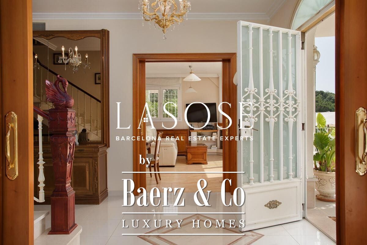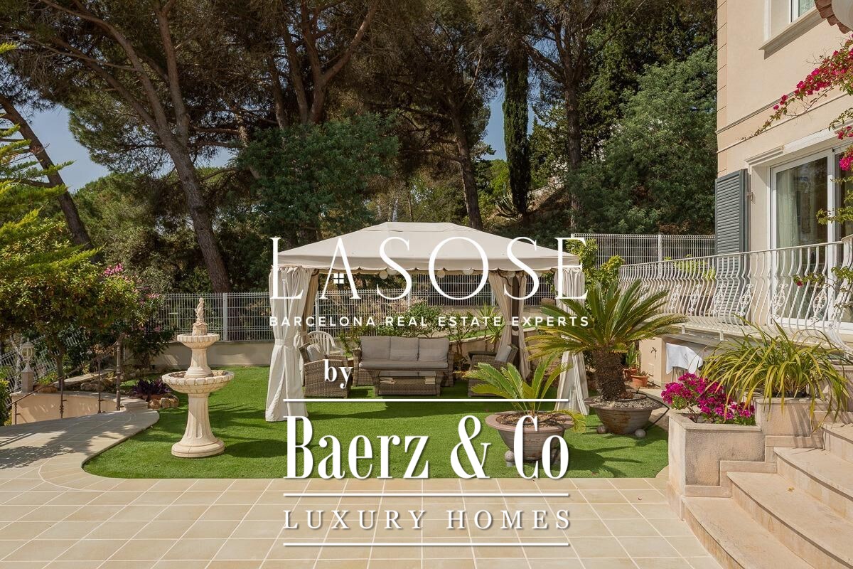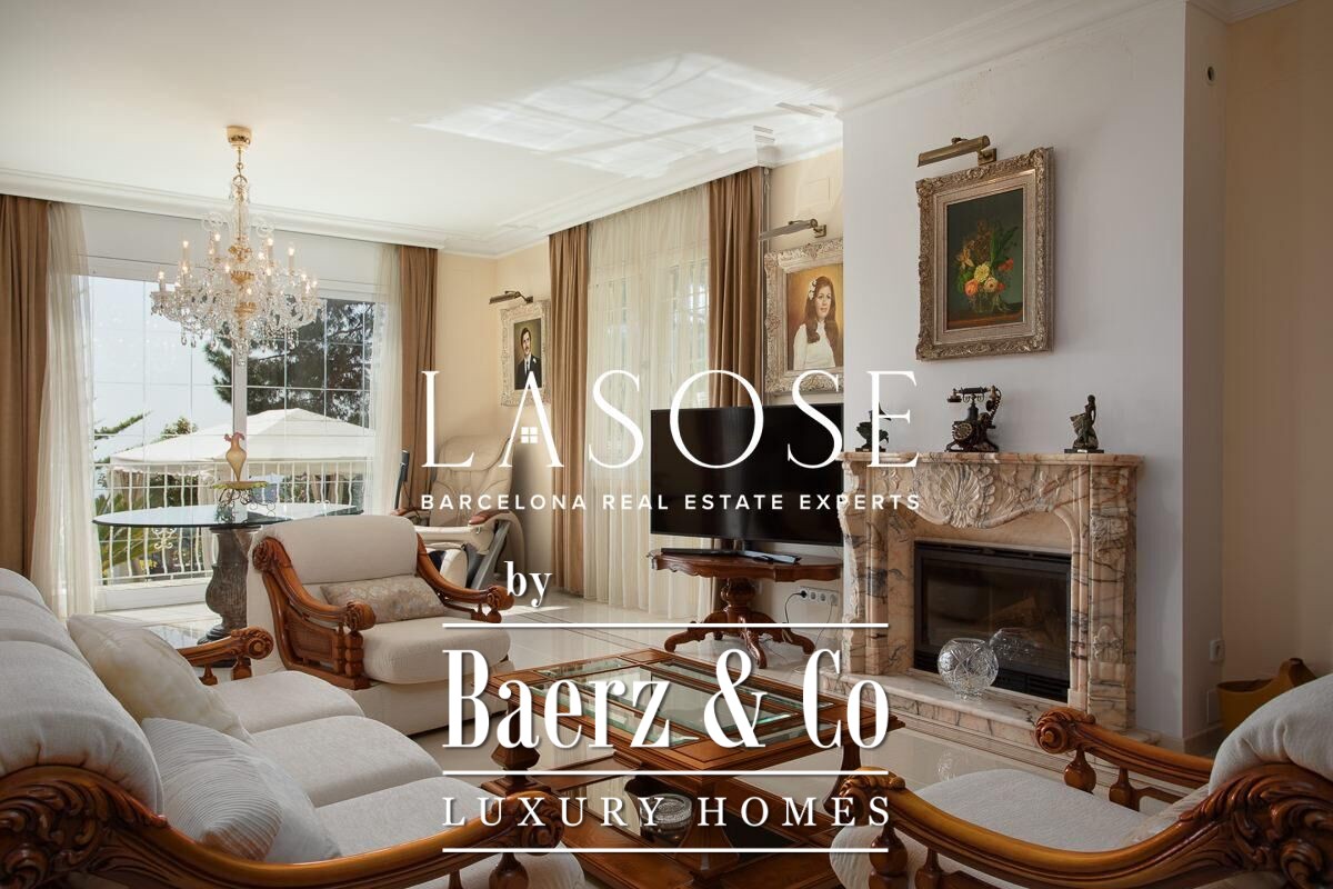 Spread across four elevator-connected levels, the villa’s architecture is measured, light-filled, and designed for effortless indoor-outdoor flow. The living areas are anchored by elegant marble floors and a fireplace, opening to generous terraces and a level garden, all framing exceptional views that reach the Barcelona skyline on clear days. Five bedrooms and five bathrooms allow for private retreat, while two fully equipped kitchens enhance flexibility. The private library, large pantry, and dedicated storage spaces add utility without sacrificing poise.