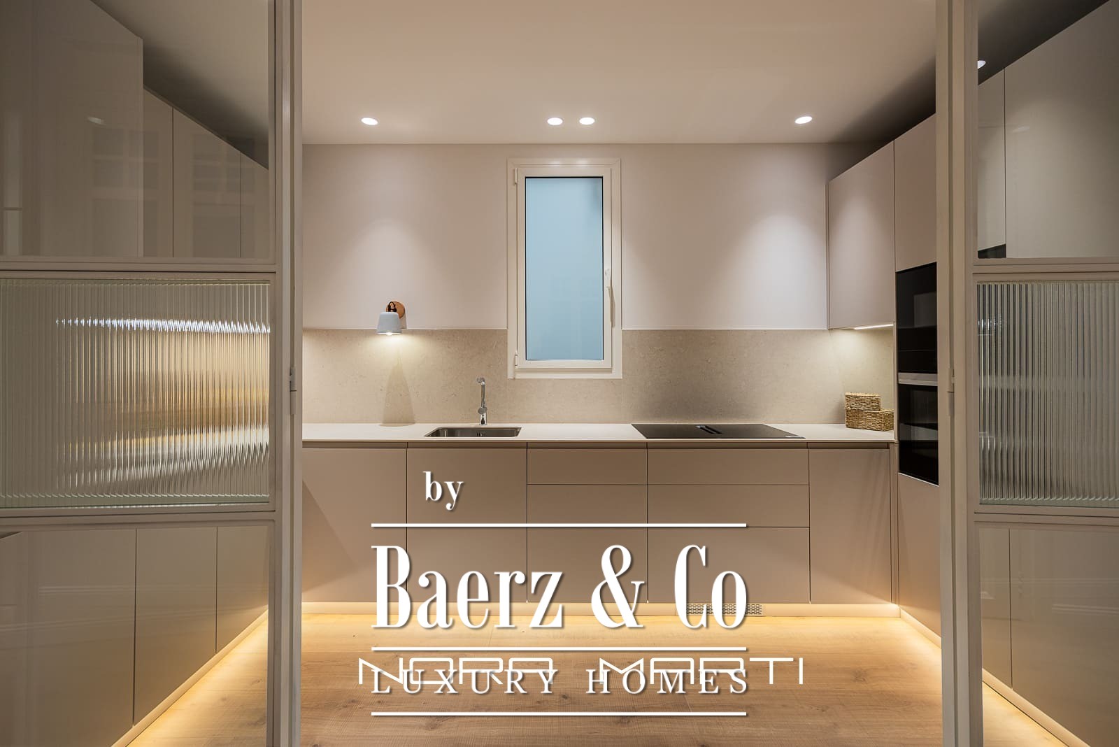The spacious and bright apartment features a large living-dining room with access to a balcony, a fully equipped open-plan kitchen with high-end appliances, and a separate, functional, and thoughtfully designed utility area. It has two double bedrooms, one with a dressing room, both with natural light and a welcoming atmosphere.