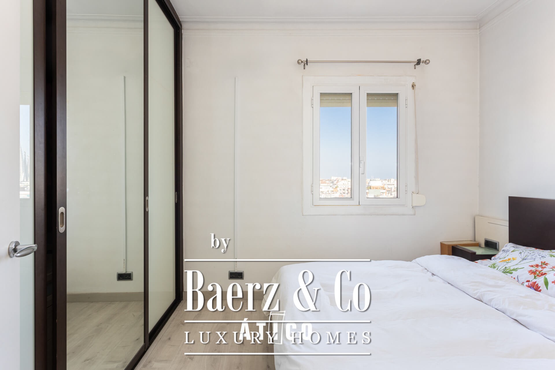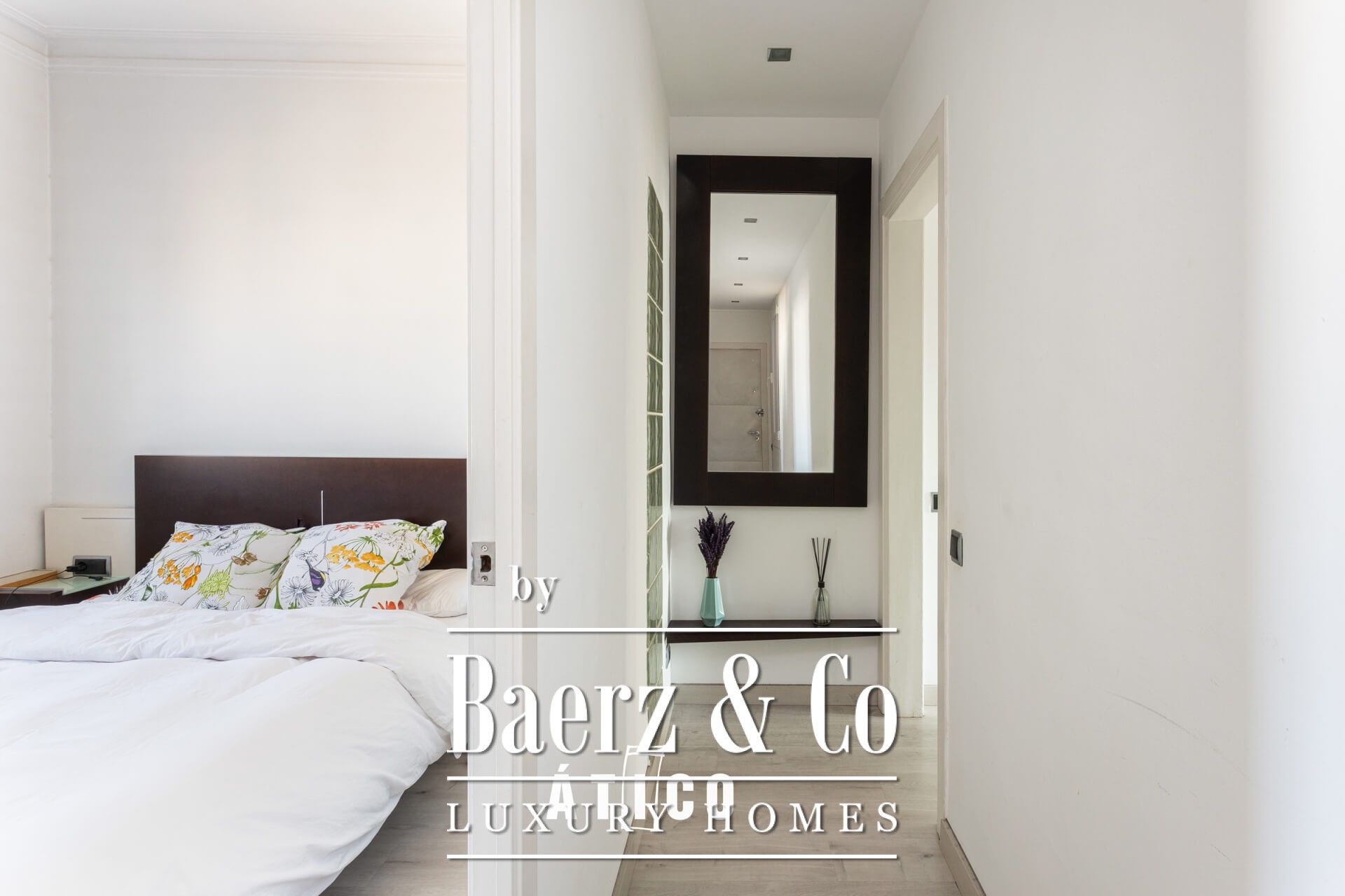 Penthouse apartment Barcelona presents an elevated urban sanctuary, set just moments from Passeig de Sant Joan in one of the city’s most sought-after addresses. This central 65 m² residence offers two bedrooms and a terrace of 10 m², allowing for a private vantage point over the city, including privileged views of Tibidabo, the sea, and the Sagrada Familia.