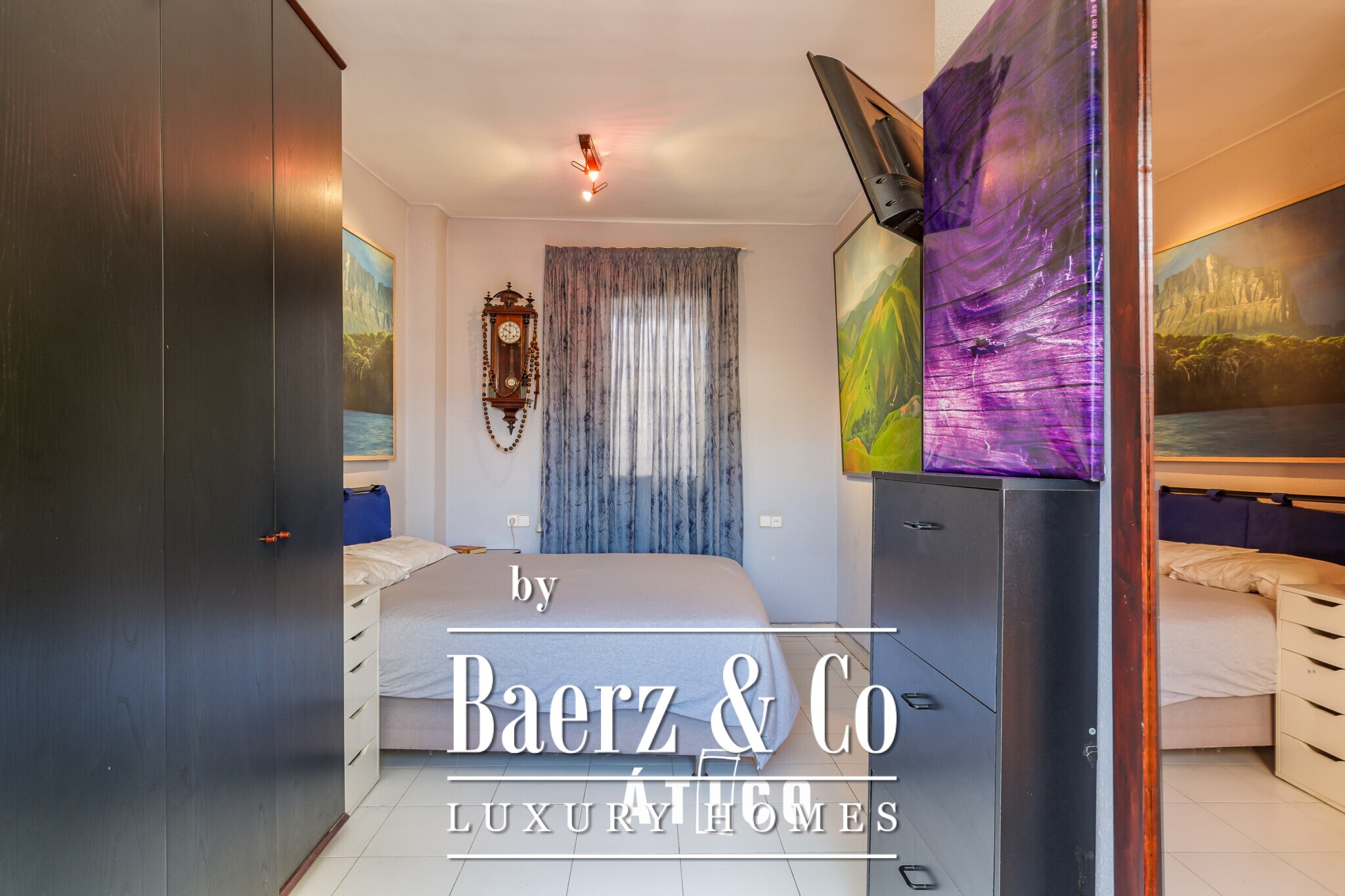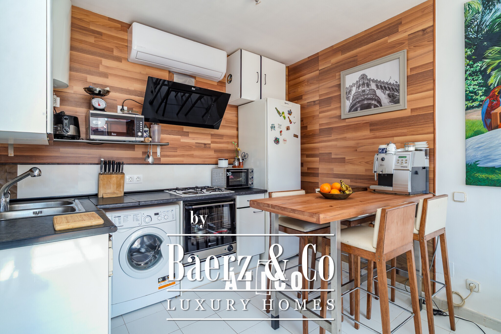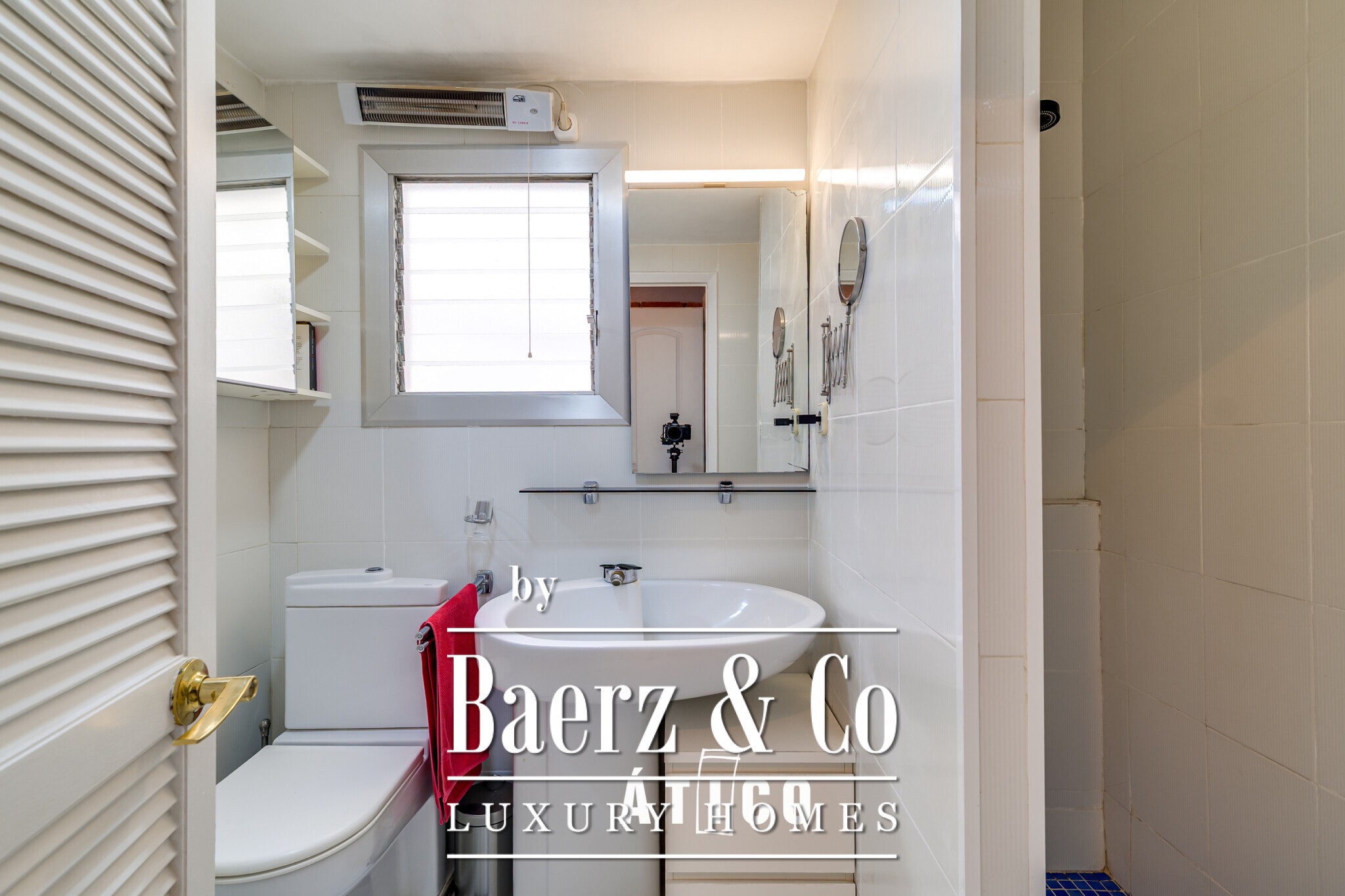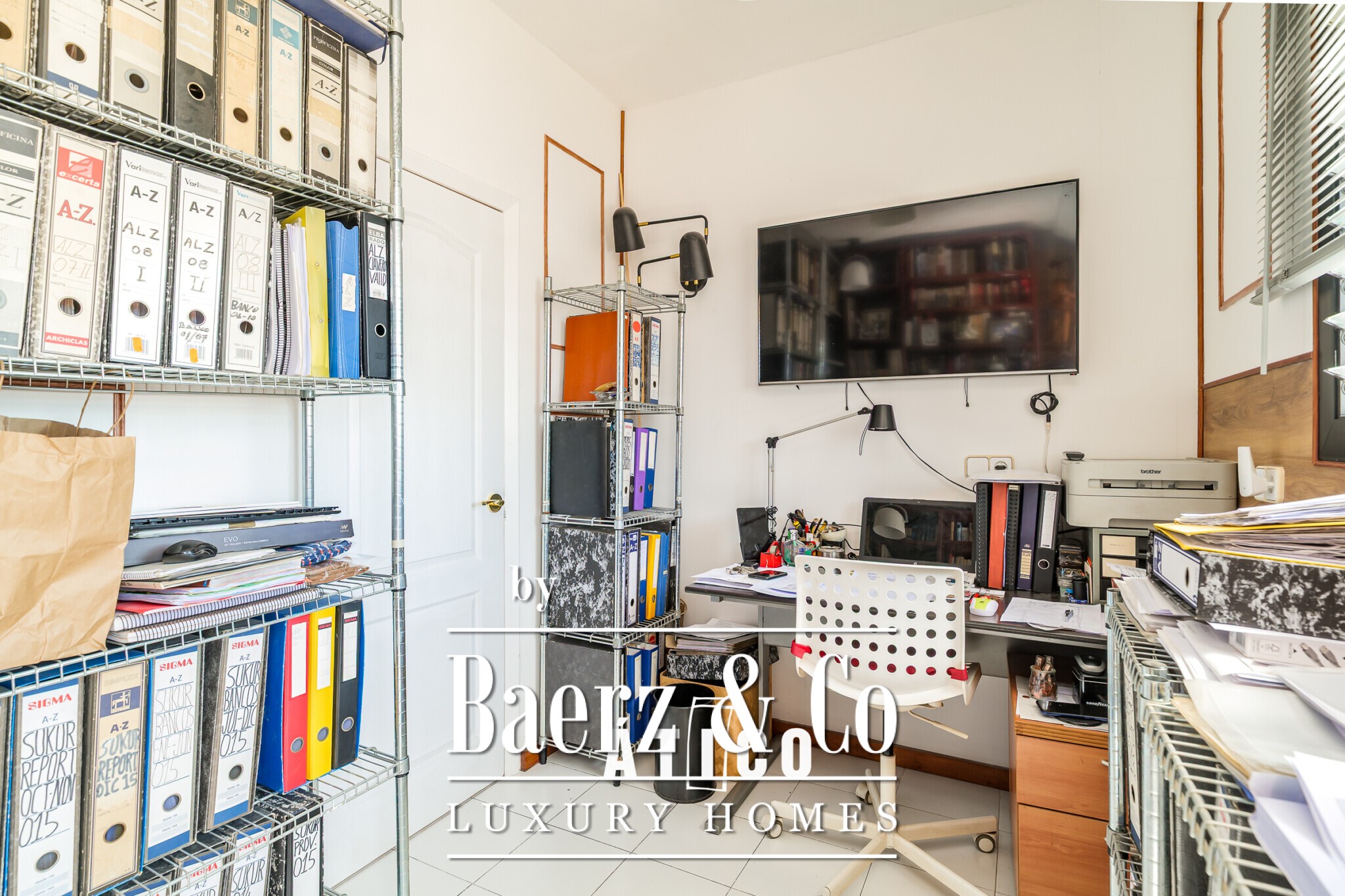 The penthouse’s layout is designed for daily comfort. The living area welcomes with an open-plan living room and integrated kitchen, bright and purposeful, leading directly to the terrace. A small study offers space for work or quiet contemplation, with the possibility of integration into the living space for greater openness.
