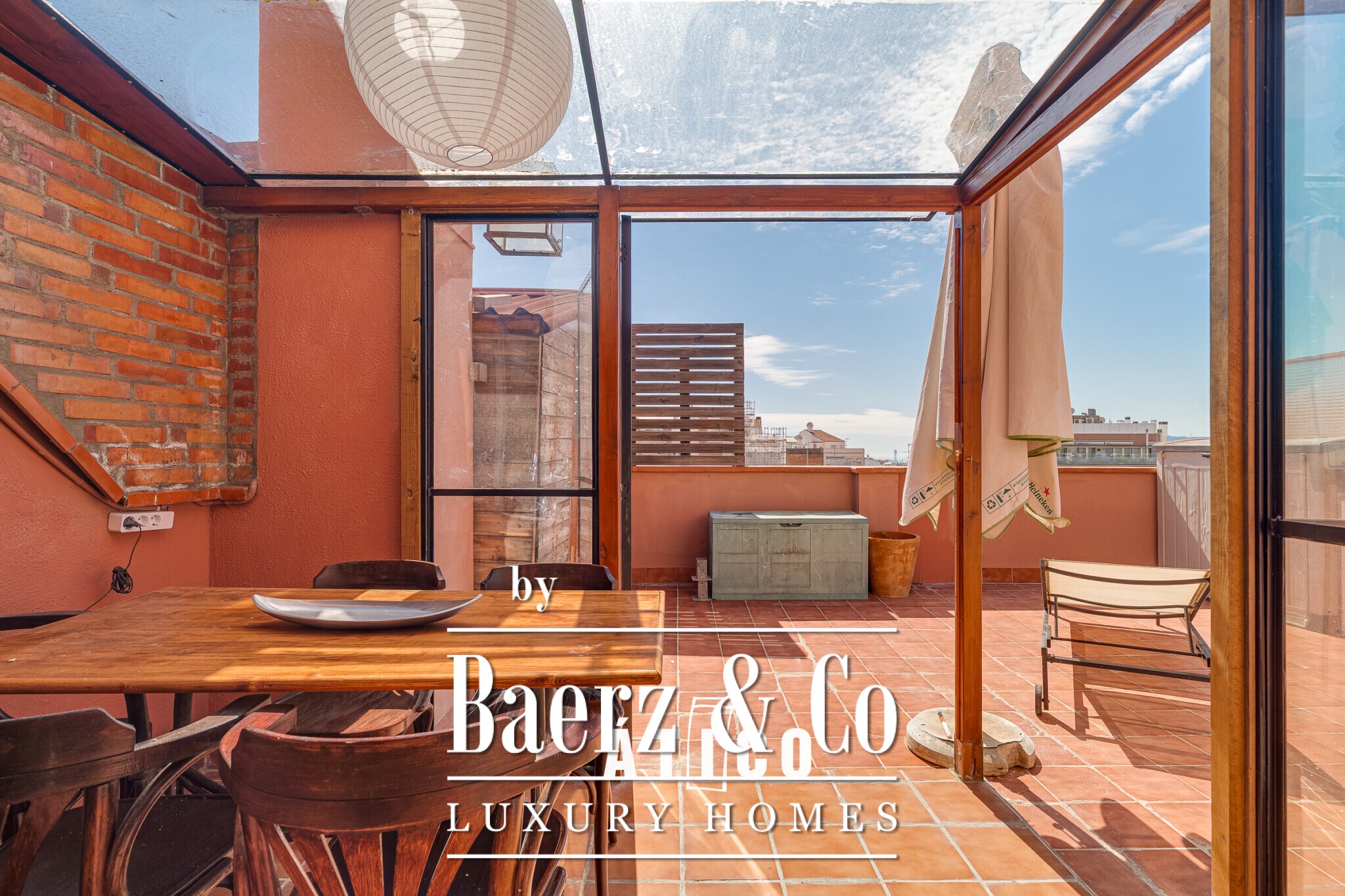 Positioned within the Gràcia neighborhood, the penthouse is surrounded by lively squares, local shops, and efficient transport links, offering an experience that blends authenticity and urban dynamism. Penthouse Barcelona Gràcia combines comfort, character, and exceptional outdoor living, resulting in a distinctive and valuable home in Barcelona.