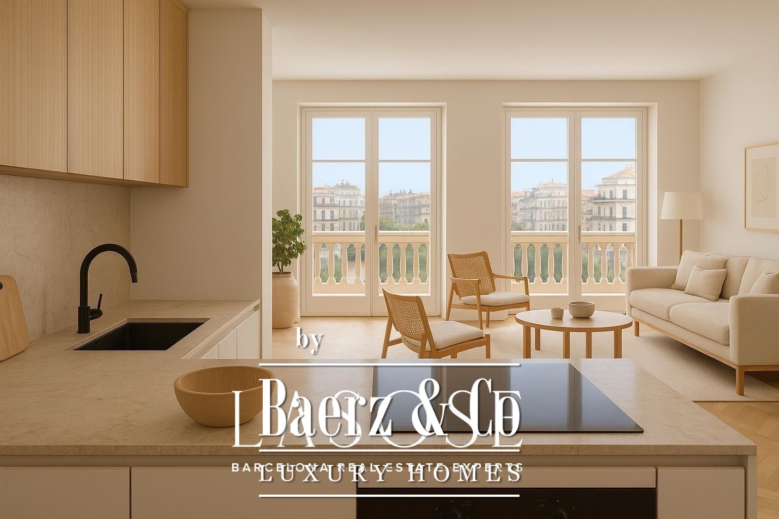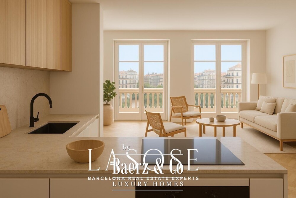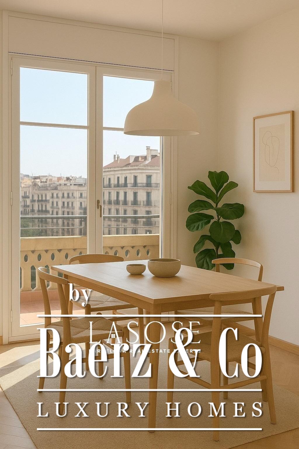 Penthouse Barcelona defines an elevated standard of design and urban lifestyle in the Eixample district. This fully renovated residence spans 98 m², offering a refined blend of spaciousness and abundant natural light throughout. The living and dining area flows seamlessly onto a generous terrace, creating a luminous environment equally suited for quiet relaxation or entertaining with city views.