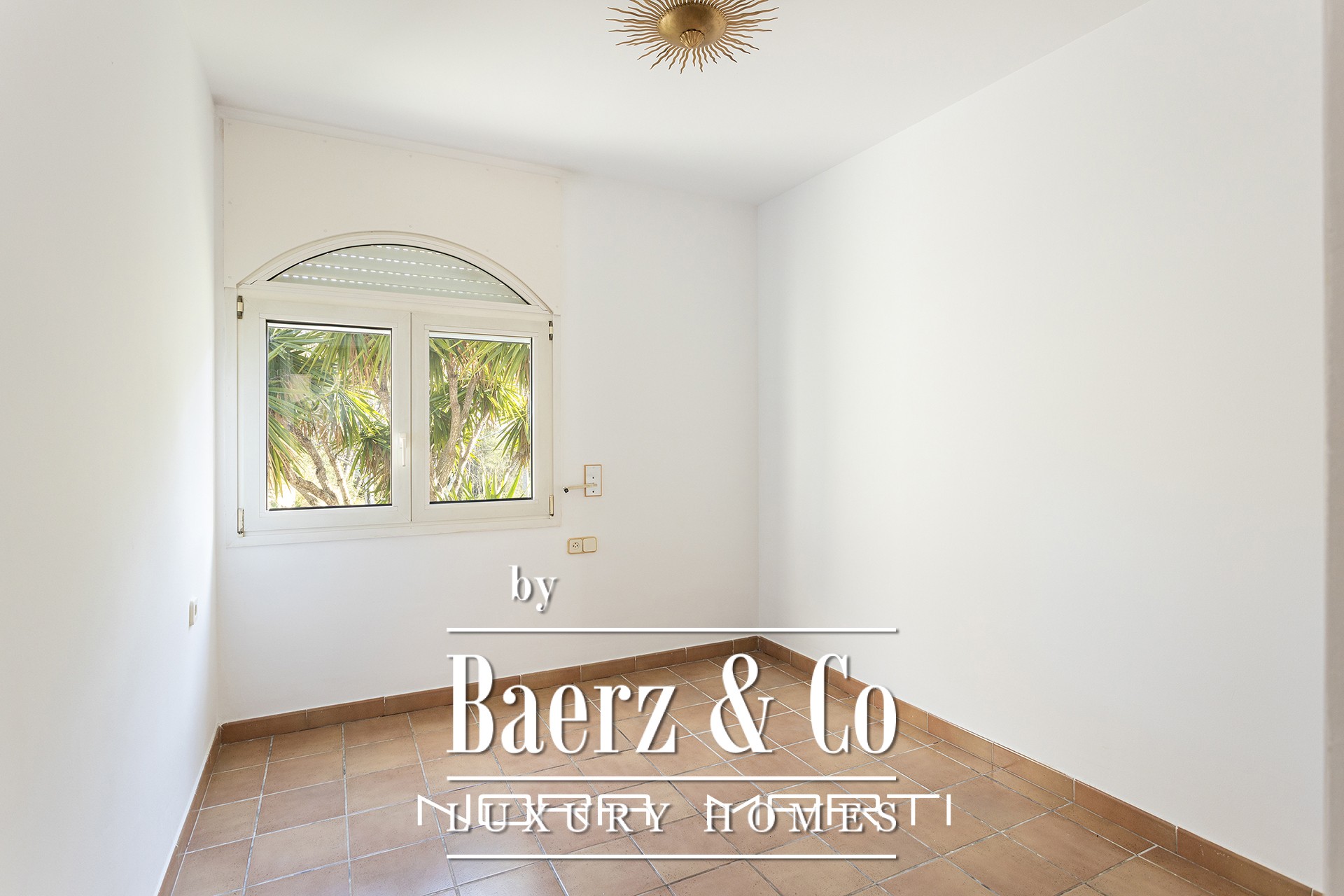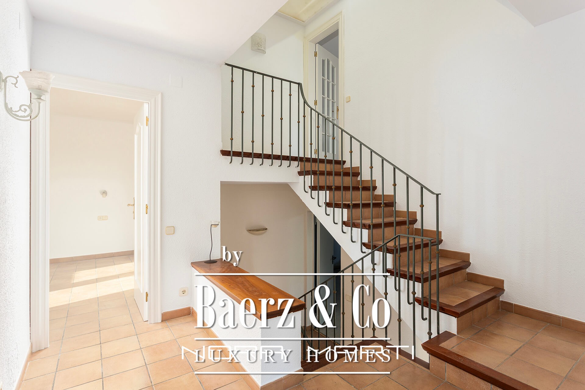 Family villa Bellaterra stands as an inviting retreat, offering 248 m² of living area within a private, tranquil setting. This house provides four bedrooms and three bathrooms, arranged across three levels, and is set on a generous plot of nearly 1,300 m². Light pours through ample windows, enhancing the airy atmosphere and ensuring a feeling of spaciousness throughout each room.