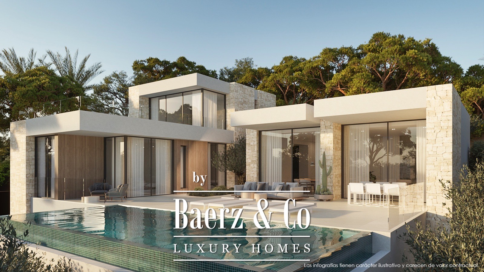bedrooms with en-suite bathrooms. - OUTDOOR SPACES: Once you step outside, the terrace and pool invite relaxation and recreation in your own outdoor oasis. The outdoor spaces are designed to create a seamless integration between indoor and outdoor living, allowing you to dine, unwind, and enjoy the mild Spanish climate. - UPSTAIRS: On the upper floor, you will find the sublime master bedroom with an en-suite bathroom and access to a spacious outdoor terrace. This private oasis invites you to witness the enchanting sunrises and sunsets, a daily spectacle of nature's beauty from the comfort of your home. The property sits on a plot of 1,021 m² and has a built area of 351 m², comprising a total of 3 bedrooms with en-suite bathrooms and a guest toilet. This home is a serene oasis that combines modern architecture with the timeless charm of the Costa Blanca. It offers peace, luxury, and convenience, making it not just a house, but a home where every detail exudes quality and refinement. Please feel free to contact us for more information. We are happy to assist you further.