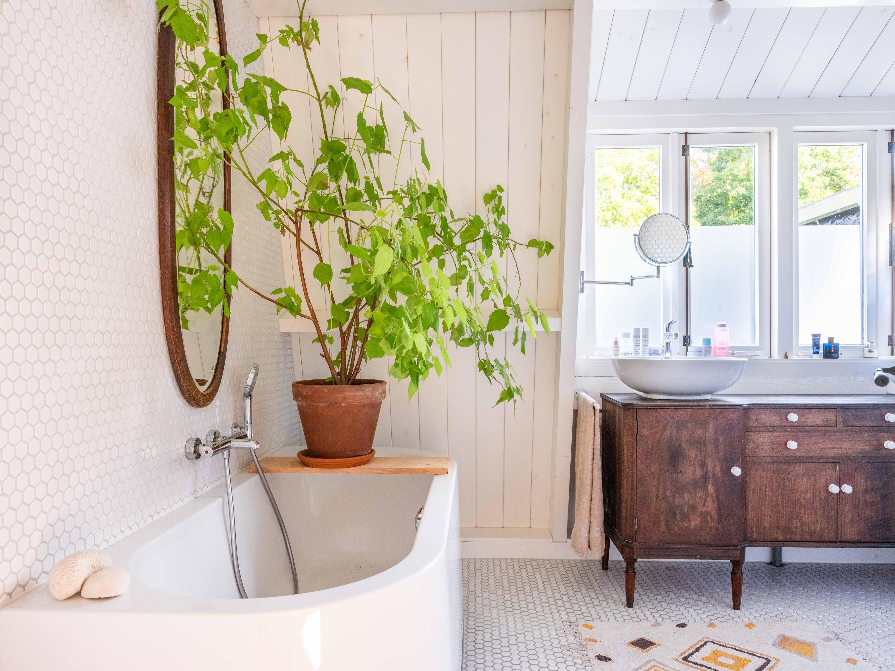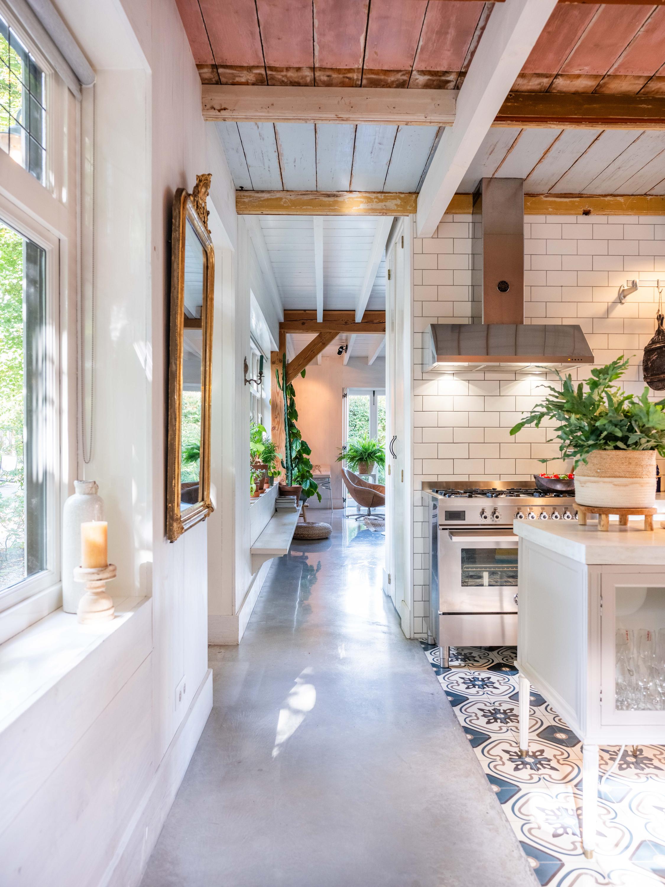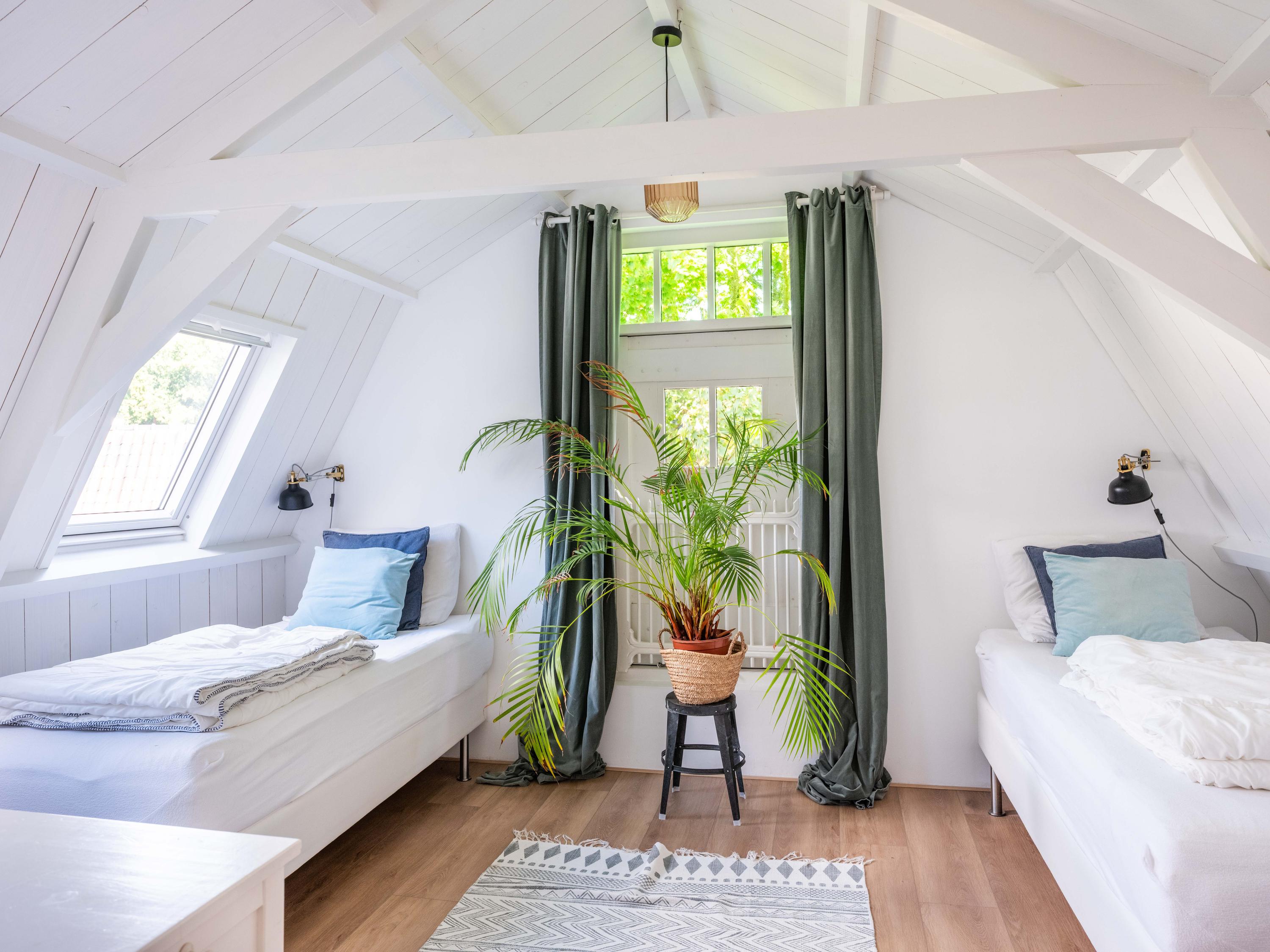 On the other side of the house, you will find the former atelier, now used as a guesthouse with a kitchenette and sleeping area. The roof has been insulated, and the upper floor is beautifully light and spacious.