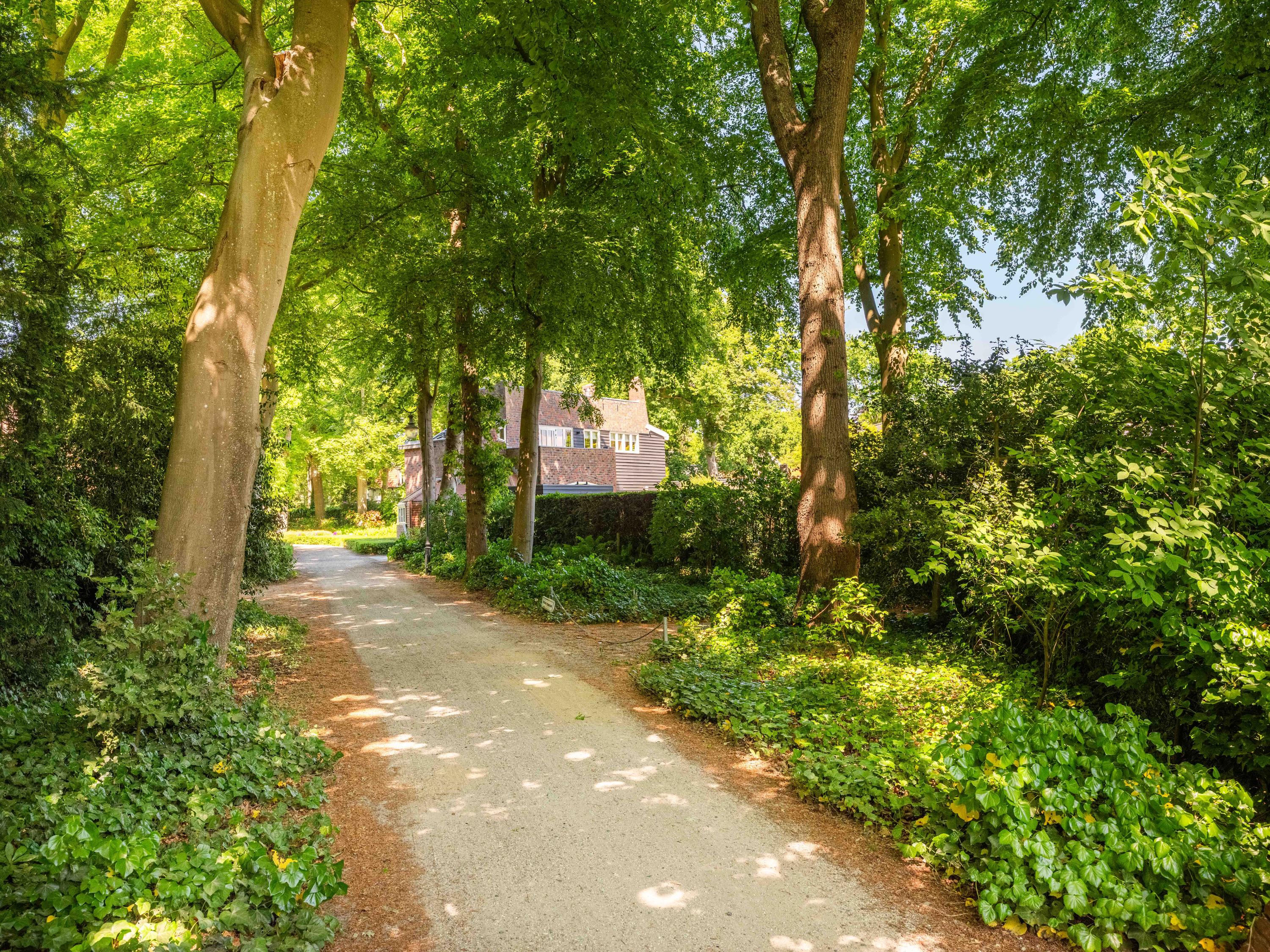The 2,720 m² plot is enveloped in flowering borders and monumental trees, with a detached garden cottage and entrance house—reminiscent of a moored sloop—both restored in period style. This villa for sale in Bergen invites a life of quiet dignity, architectural provenance, and seclusion, in harmony with the heritage of Park Meerwijk.