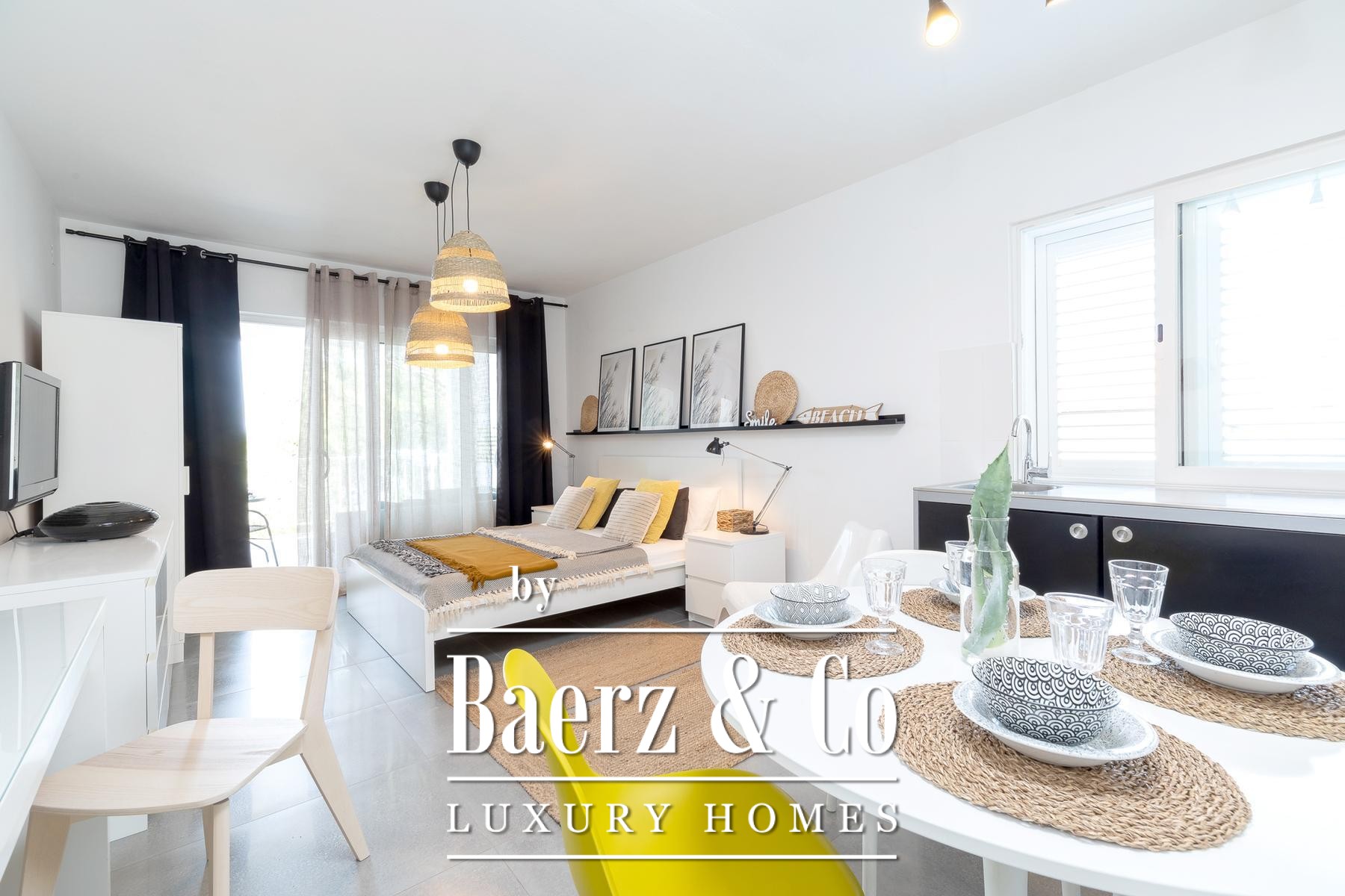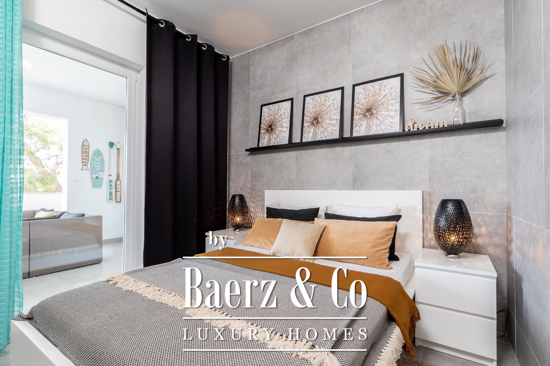 room with a kitchen, dining room, living room and bathroom. The apartment has panoramic sliding doors leading to a terrace with a sea view. This apartment is connected to the lower floor by an internal staircase that has a door so that the lock can be isolated. The second apartment is a studio apartment that has a kitchen connected to the living room and a bathroom. It also has panoramic sliding doors leading to a loggia with a panoramic sea view.Around the villa there is a landscaped yard and gardens and parking for several cars, and in the basement there is an additional storage room in front of which there is a landscaped terrace.The sea, where there is a natural pebble beach on the rocky coast, can be reached by a landscaped path and the entire area around the house is in the natural shade of pine trees.The villa is fully furnished, has a carefully designed interior dominated by light colors and turquoise tones, terraces with a fantastic view that also provide privacy, the beach is just a few steps away and much more that makes this property an unusual opportunity on the island of Korčula.We remain at your disposal for any additional information.