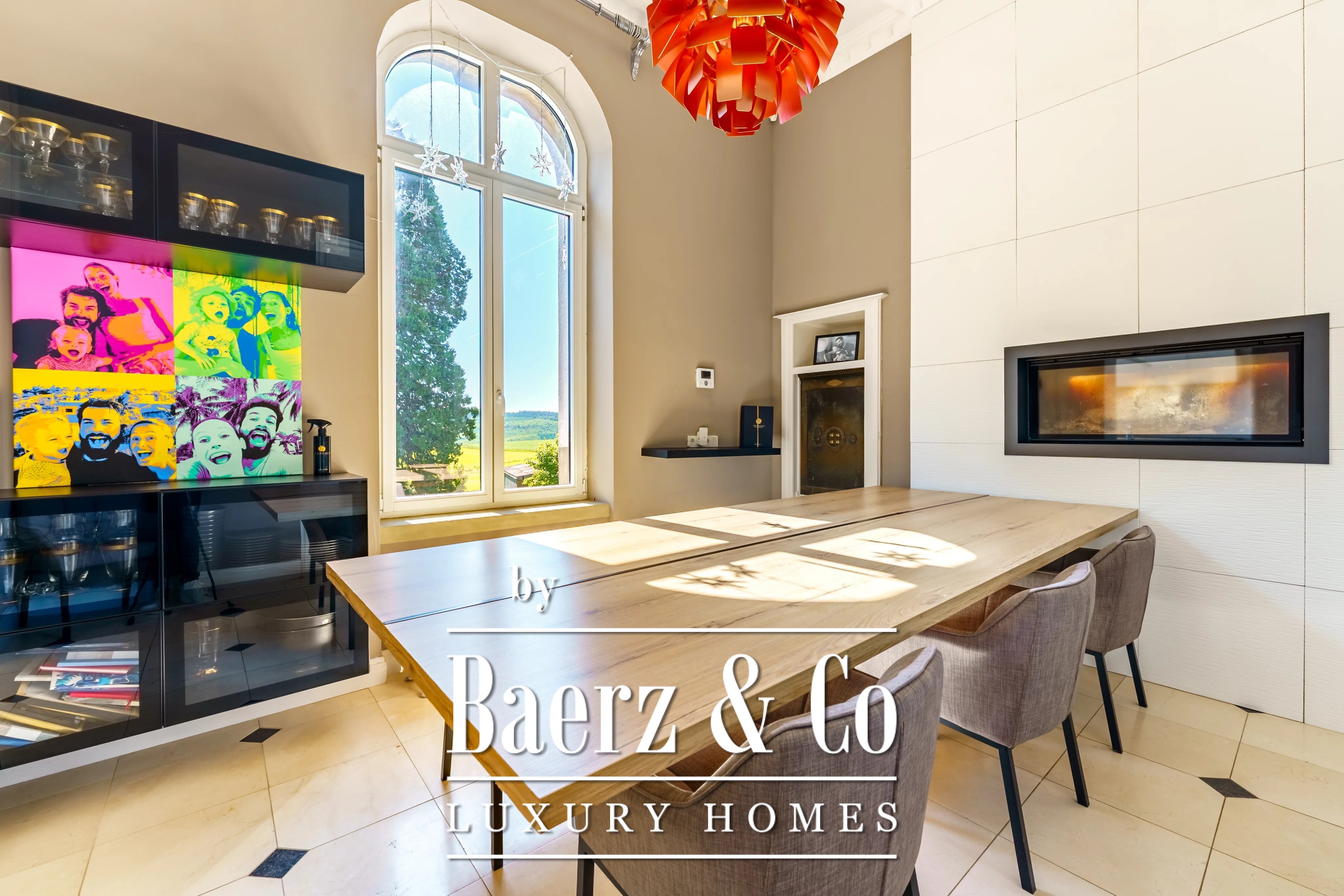 The basement delivers utility and repose, housing a laundry room, workshop, wine cellar, a single-car garage, and dedicated wood storage. Technology integrates subtly: 150 solar panels generating 30 kW, an intelligent heating system remotely accessible, and a BRUNNER fireplace with stove provide both sustainability and comfort. Among its details, the manor house Boevange brings together double glazing, alarm and fire systems, a safe, and understated lighting. This is a property composed for those who value provenance and present-day peace in equal measure.