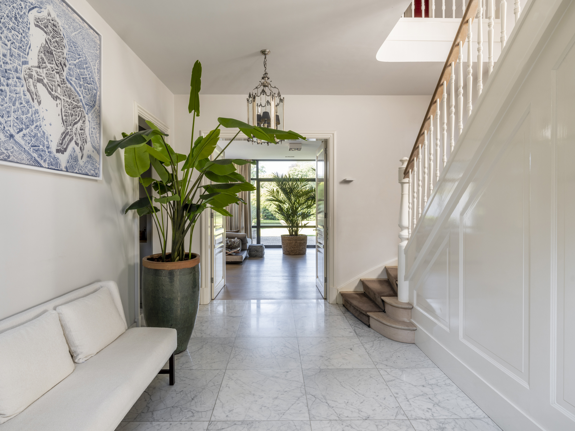 This unique villa offers the atmosphere and charm of a classical villa with the comfort and technology of today. The property includes 7 (bed)rooms, multiple work/TV rooms, and ample sanitary facilities and bathrooms. Additionally, the basement offers a large storage room, a playroom, a laundry room, and a gym.