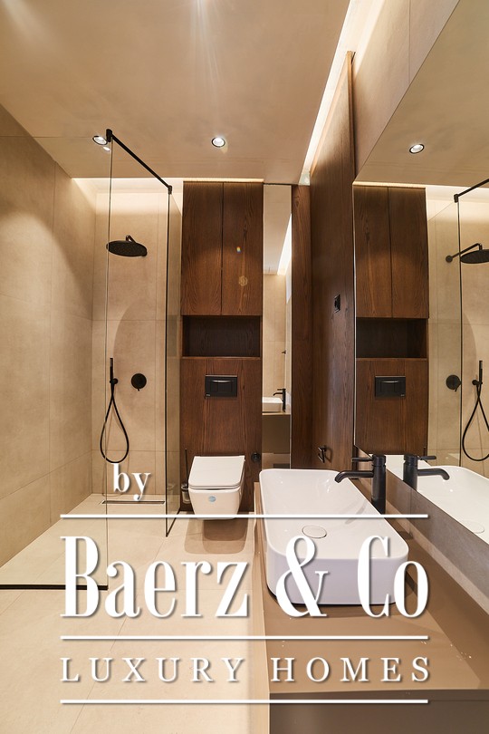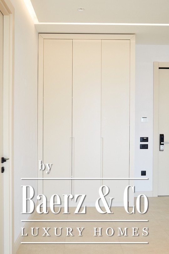 The building showcases ten floors, mountain and sea panoramas, and curated amenities including a wellness spa, swimming pool, fitness center, and 24/7 concierge service. There are two elevators for residents and a car elevator, ensuring comfort and discretion at every turn. The inclusion of a children's playground, sports facilities, and pet spaces adds quiet completeness to daily life. The apartment comes fully furnished except for the dining table and TV, reflecting an attention to high-quality finishes and materials.