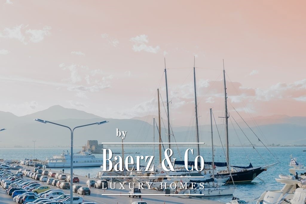 Apartment Nafplio Center presents a rare opportunity to own a 137 m² residence positioned just steps from Nafplio’s storied Old Town. This apartment stands in a league of its own, commanding direct and uninterrupted sea views over the harbor, luxury yachts, and the legendary Bourtzi Castle. From the first moment, the rhythm of harbor life and the endless blue horizon define both the interior and experience of this home.