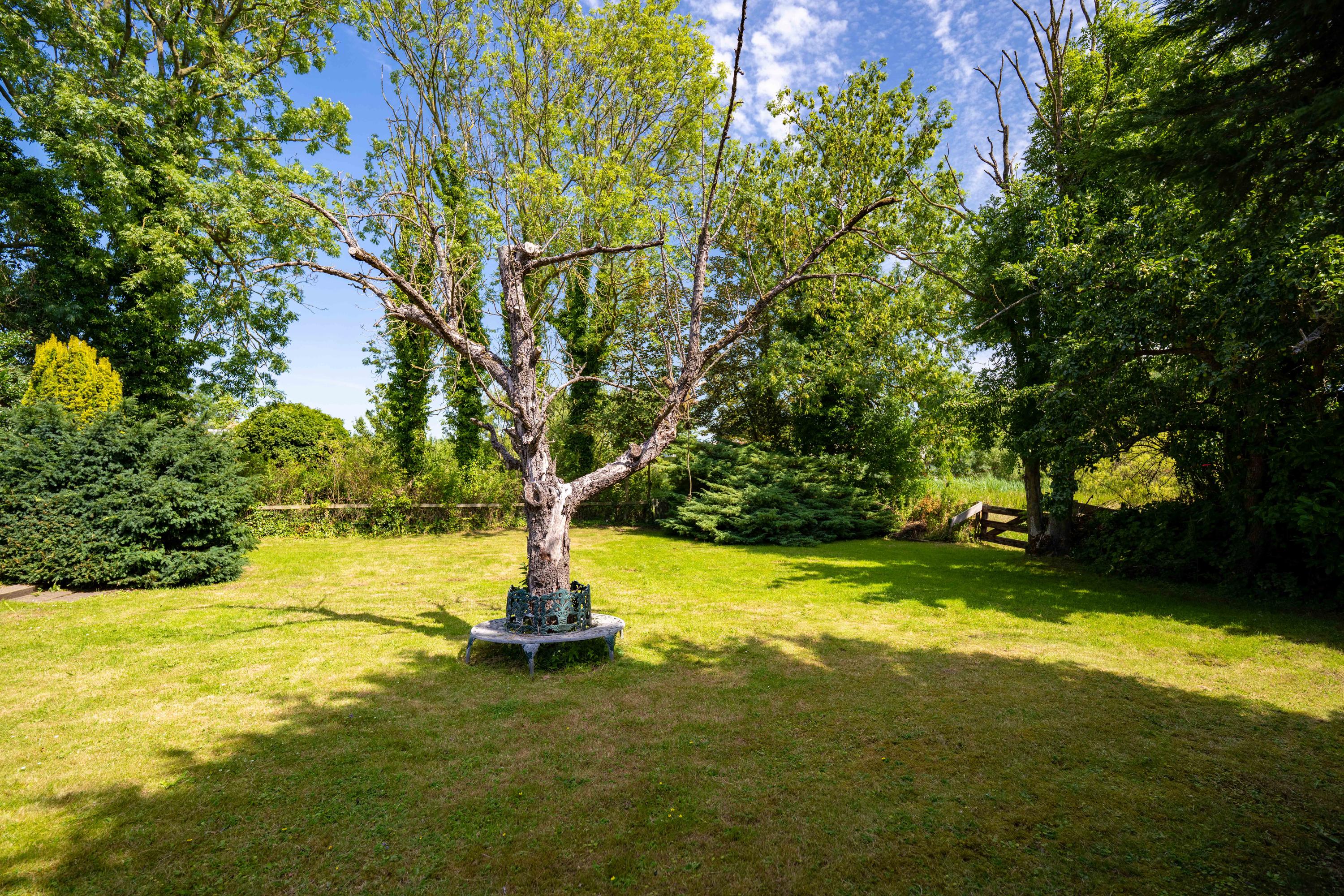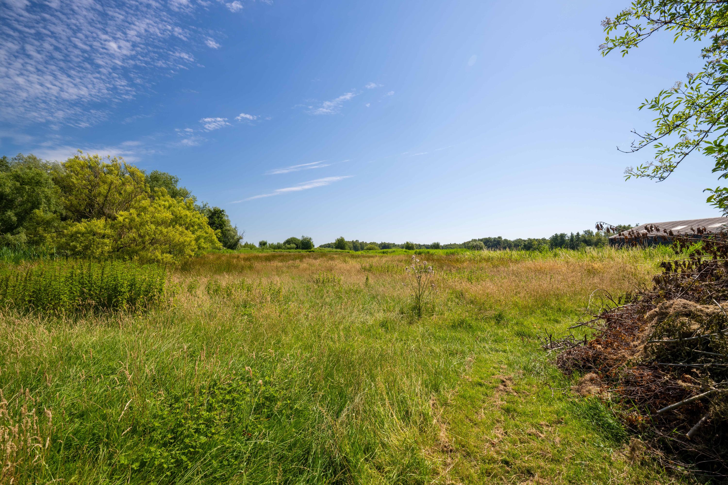 De kavel is echt goed ingedeeld. Een oude bomen opstand rondom het woonerf en en een open boerenweide aan de achterzijde. Sloten rondom, dus ideaal voor het houden van dieren op het erf, of wandelingen met je hond op je eigen terrein.