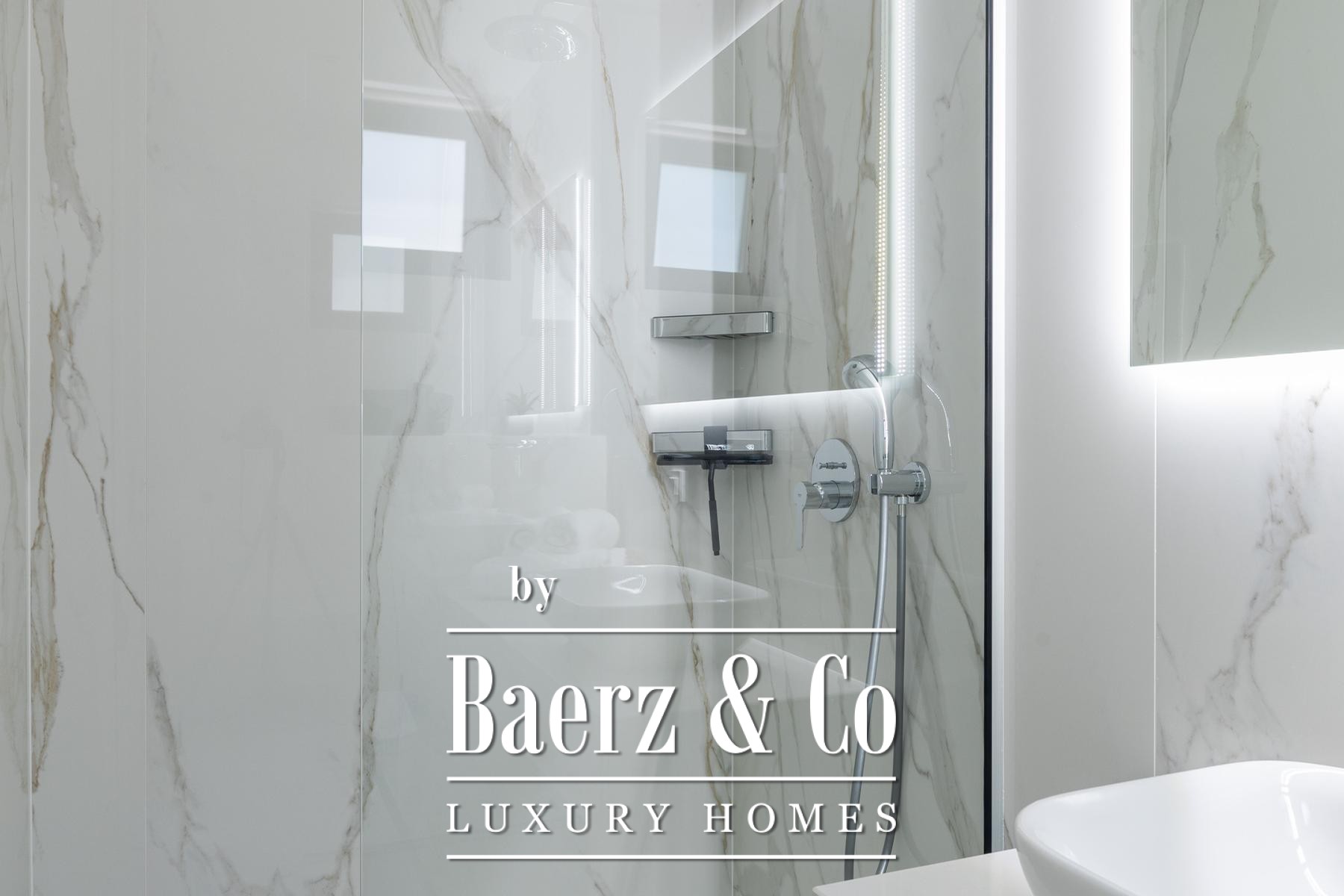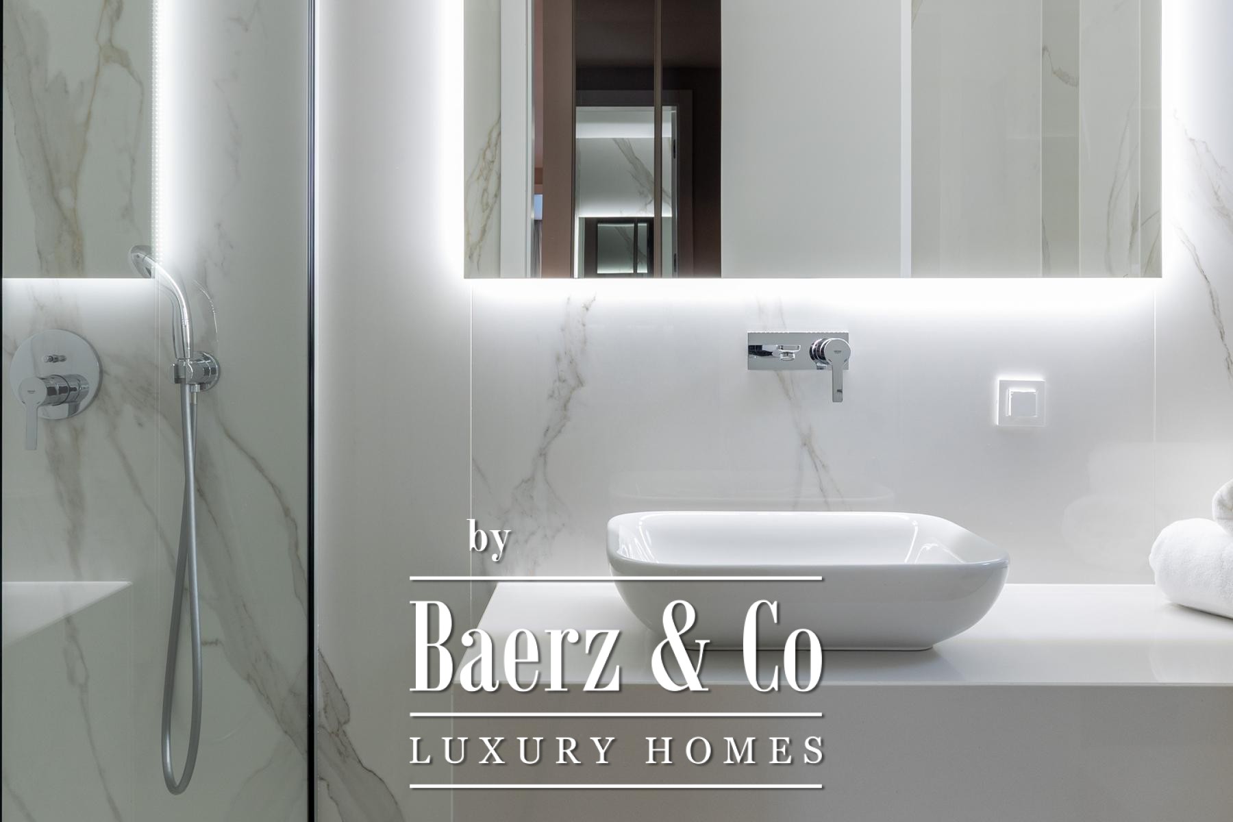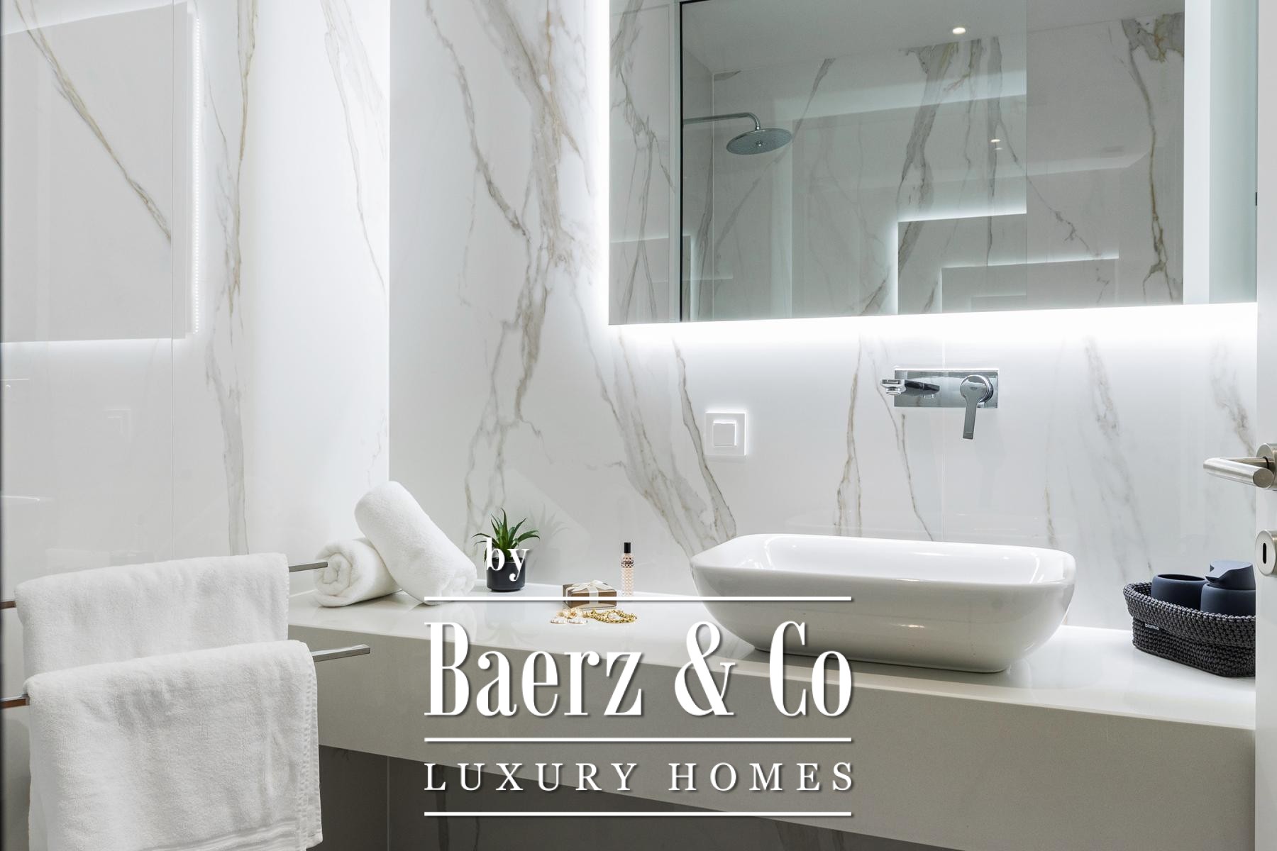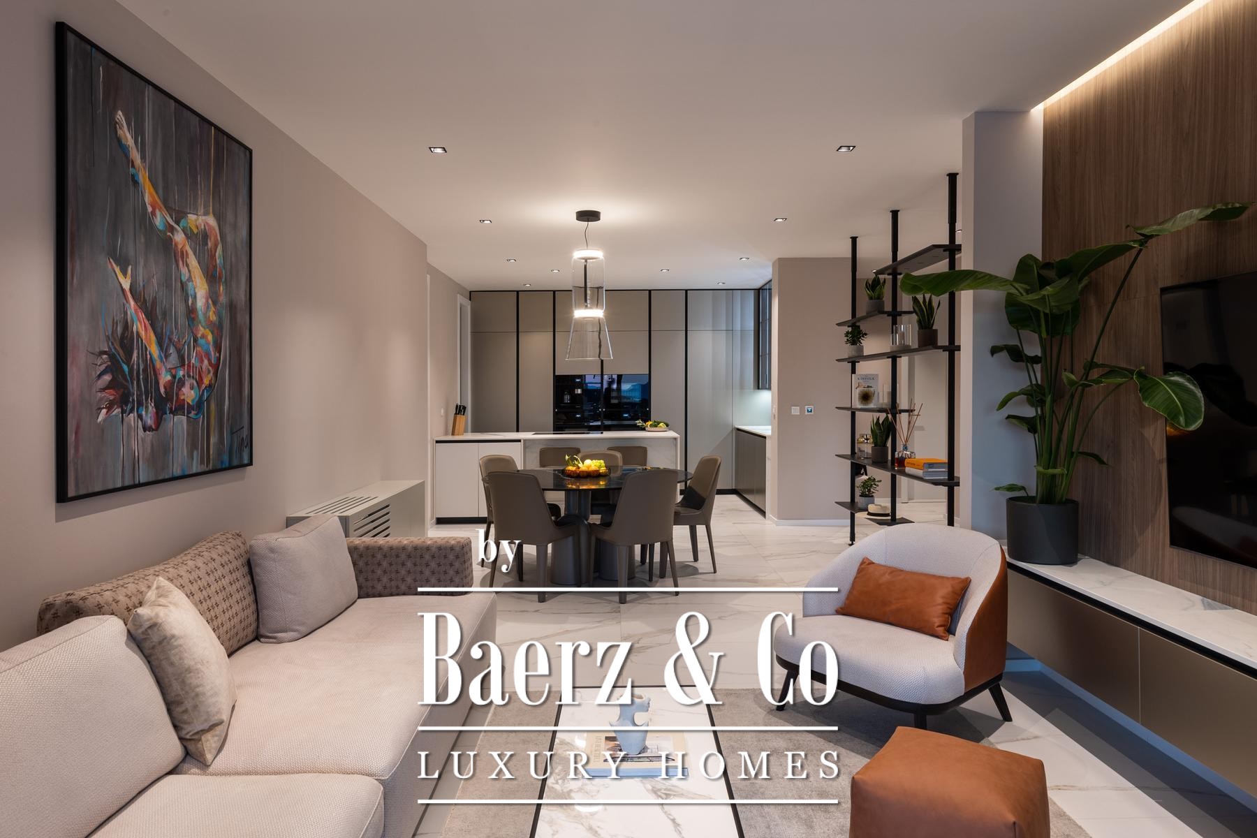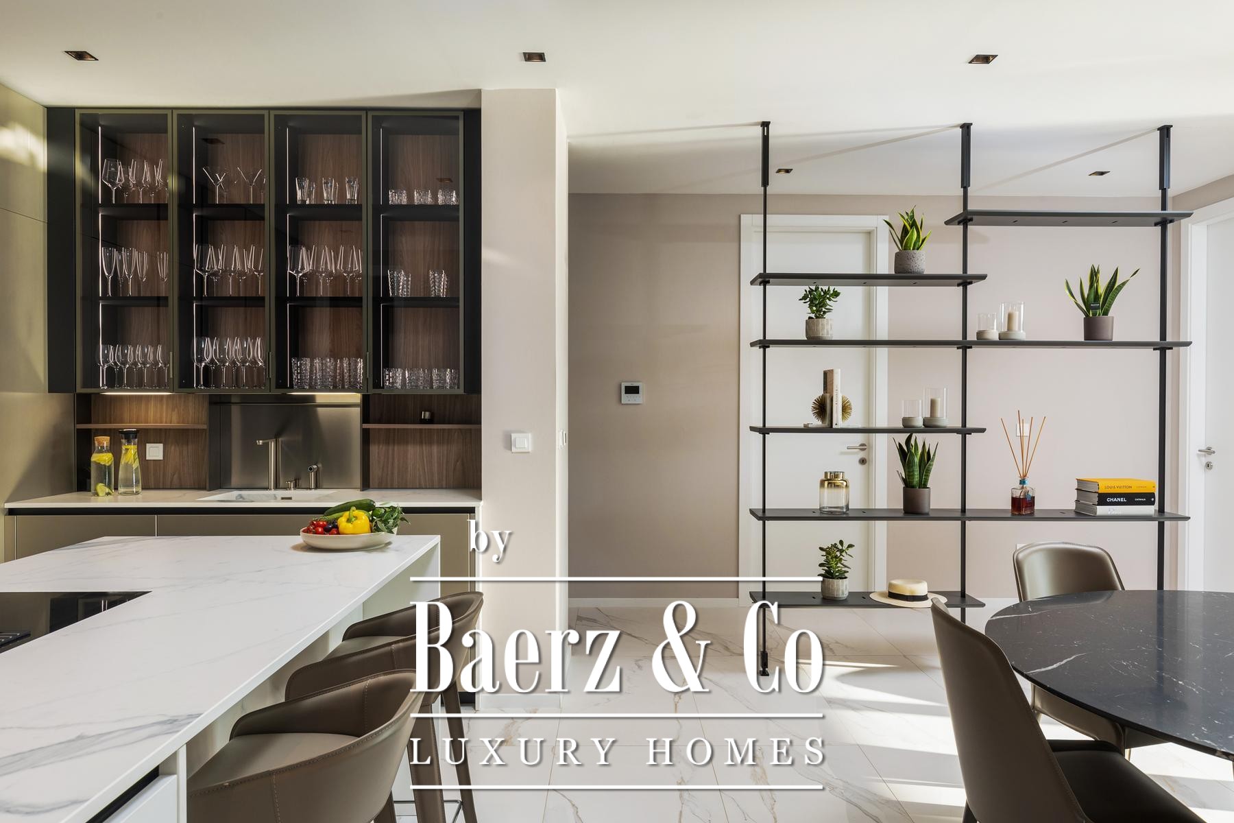 The apartment features three bedrooms and three bathrooms, each space crafted with a focus on light, flow, and comfort. A spacious open-concept living room, dining area, and kitchen create a luminous atmosphere accentuated by the south-west orientation, ensuring natural daylight throughout the day. Attention to detail is evident in the choice of high-quality materials, supporting both enduring elegance and energy efficiency.