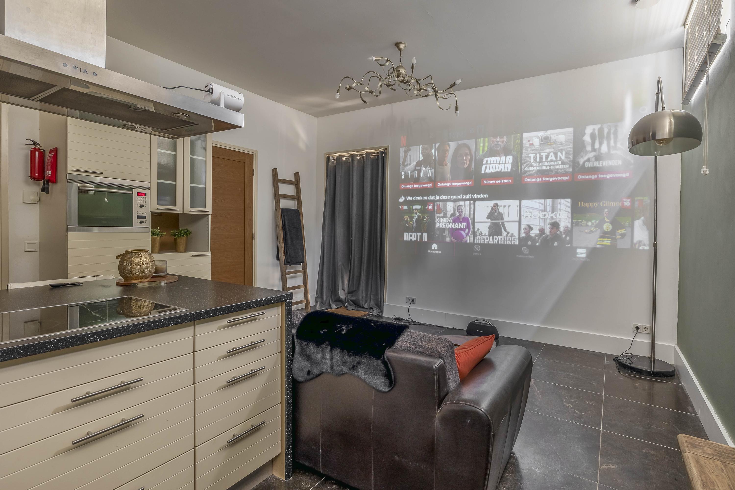 Through the spacious entrance with beautiful tiled floor, modern toilet and extensive meter cupboard, you enter the kitchen at the front of the house. This stylish and complete kitchen is the heart of the house and features a kitchen island, luxury appliances and plenty of workspace. Thanks to the raised floor level, you have a beautiful view of the street.