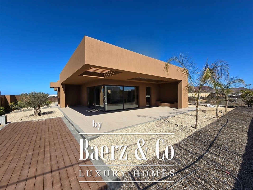 Villa Fuerteventura stands as a private enclave where luxury and tranquility blend with a sweeping natural landscape. This villa in Fuerteventura offers 260 m² of living space within a 1,054 m² plot, providing a sense of retreat and comfort. The interior welcomes you with a light filled living room, fostering relaxation at any hour. An elegant dining room sets the stage for convivial evenings, while the equipped kitchen with pantry invites culinary exploration.